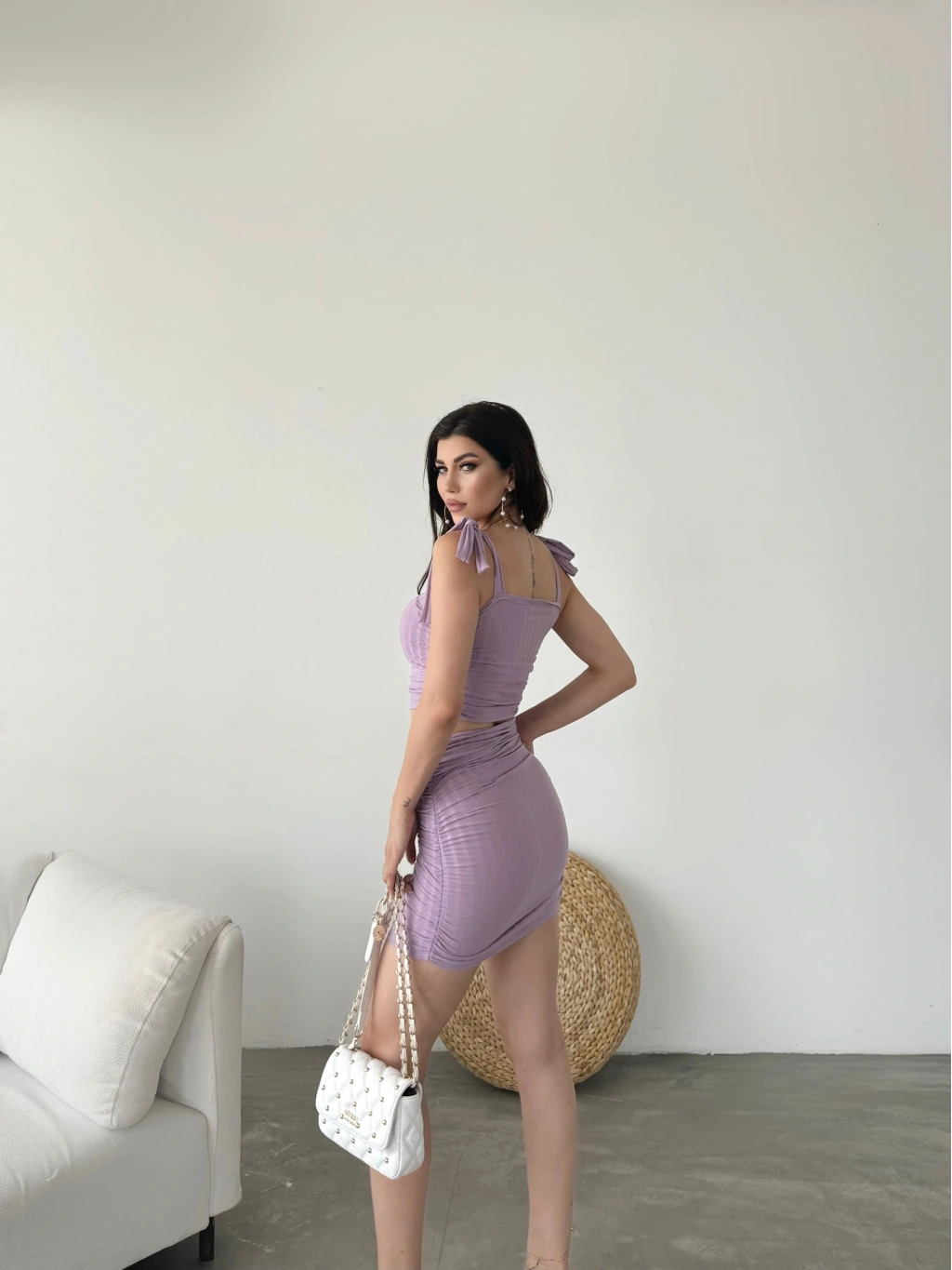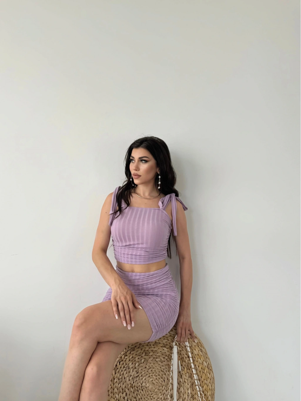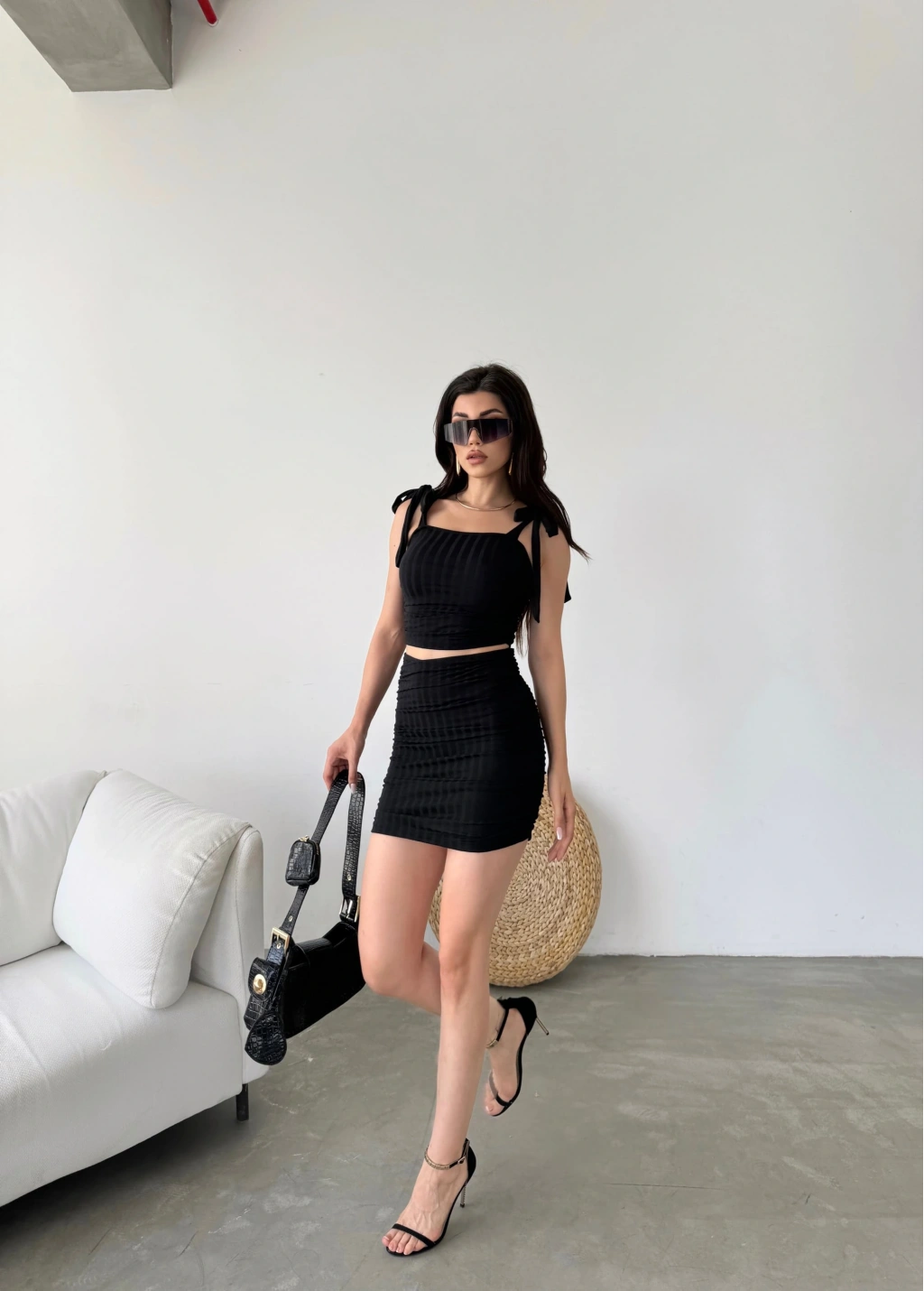 Ürün Adı :Bağcık Detaylı Crop Bluz Ve Etek İkili Takım