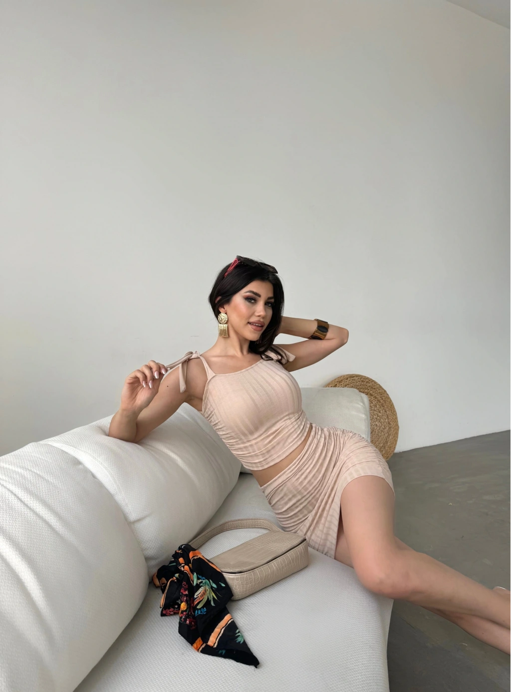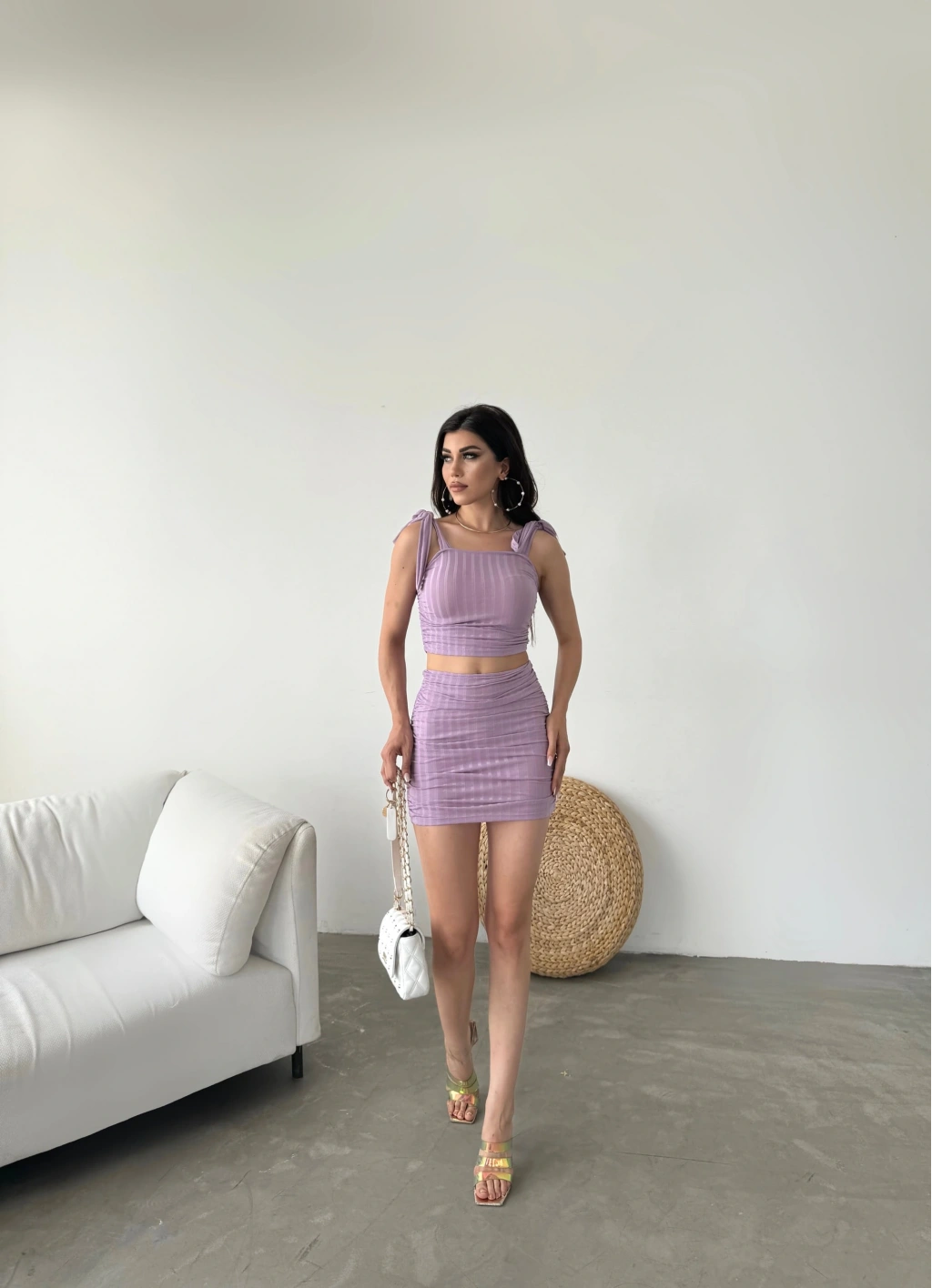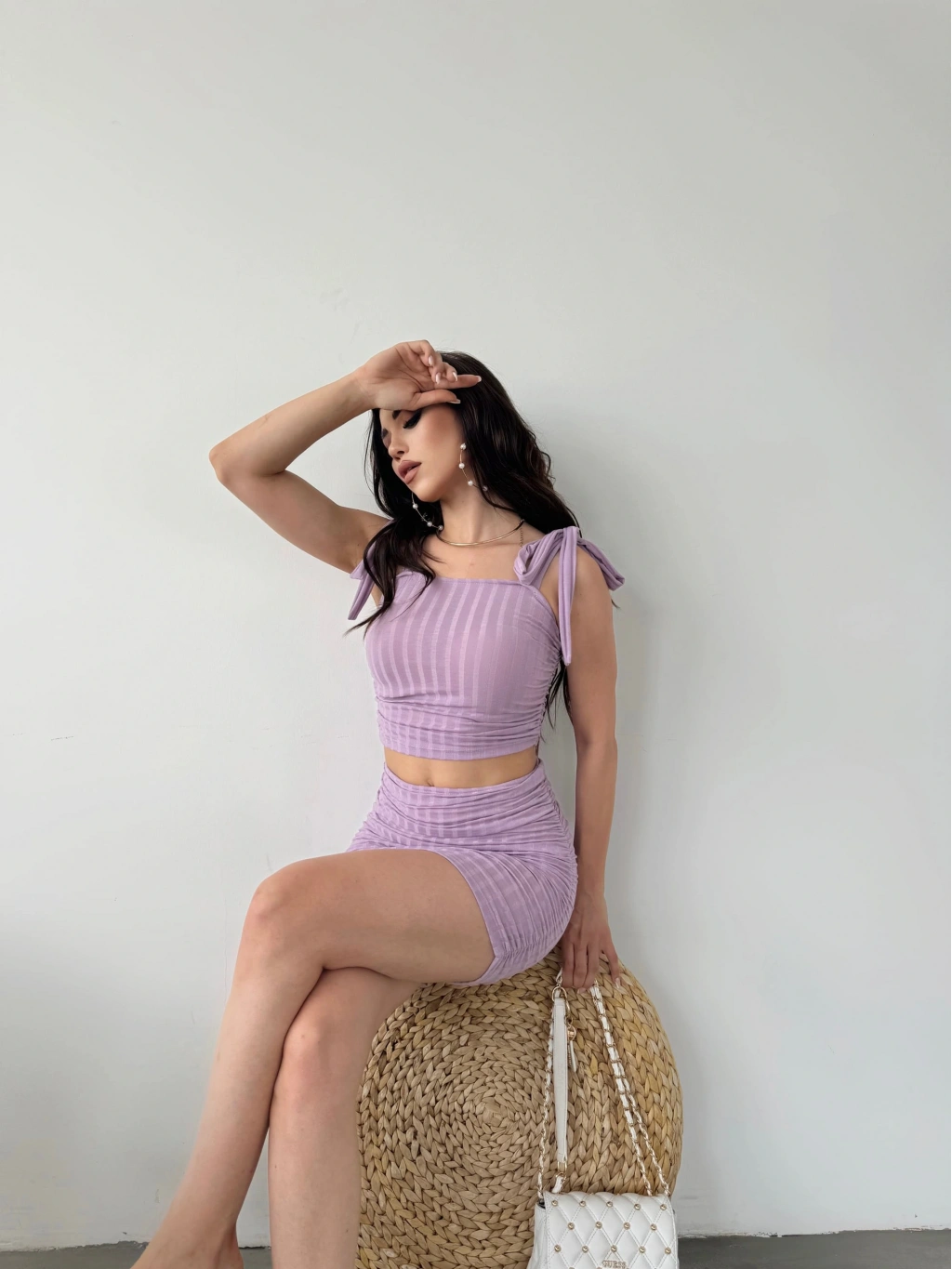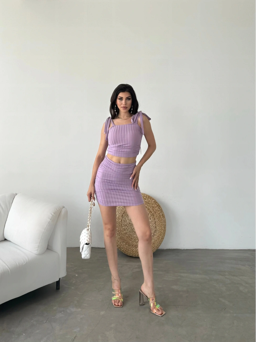 Ürün Adı :Bağcık Detaylı Crop Bluz Ve Etek İkili Takım