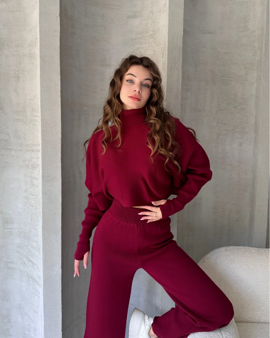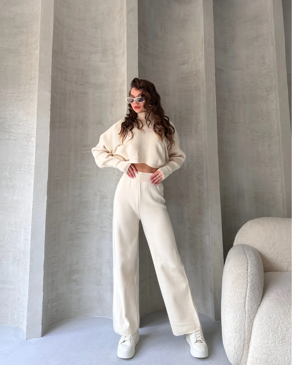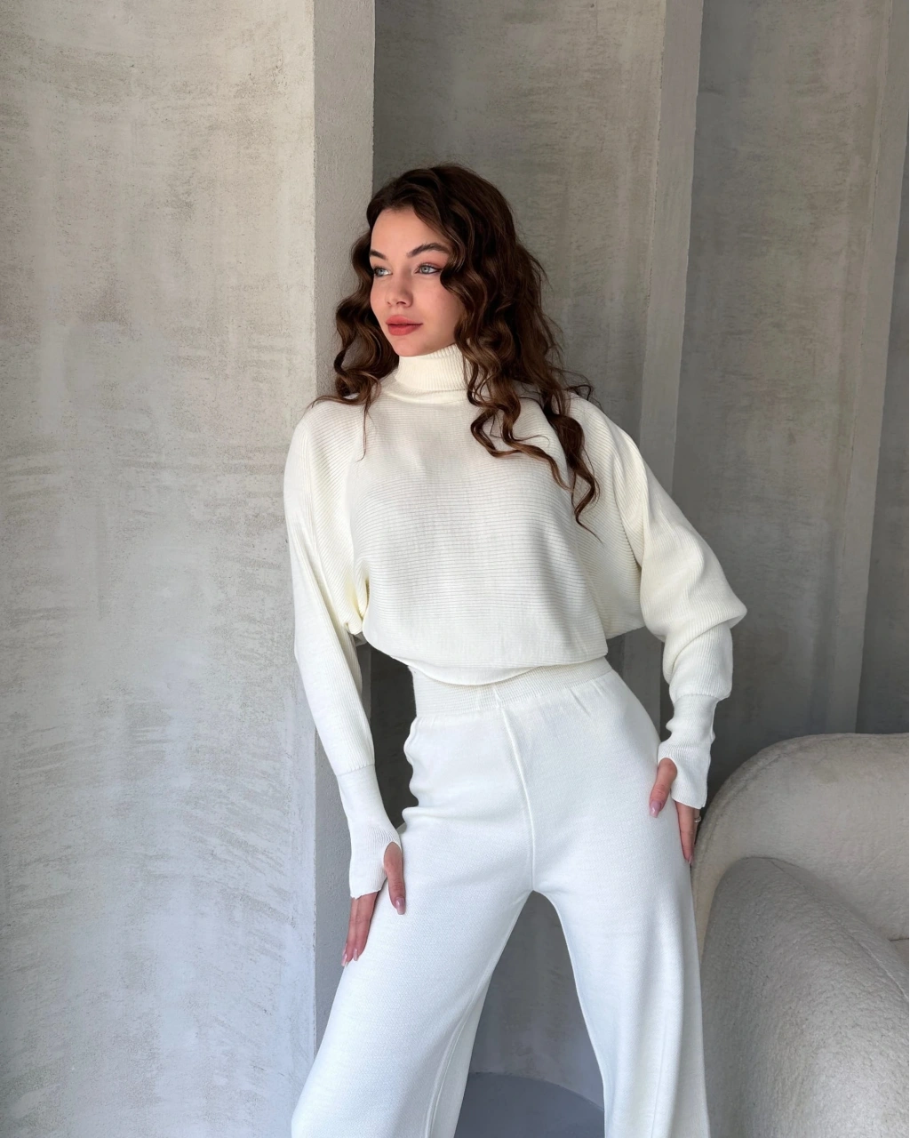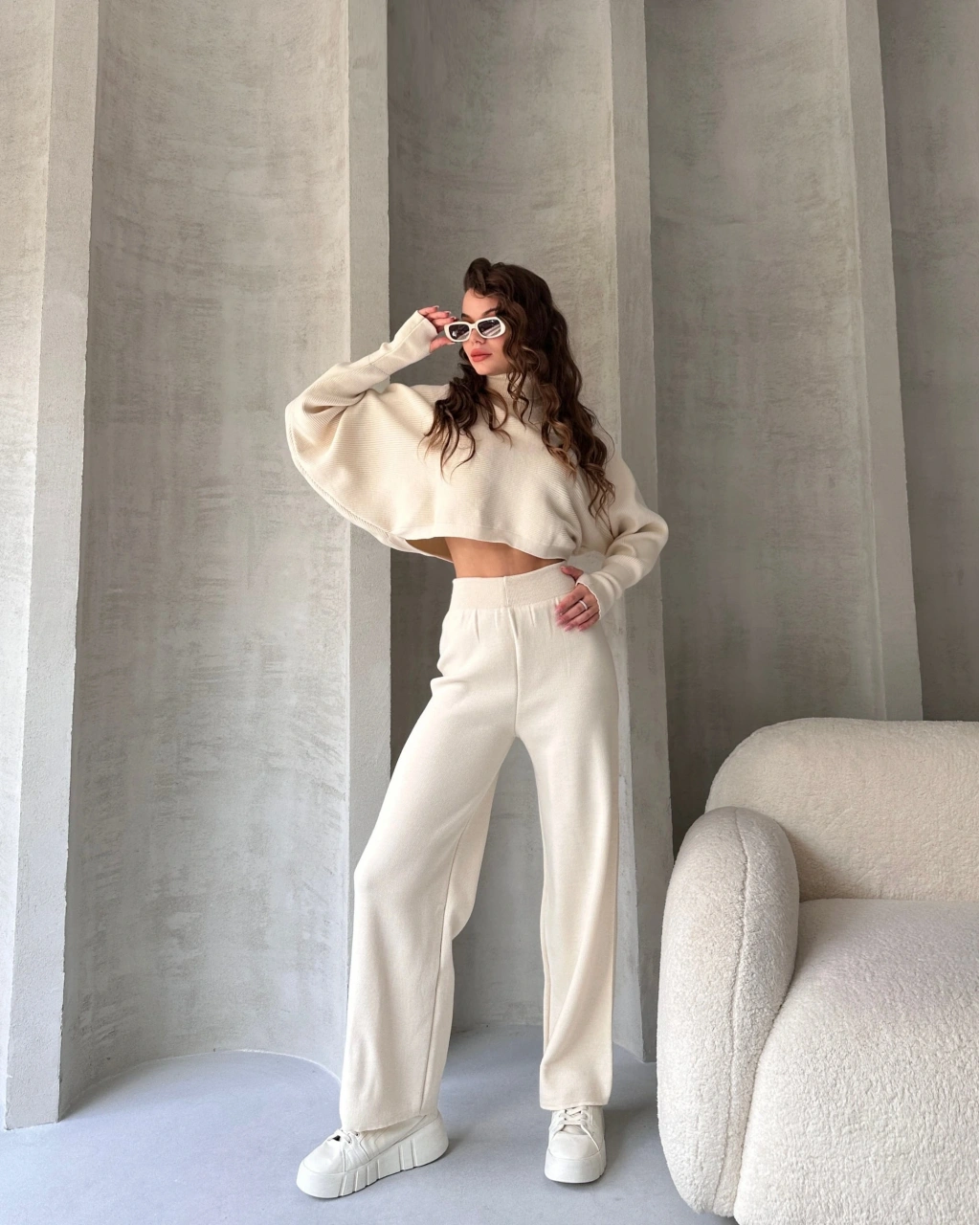Ürün Adı :Balıkçı Crop Kazak Ve Pantolon Triko Takım