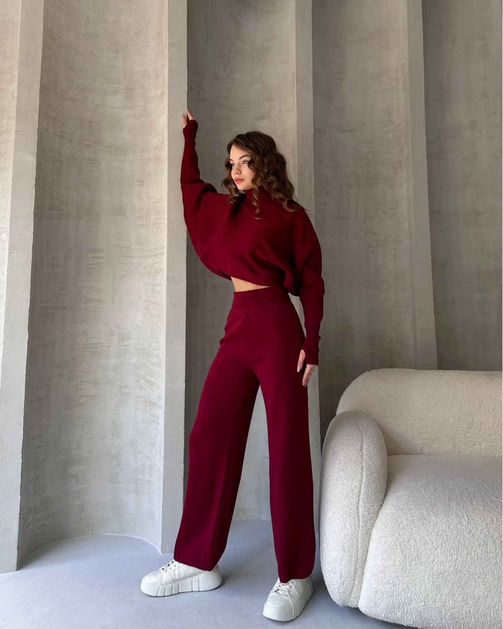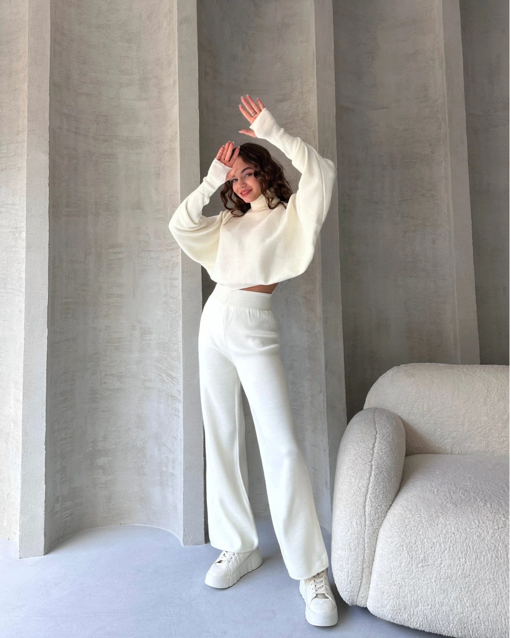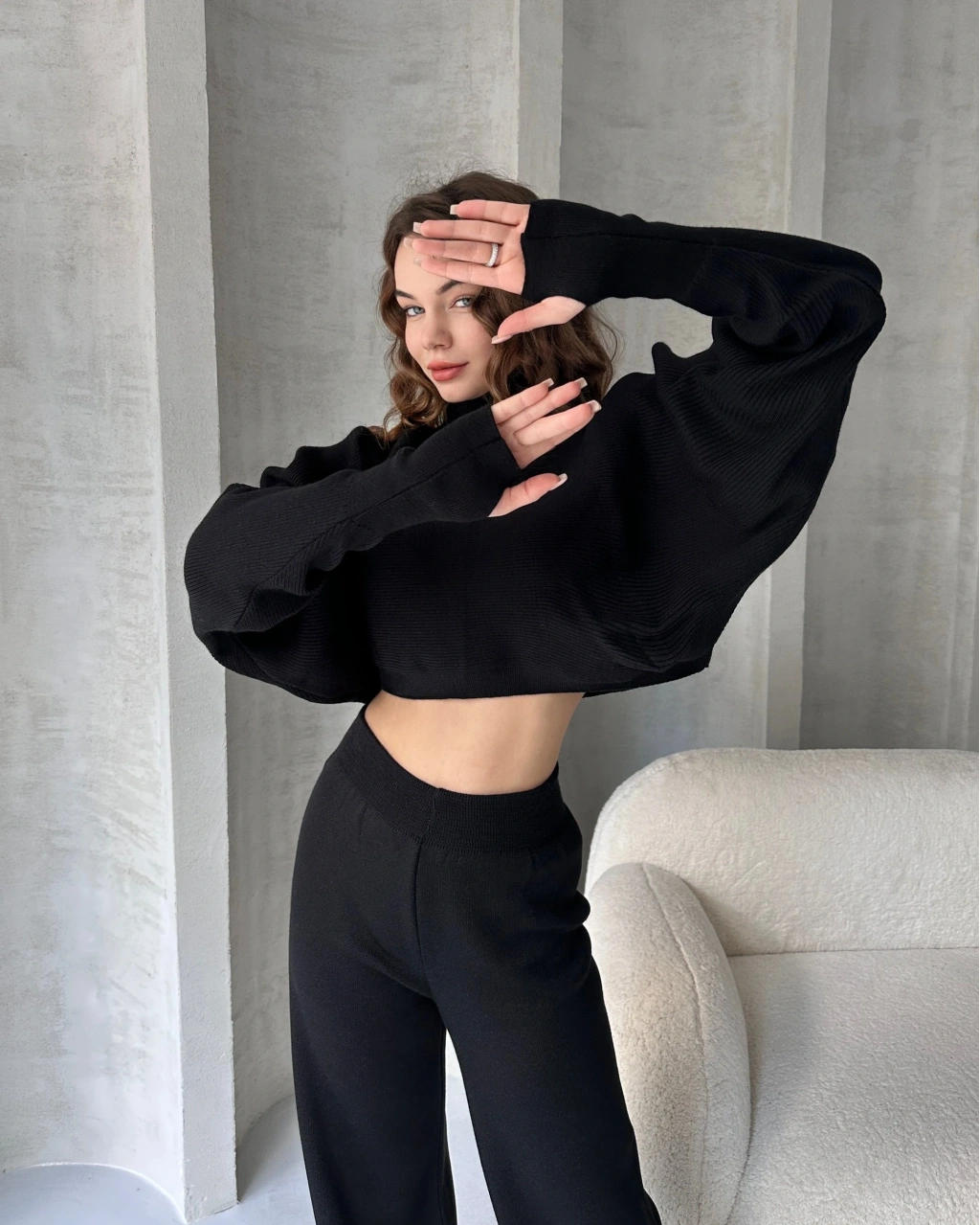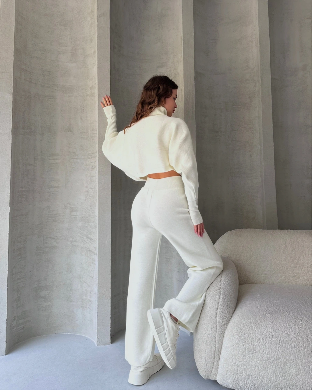Ürün Adı :Balıkçı Crop Kazak Ve Pantolon Triko Takım