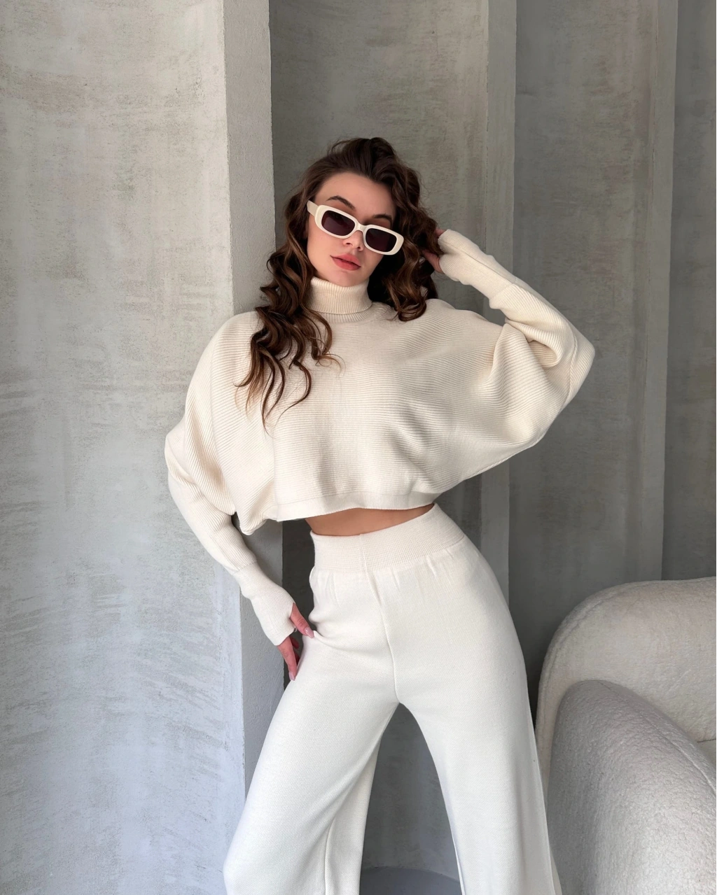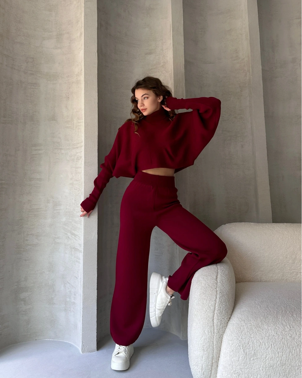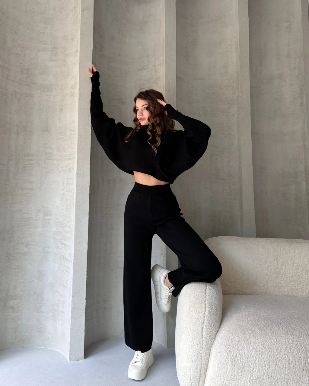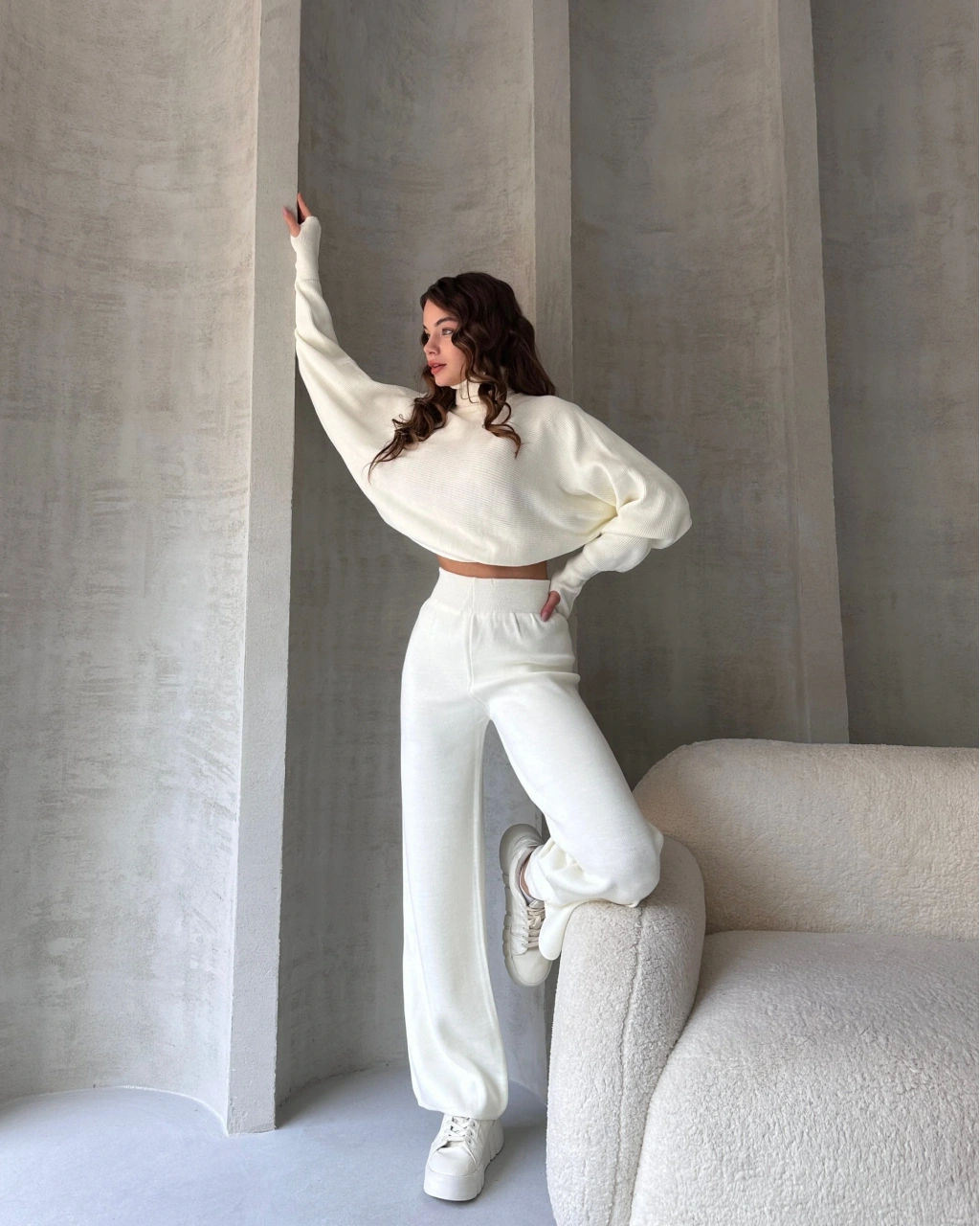 Ürün Adı :Balıkçı Crop Kazak Ve Pantolon Triko Takım