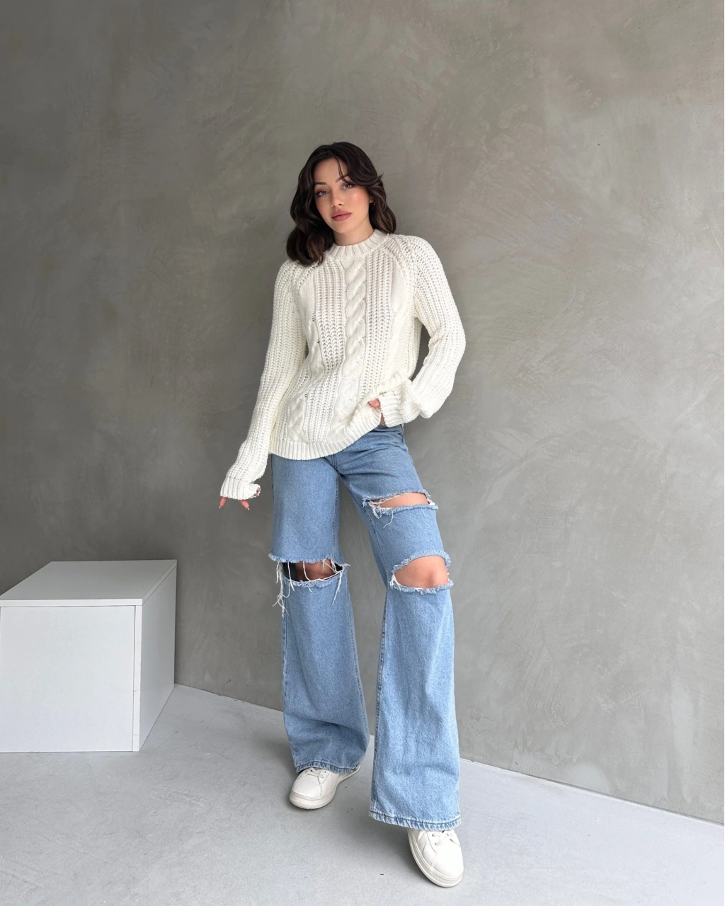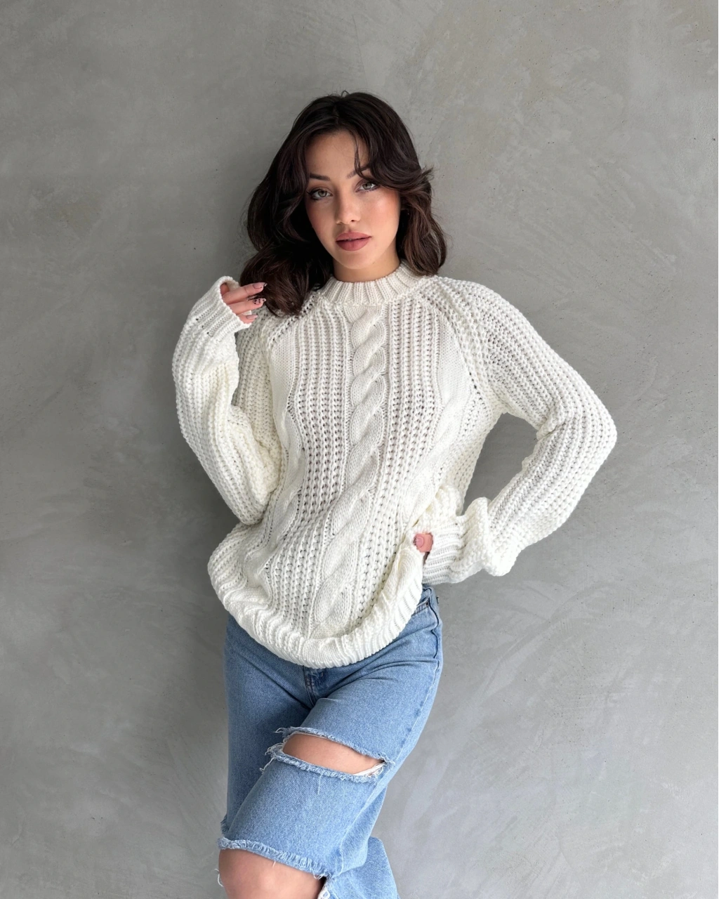 Ürün Adı :Bisiklet Yaka Örgü Desenli Triko Kazak