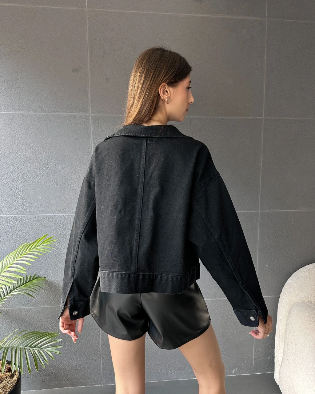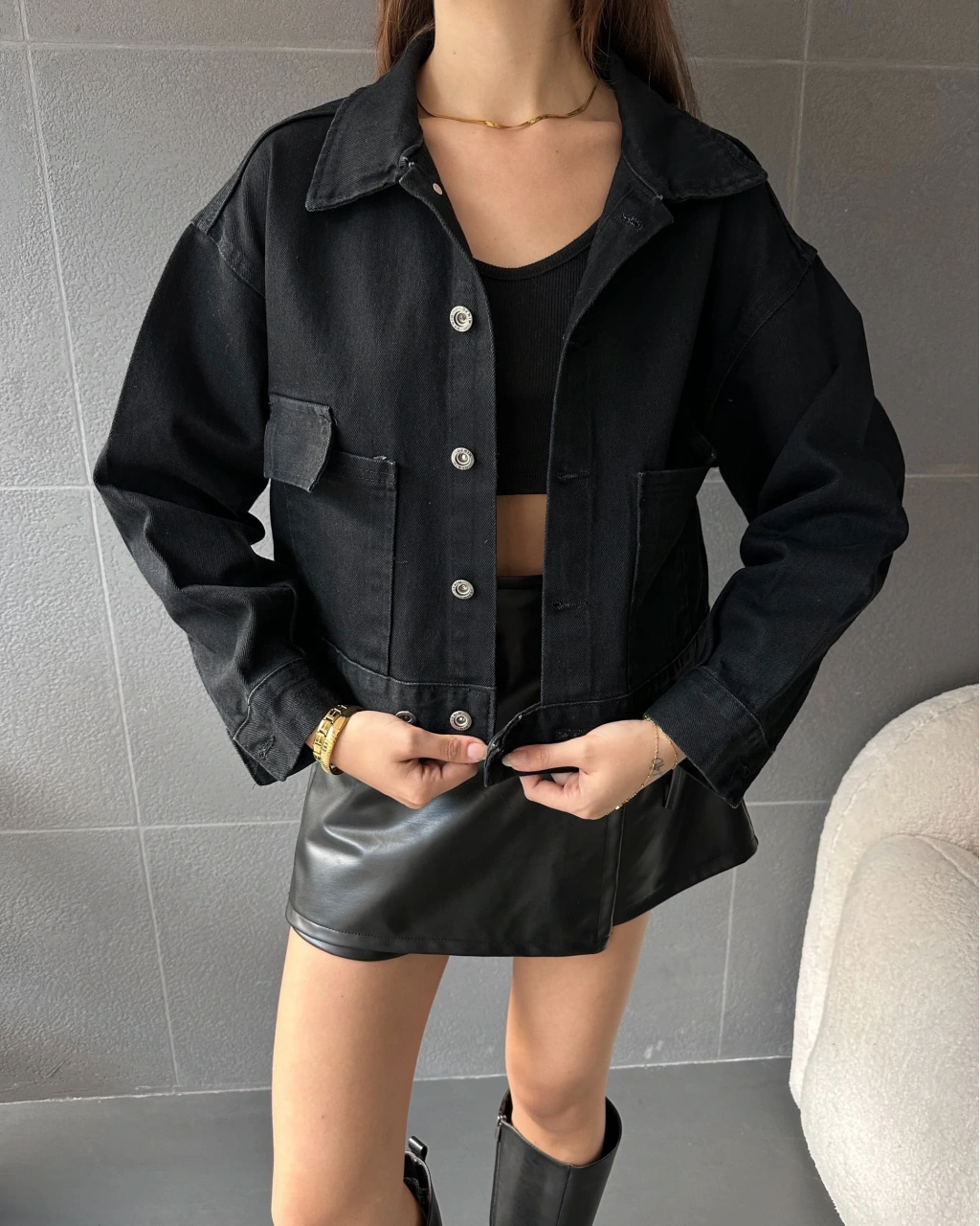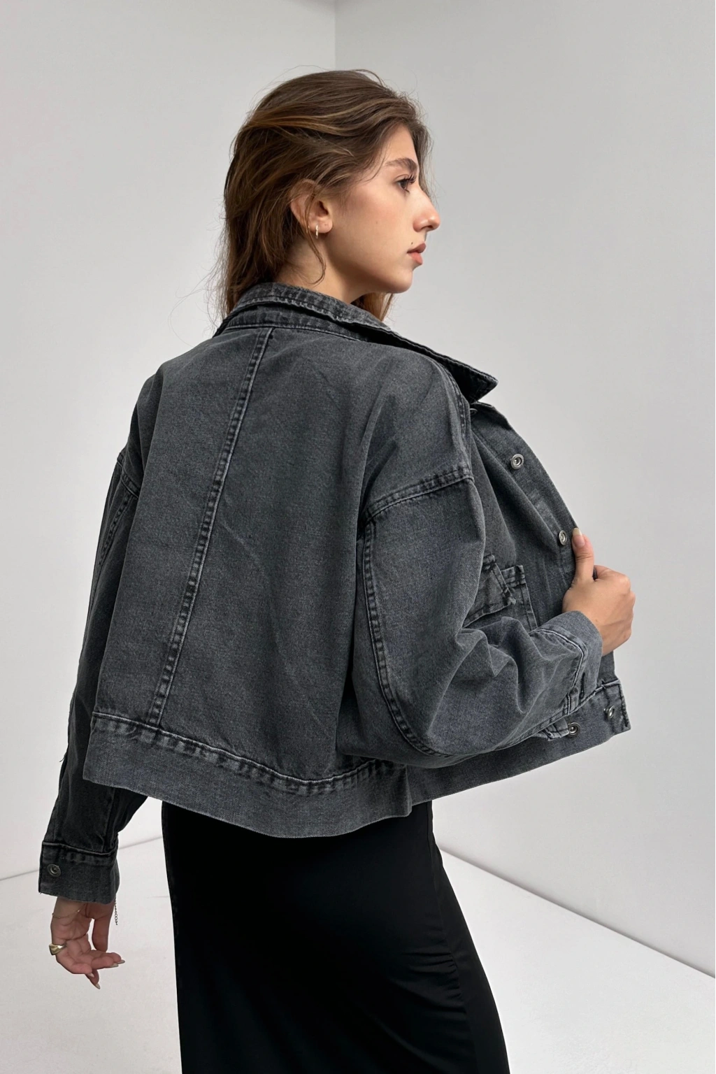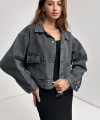 Ürün Adı : Çift Cepli Beli Düğme Detaylı Denim Ceket