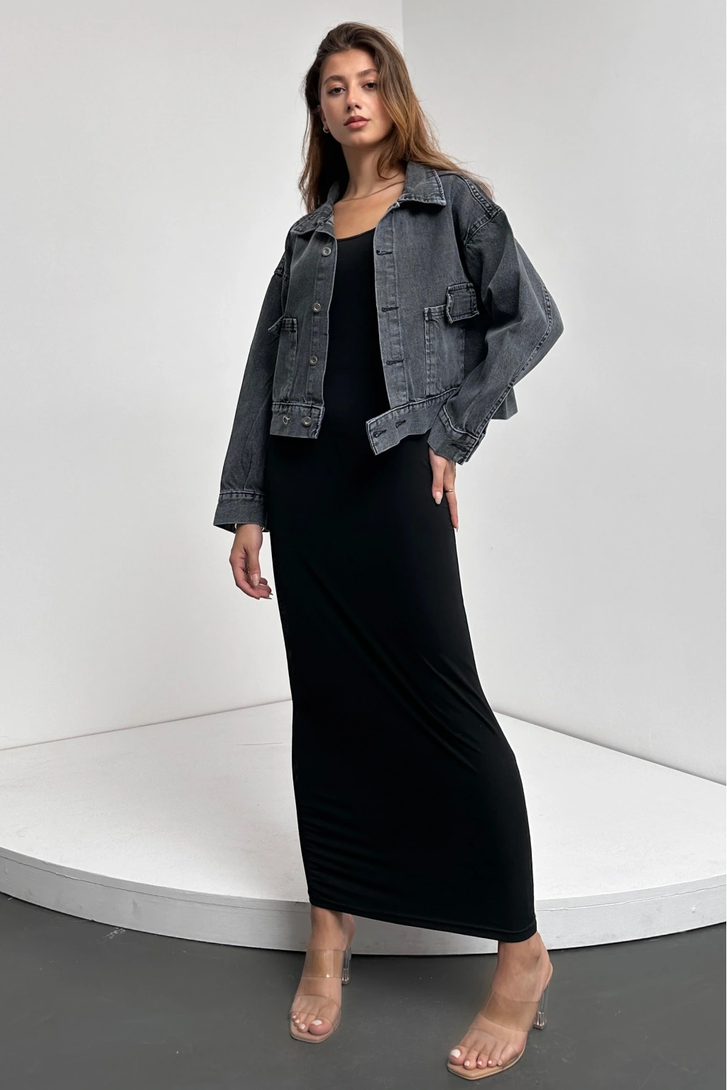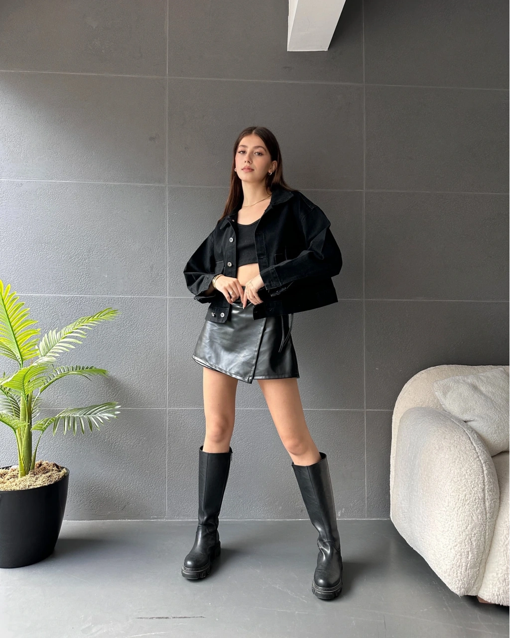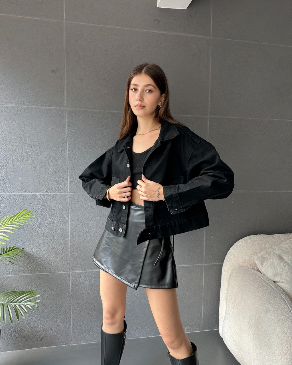 Ürün Adı : Çift Cepli Beli Düğme Detaylı Denim Ceket