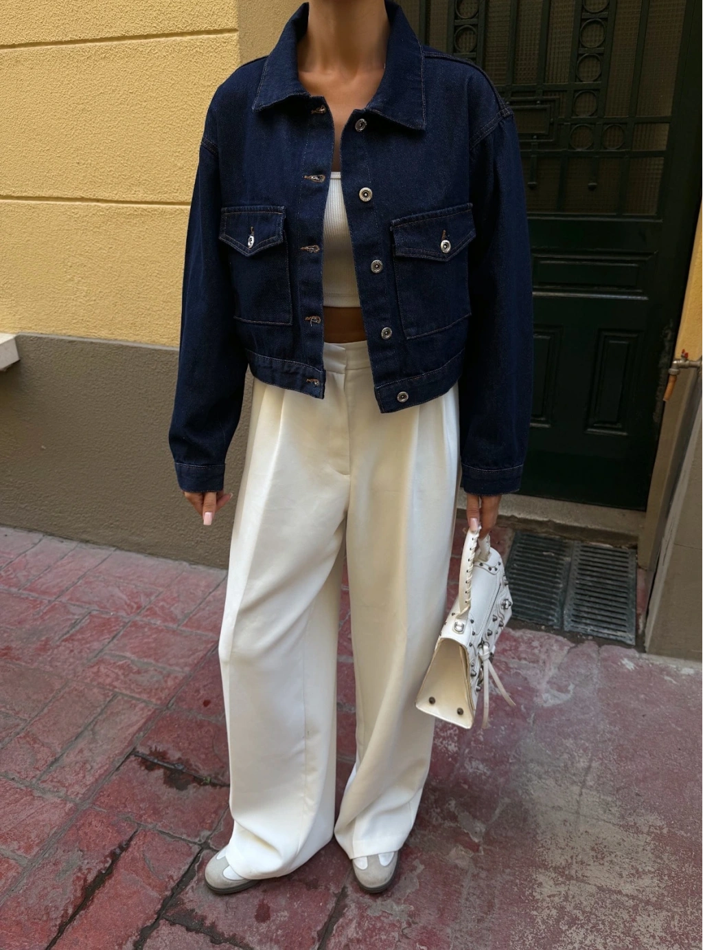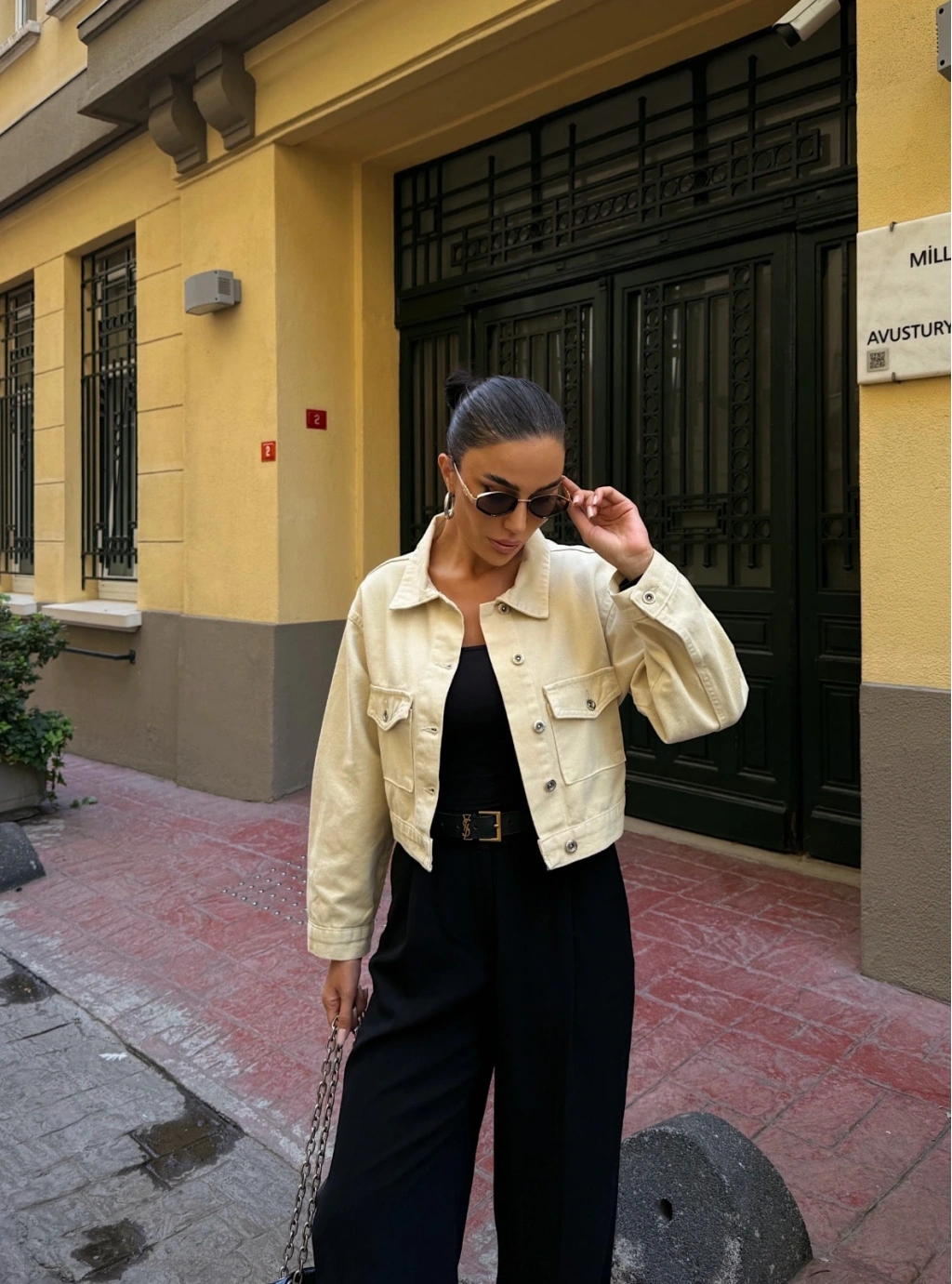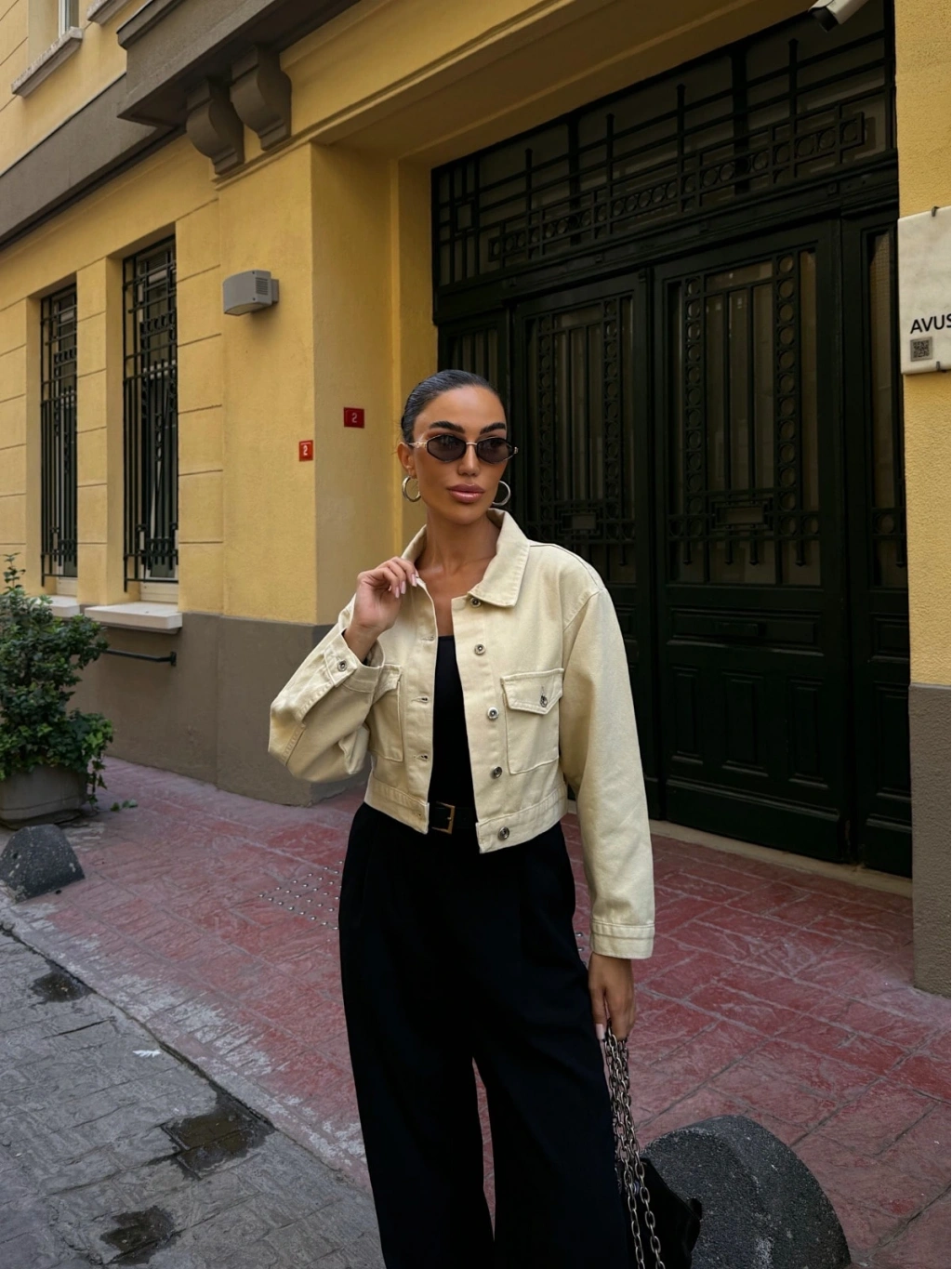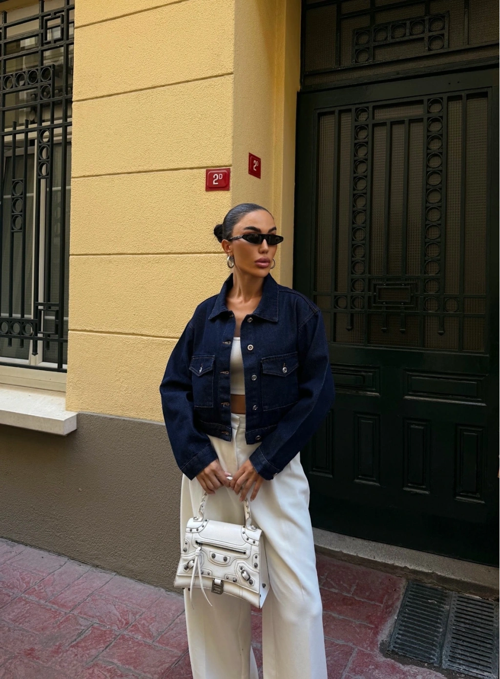 Ürün Adı : Çift Cepli Crop Denim Ceket