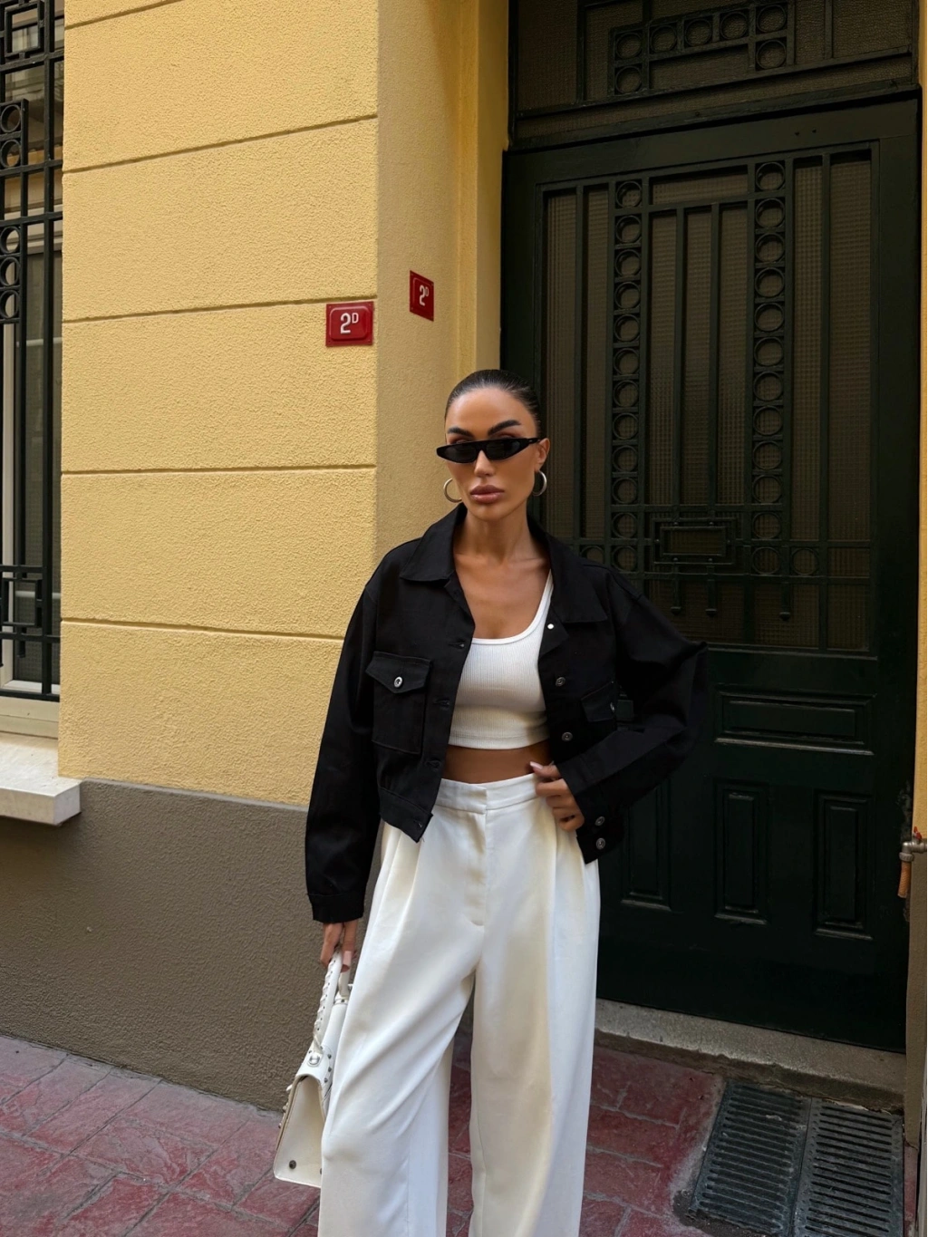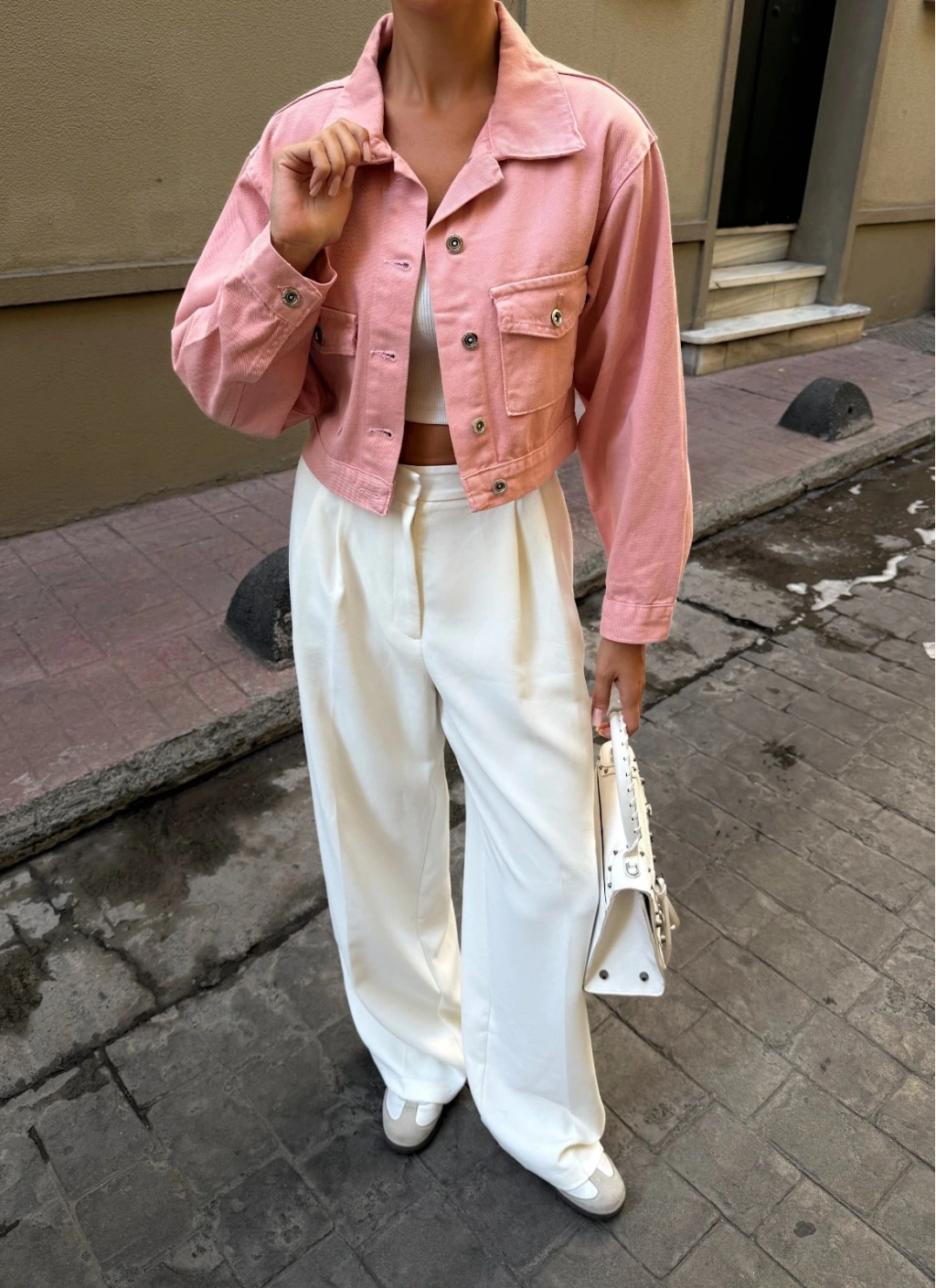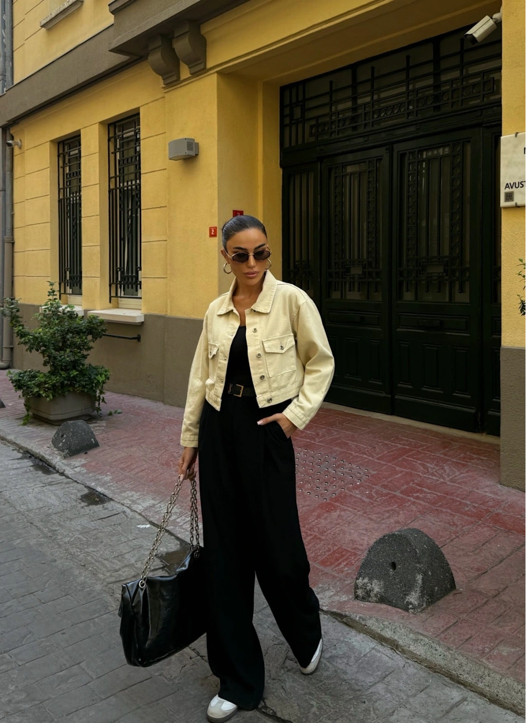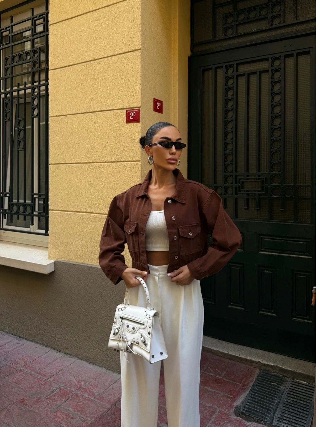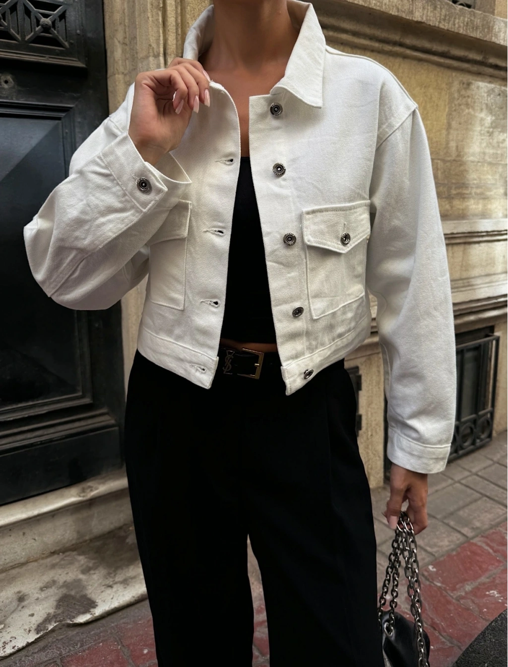 Ürün Adı : Çift Cepli Crop Denim Ceket