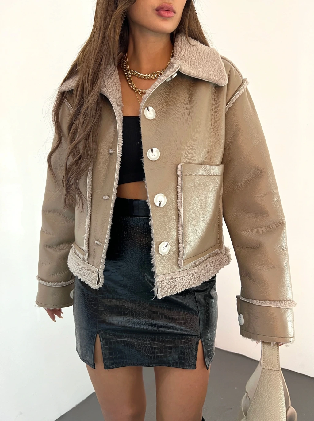 Ürün Adı : Önü Fermuarlı Şal Yaka Yumuşak Suni Deri Kürk Ceket