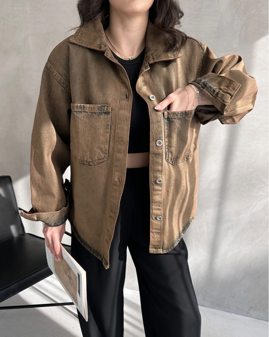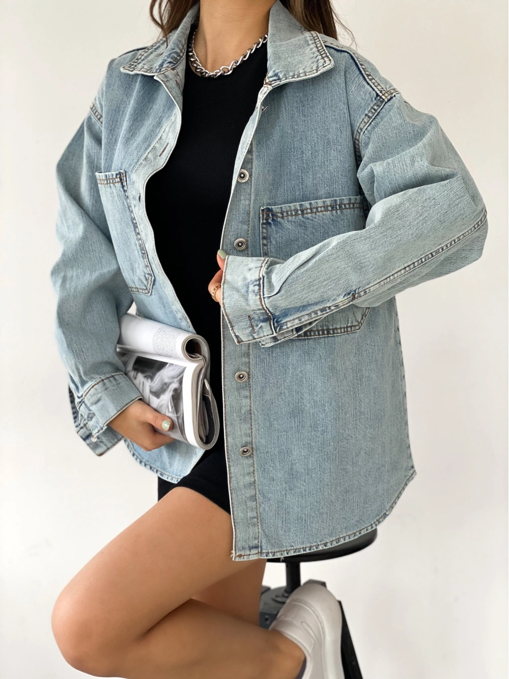 Ürün Adı : Çift Cepli Oversize Denim Gömlek Ceket