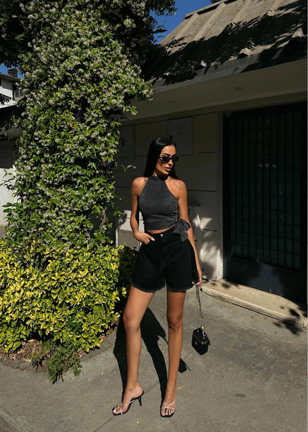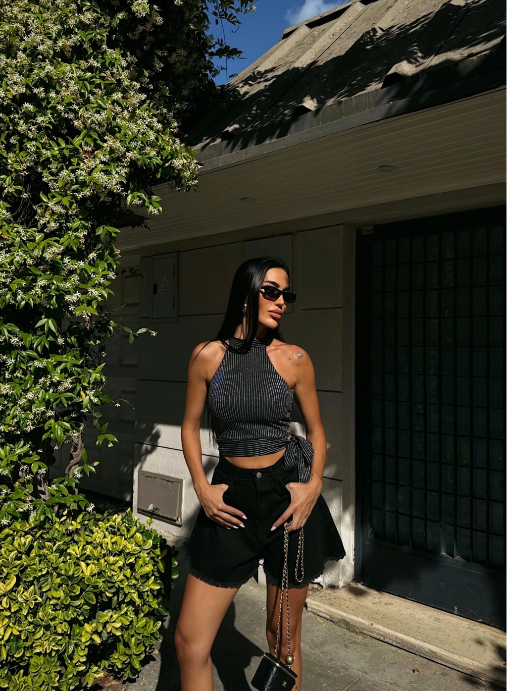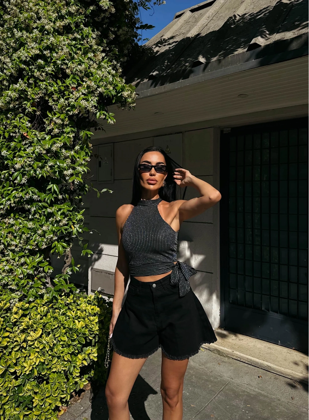 Ürün Adı :Çizgili Beli Kuşak Detaylı Halter Bluz