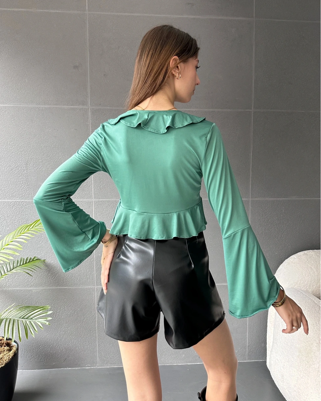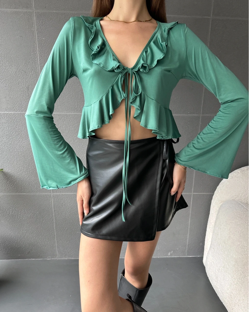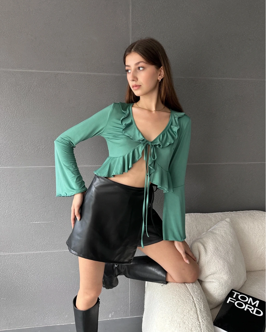 Ürün Adı :Fırfır Detaylı Önü Bağlamalı Crop Bluz