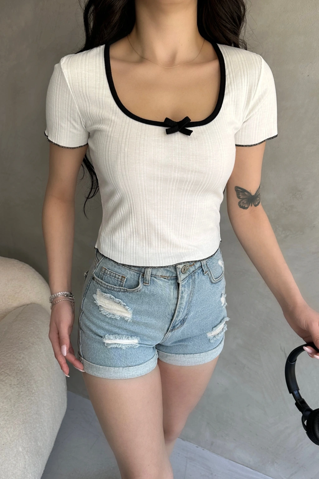 Ürün Adı :Havuz Yaka Biye Detaylı Crop Bluz