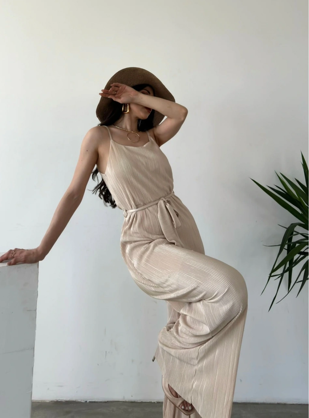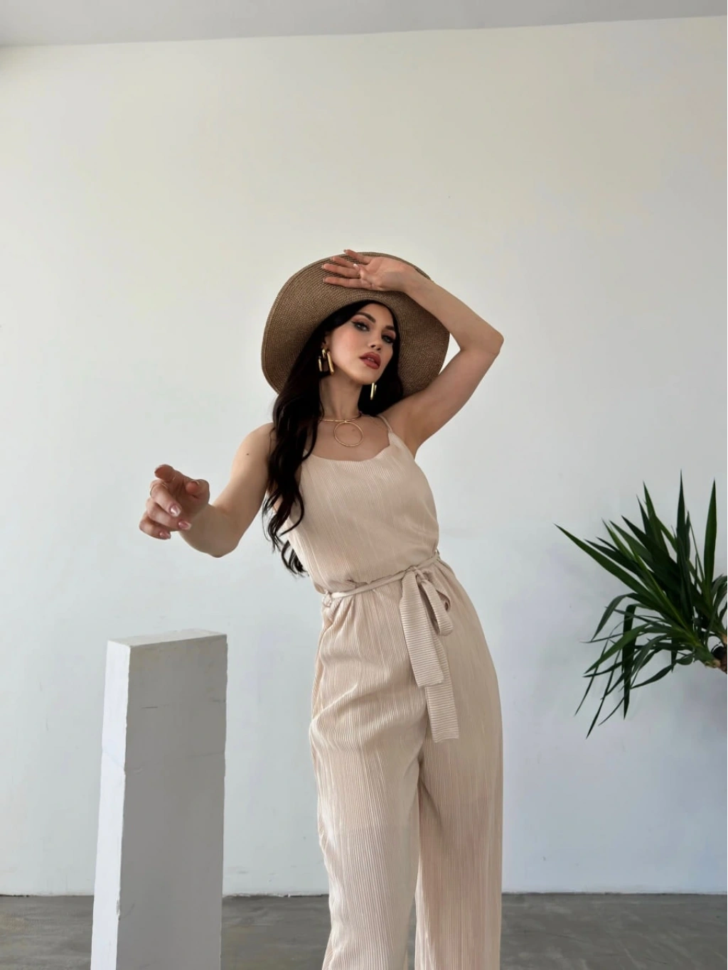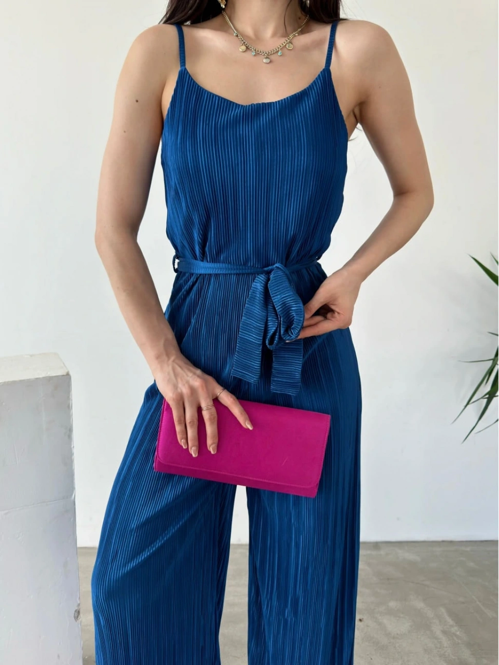 Ürün Adı: İp Askılı Kuşaklı Krinkle Tulum