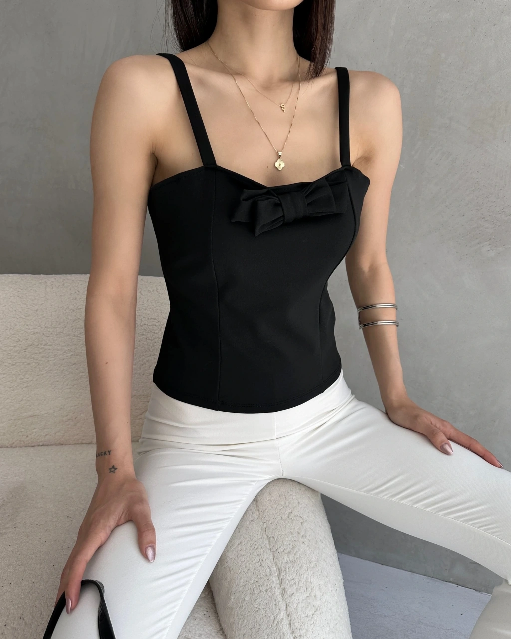 Ürün Adı :İp Askılı Yakası Fiyonk Detaylı Crep Bluz