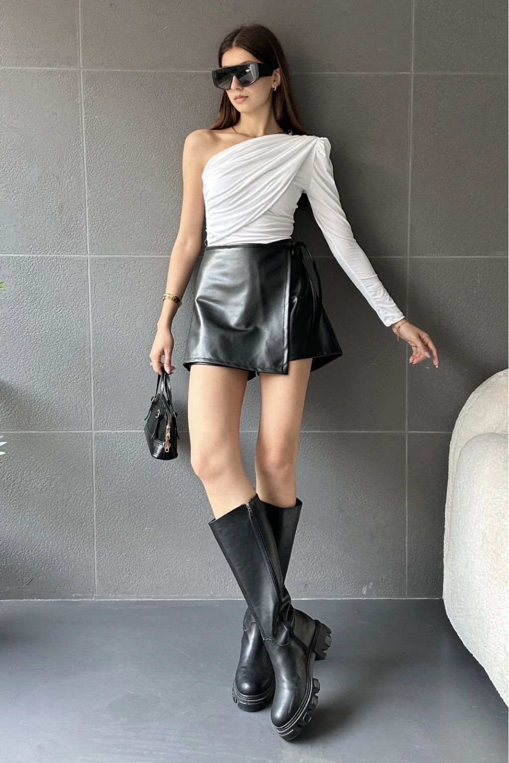 Ürün Adı :İp Bağlamalı Deri Şort Etek