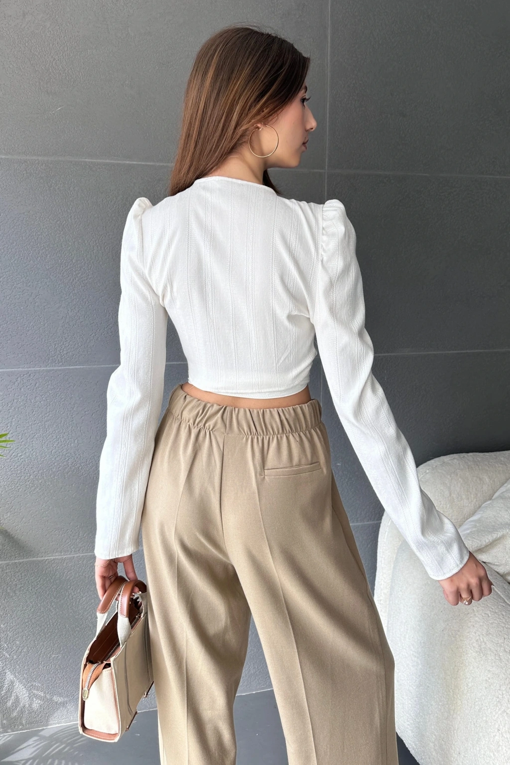 Ürün Adı :Kruvaze Yaka Beli Kuşaklı Crop Bluz