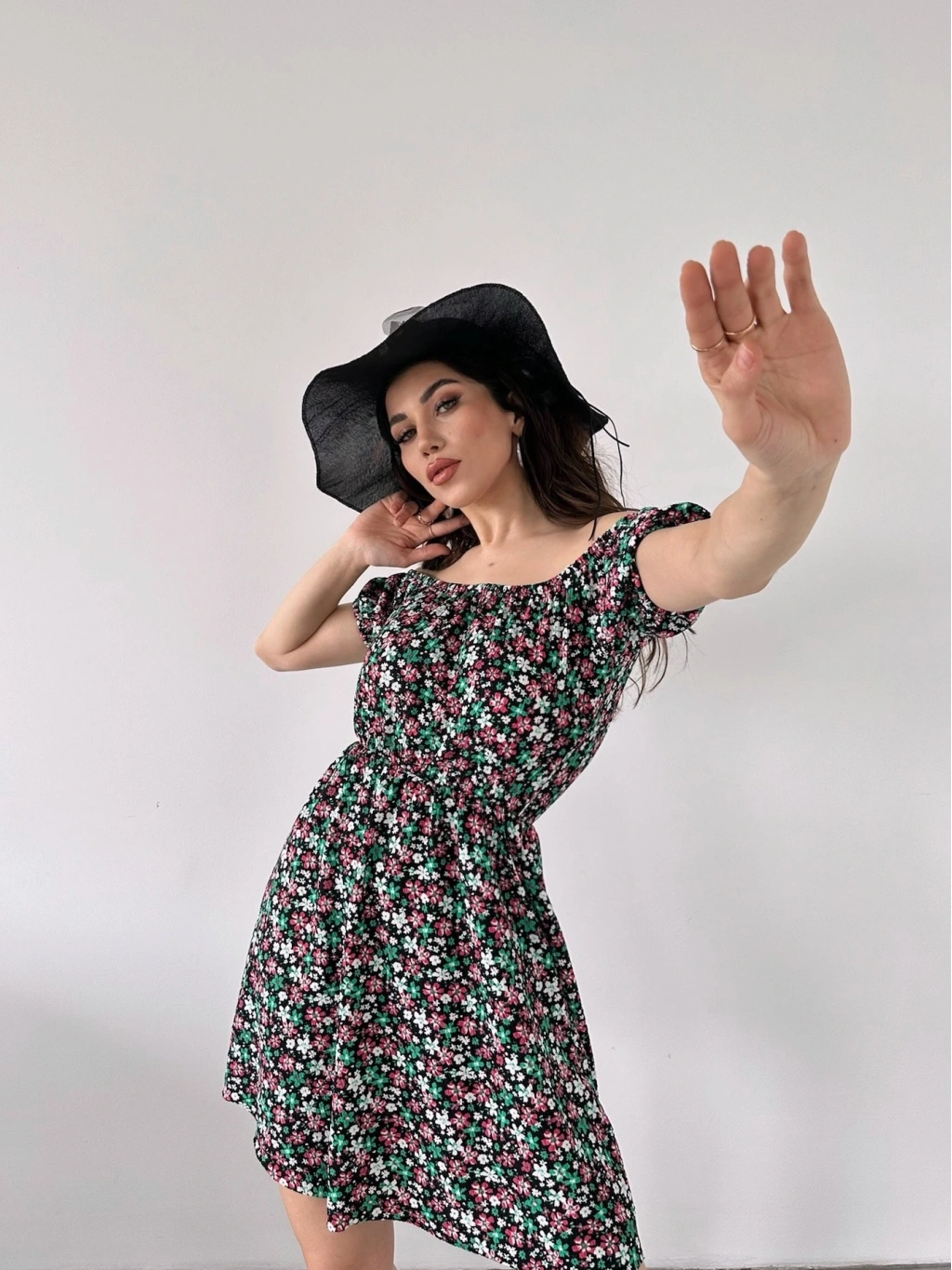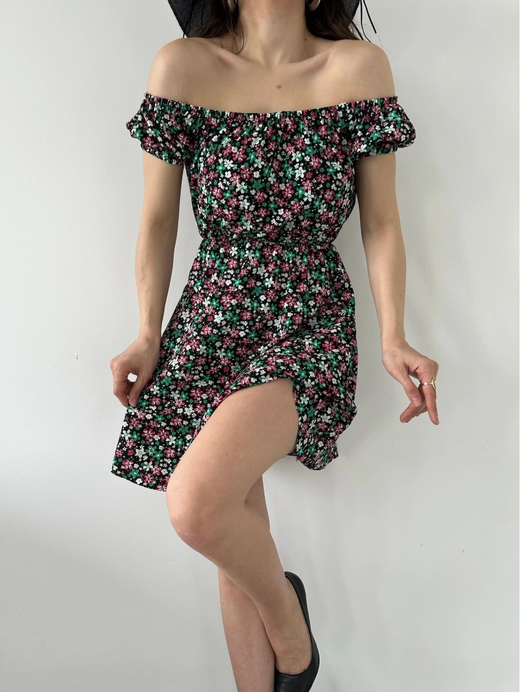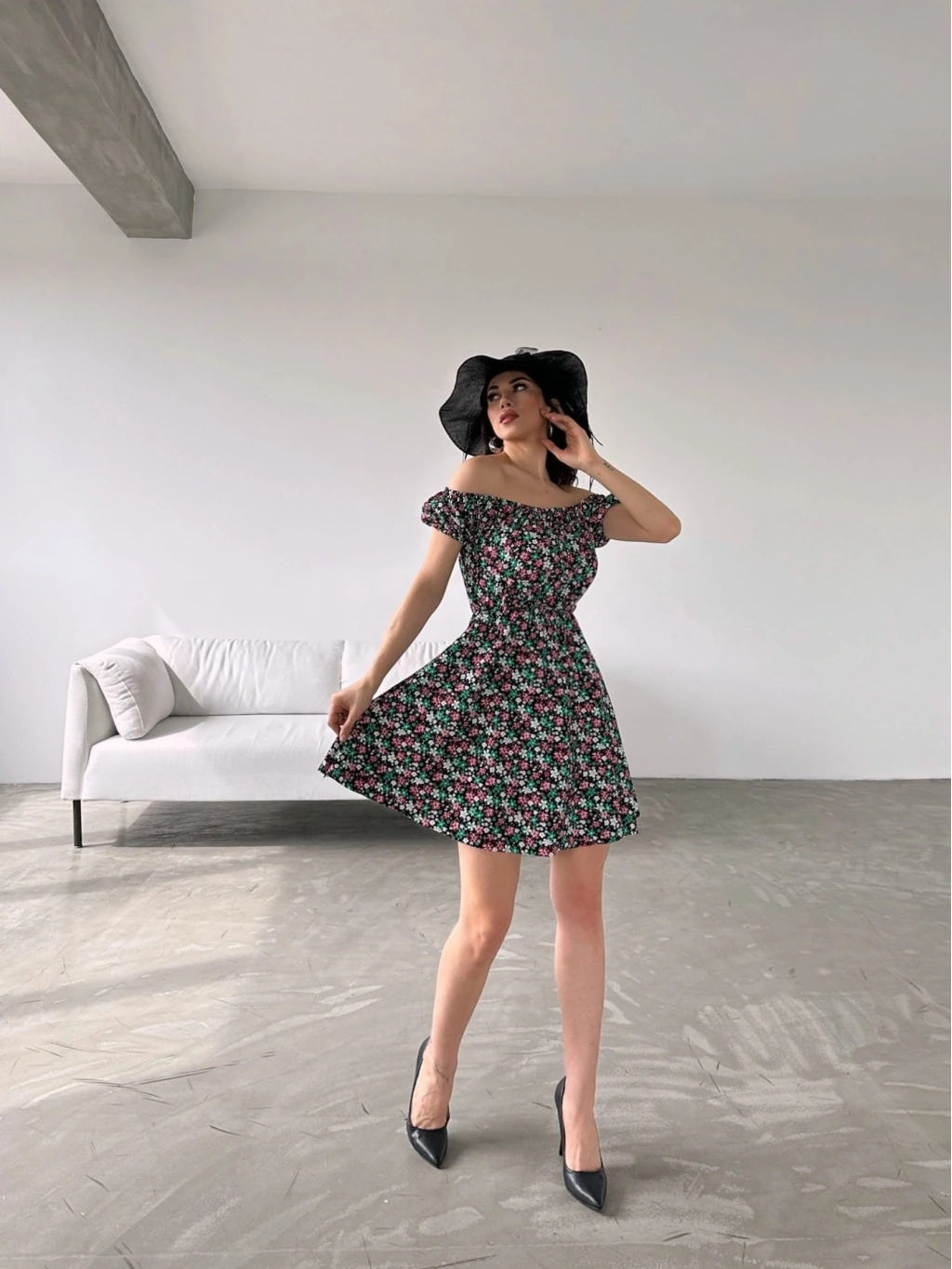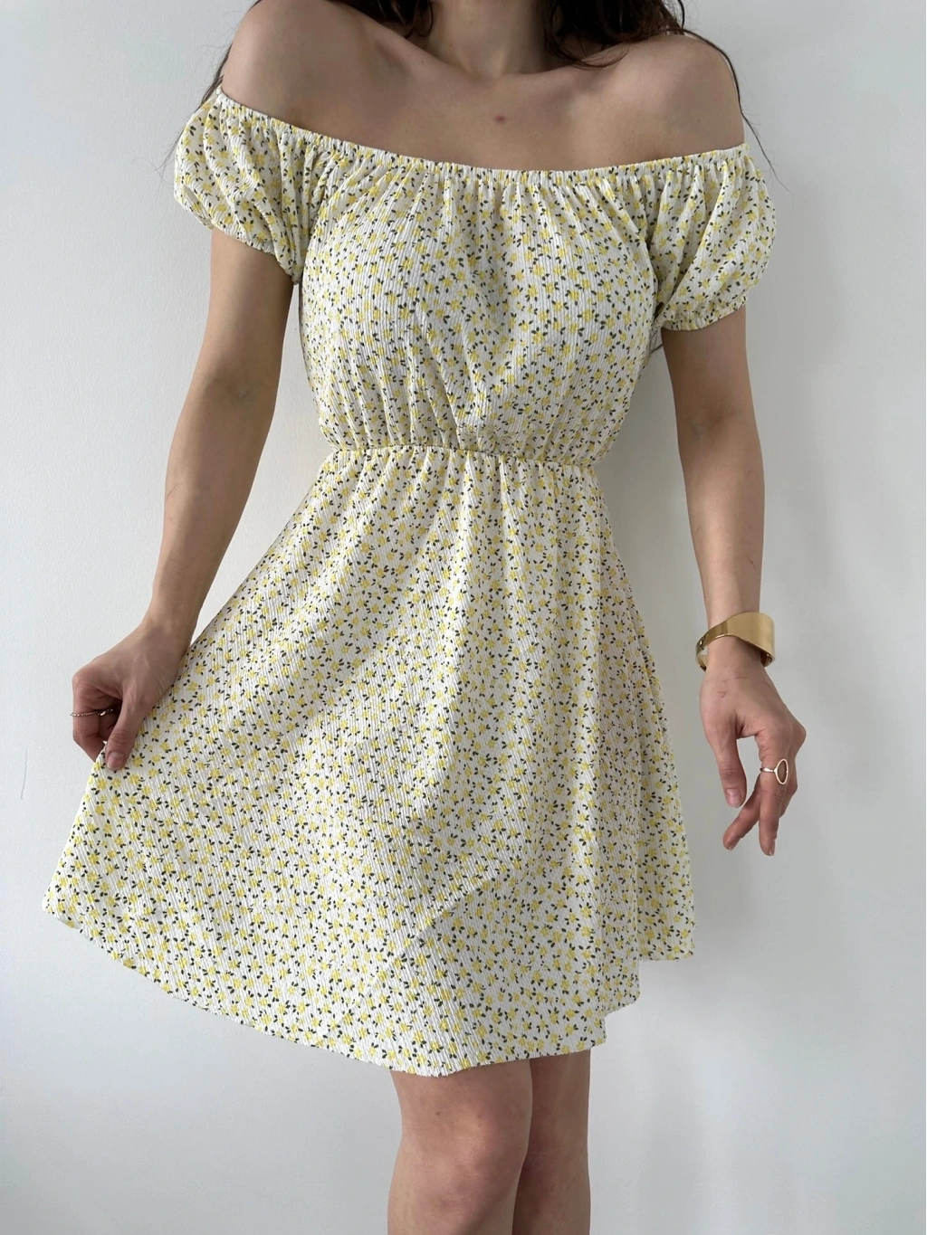 Ürün Adı : Madonna Yaka Çiçek Desenli Krinkıl Elbise