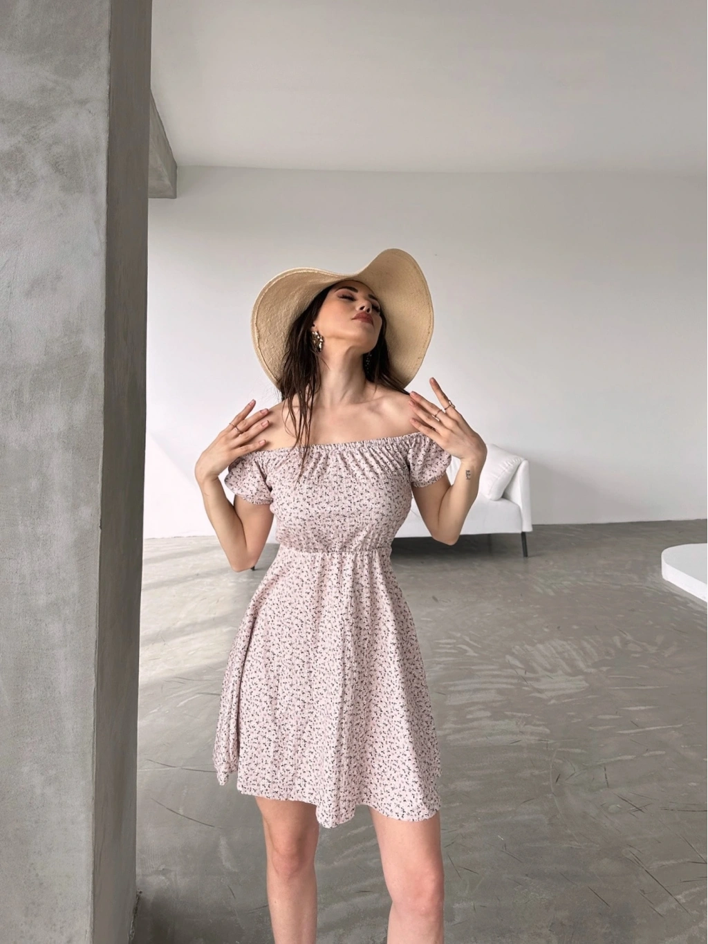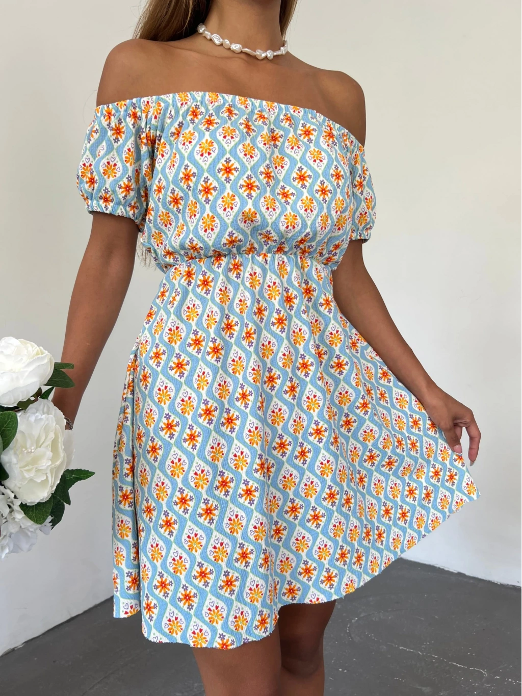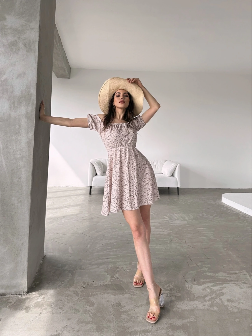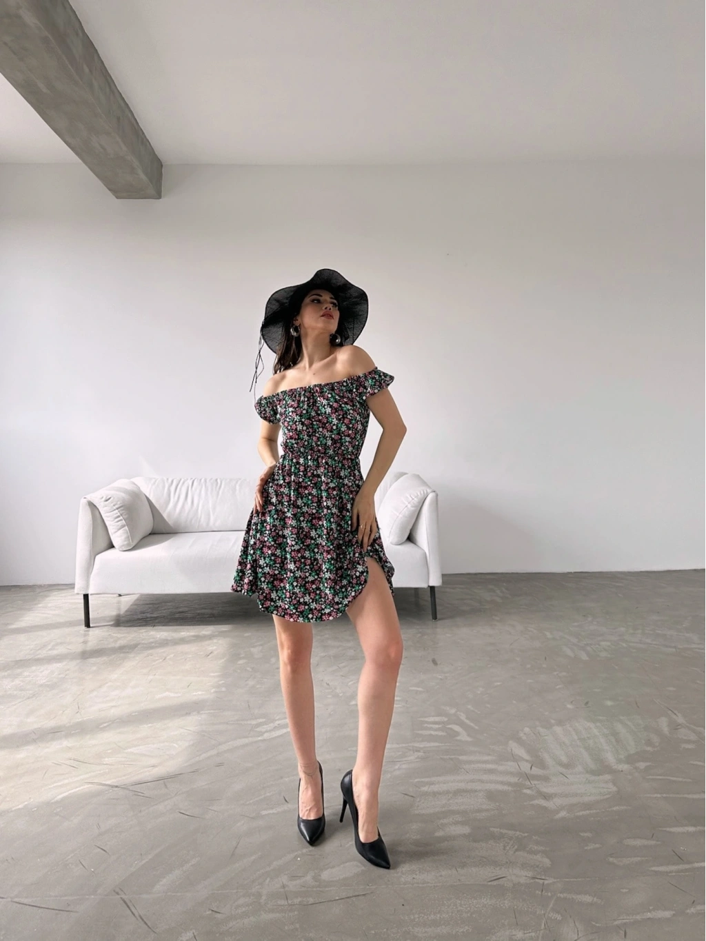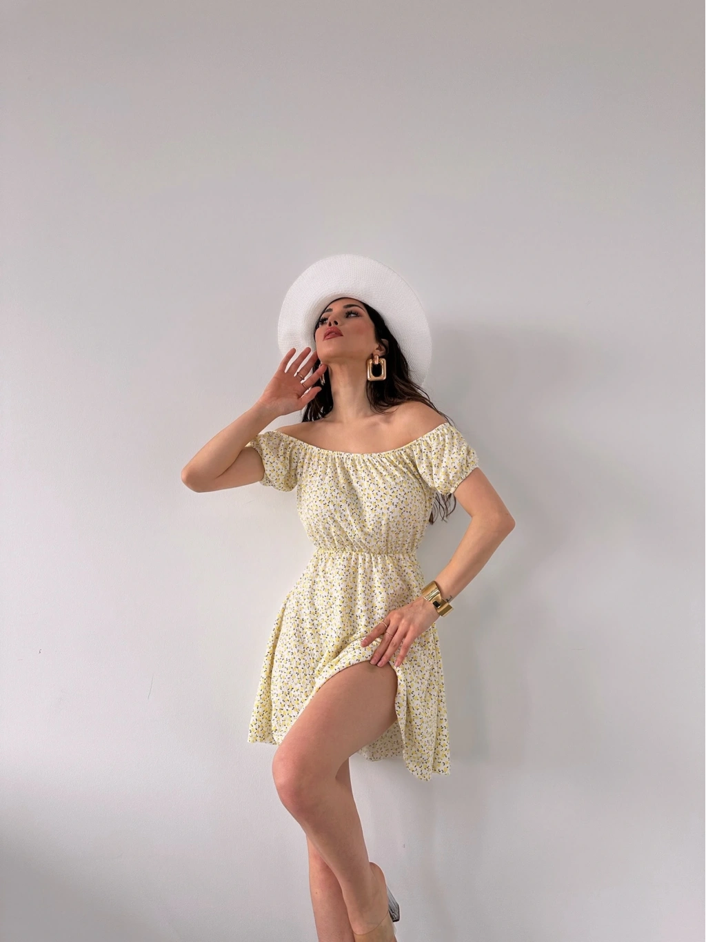 Ürün Adı : Madonna Yaka Çiçek Desenli Krinkıl Elbise