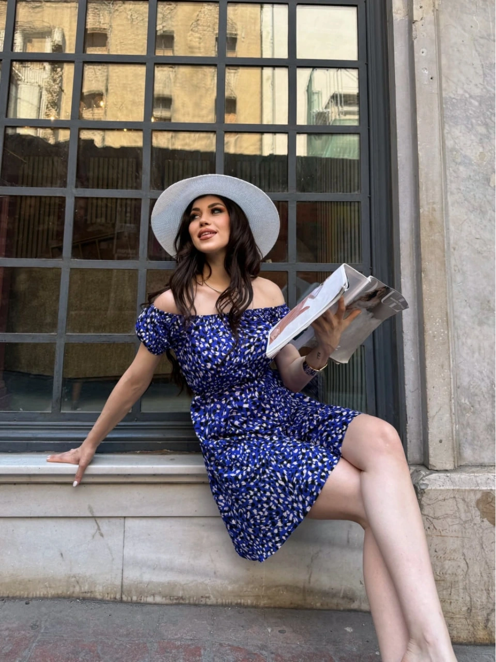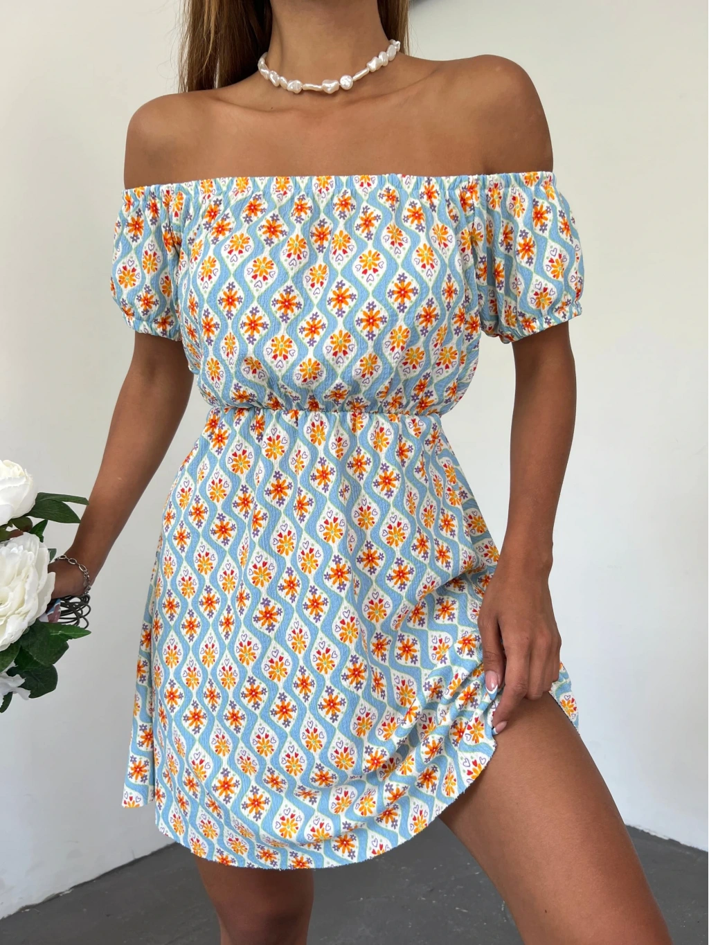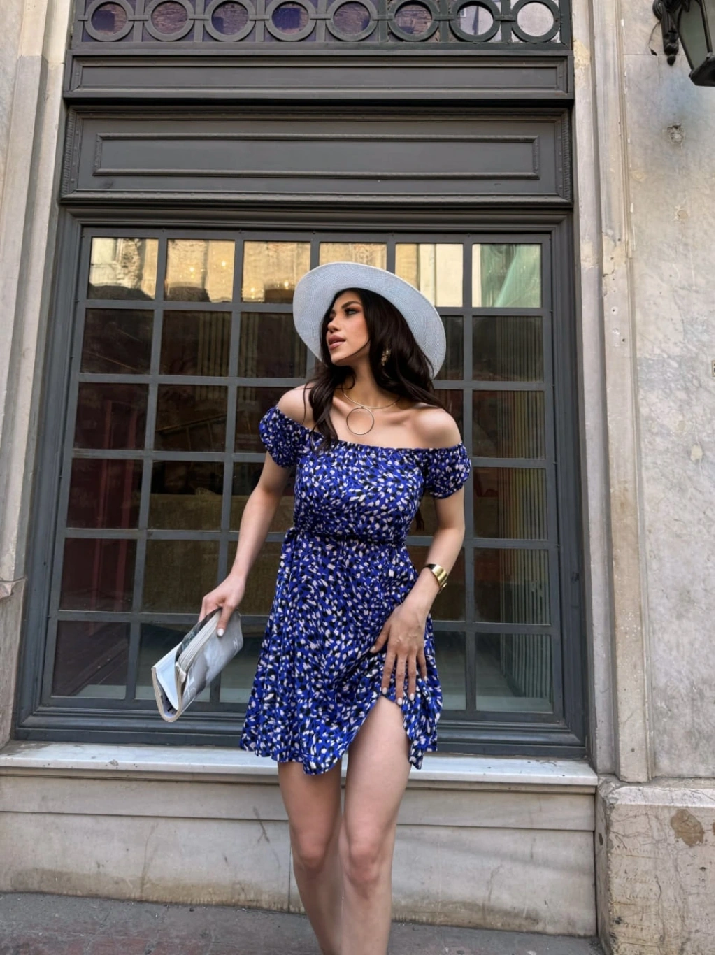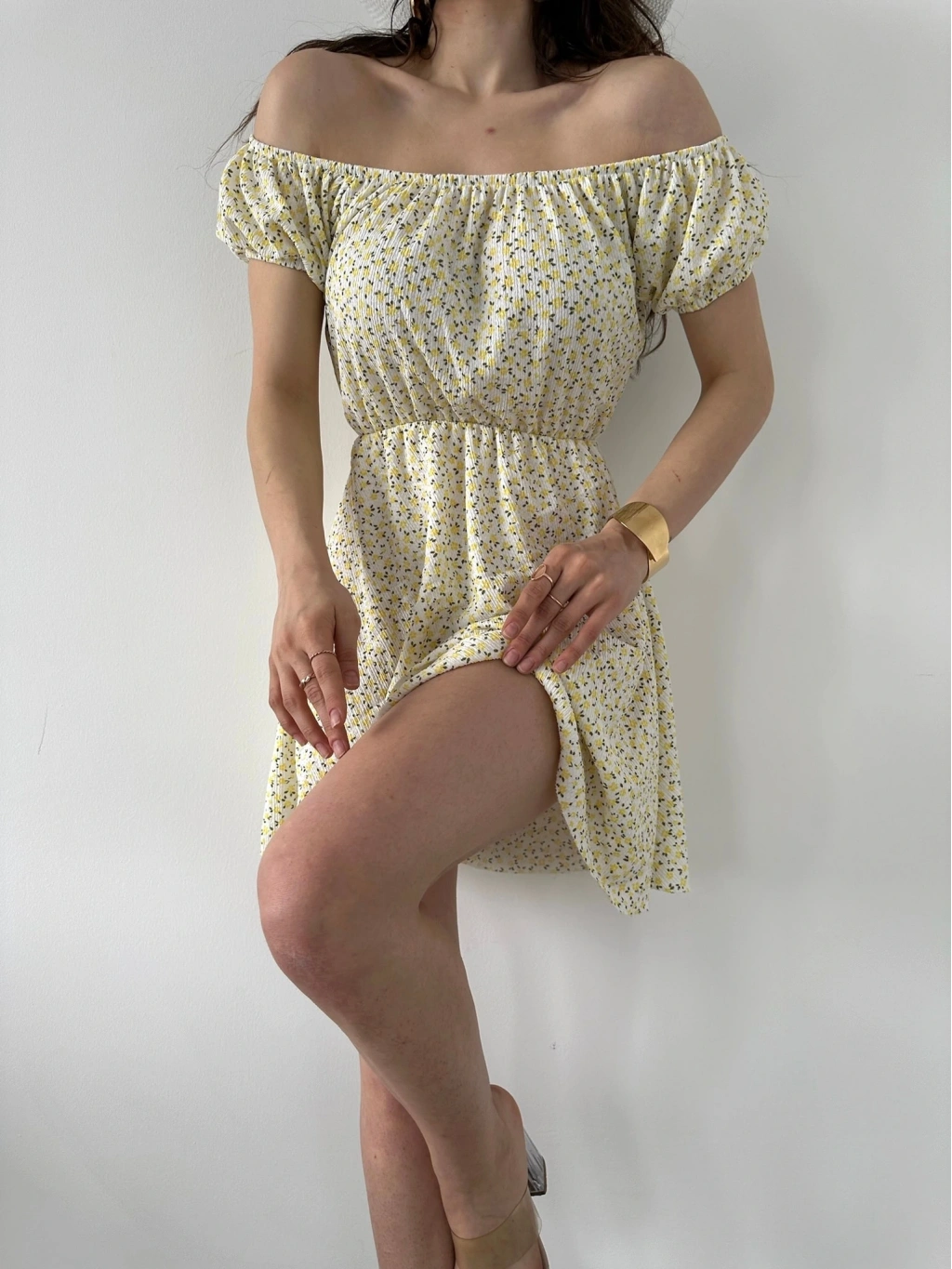 Ürün Adı : Madonna Yaka Çiçek Desenli Krinkıl Elbise