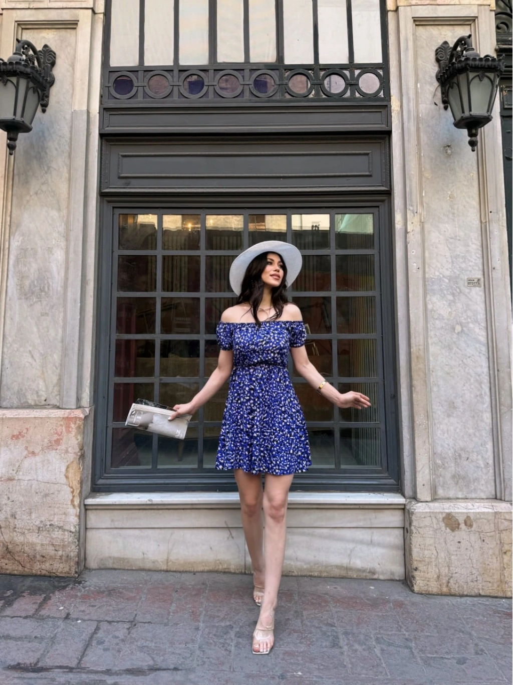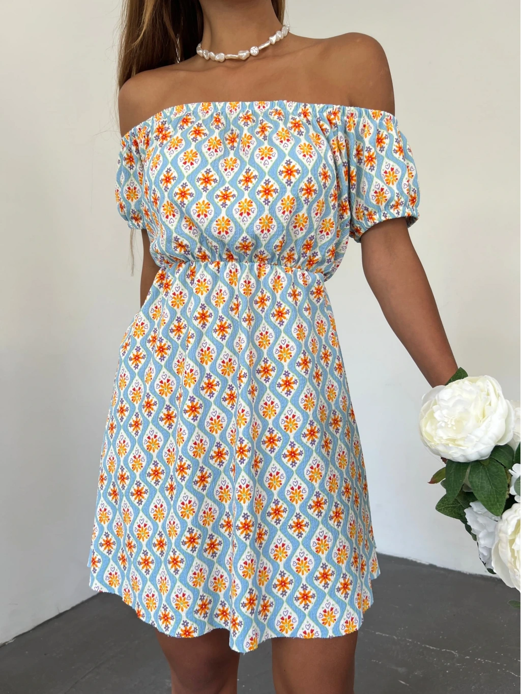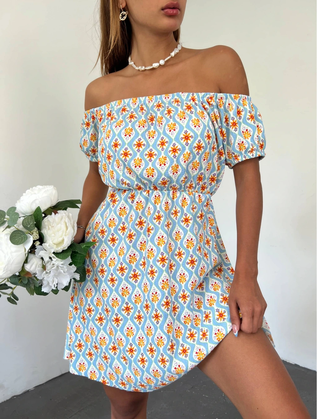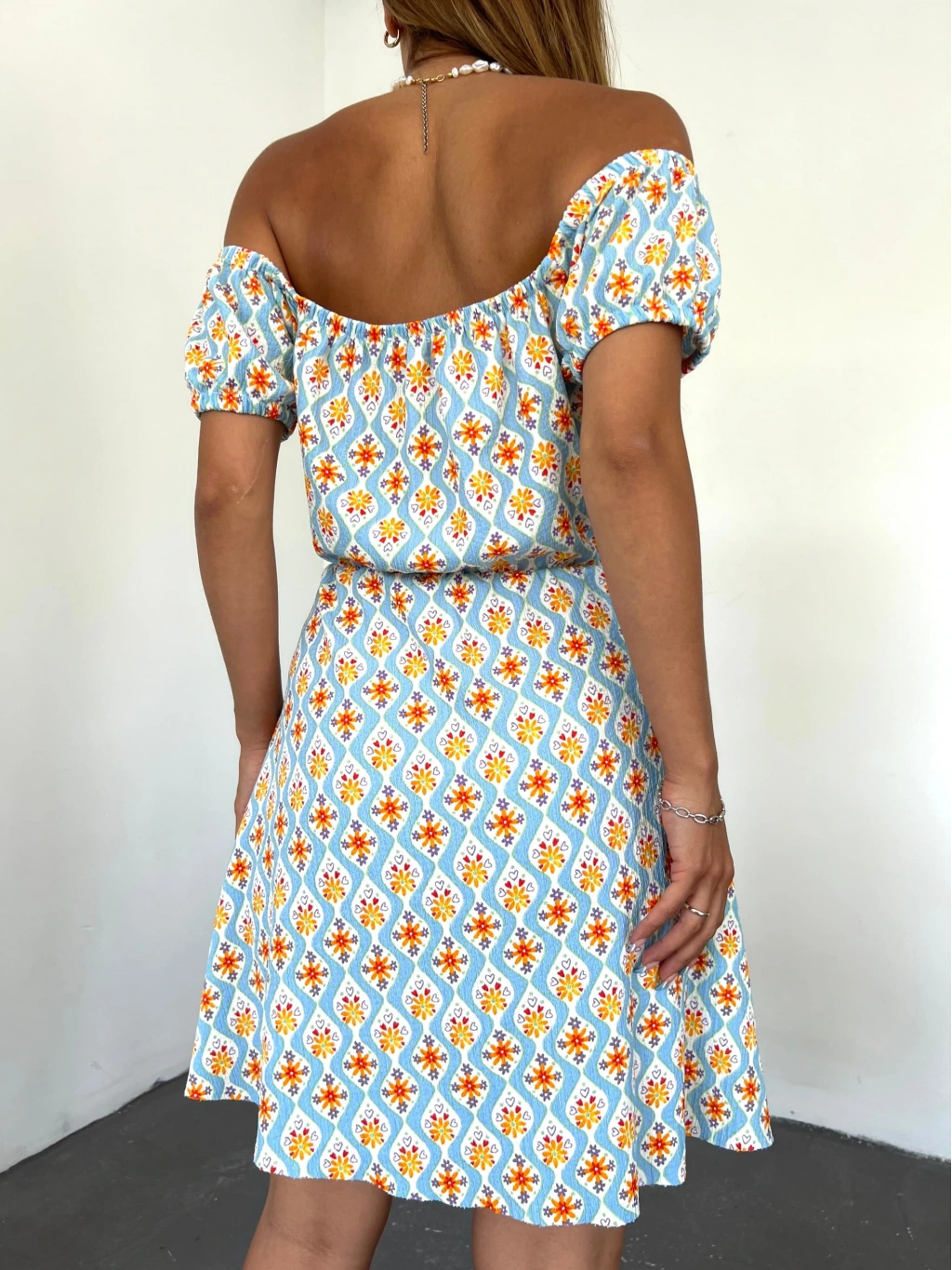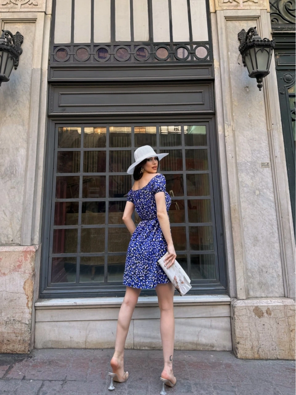 Ürün Adı : Madonna Yaka Çiçek Desenli Krinkıl Elbise