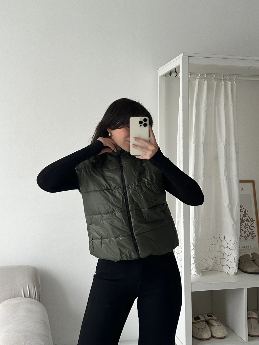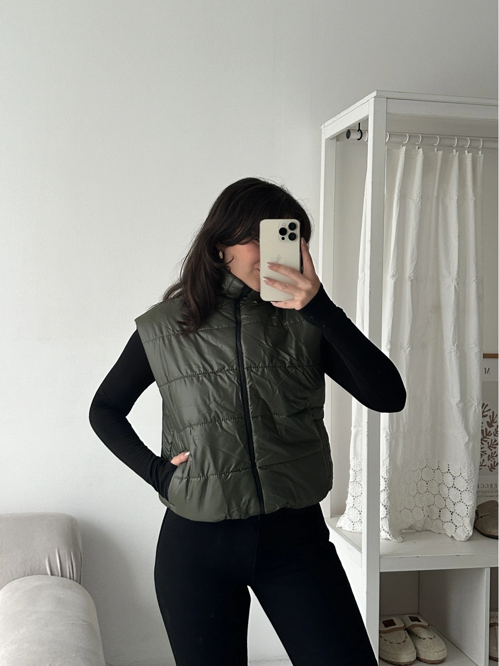 Pullaps Altı Lastikli Çift Cepli Şişme Yelek Haki