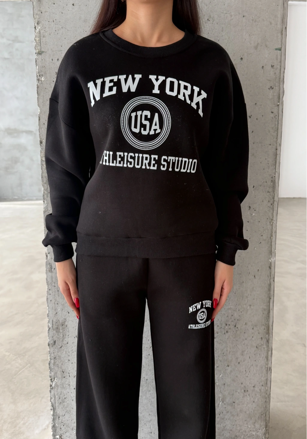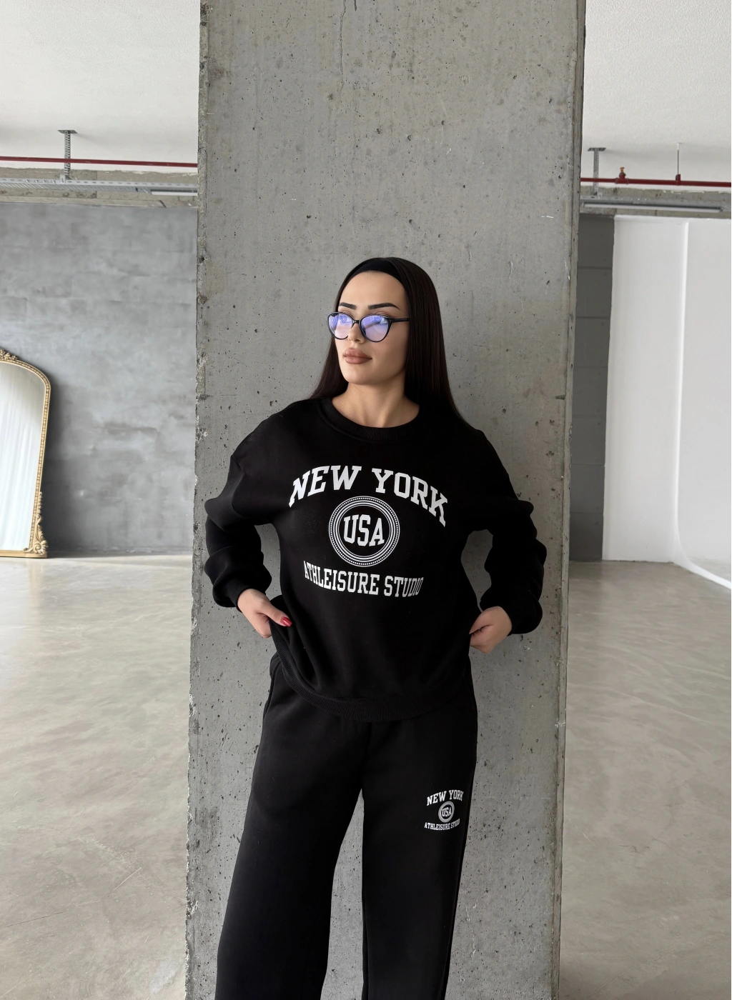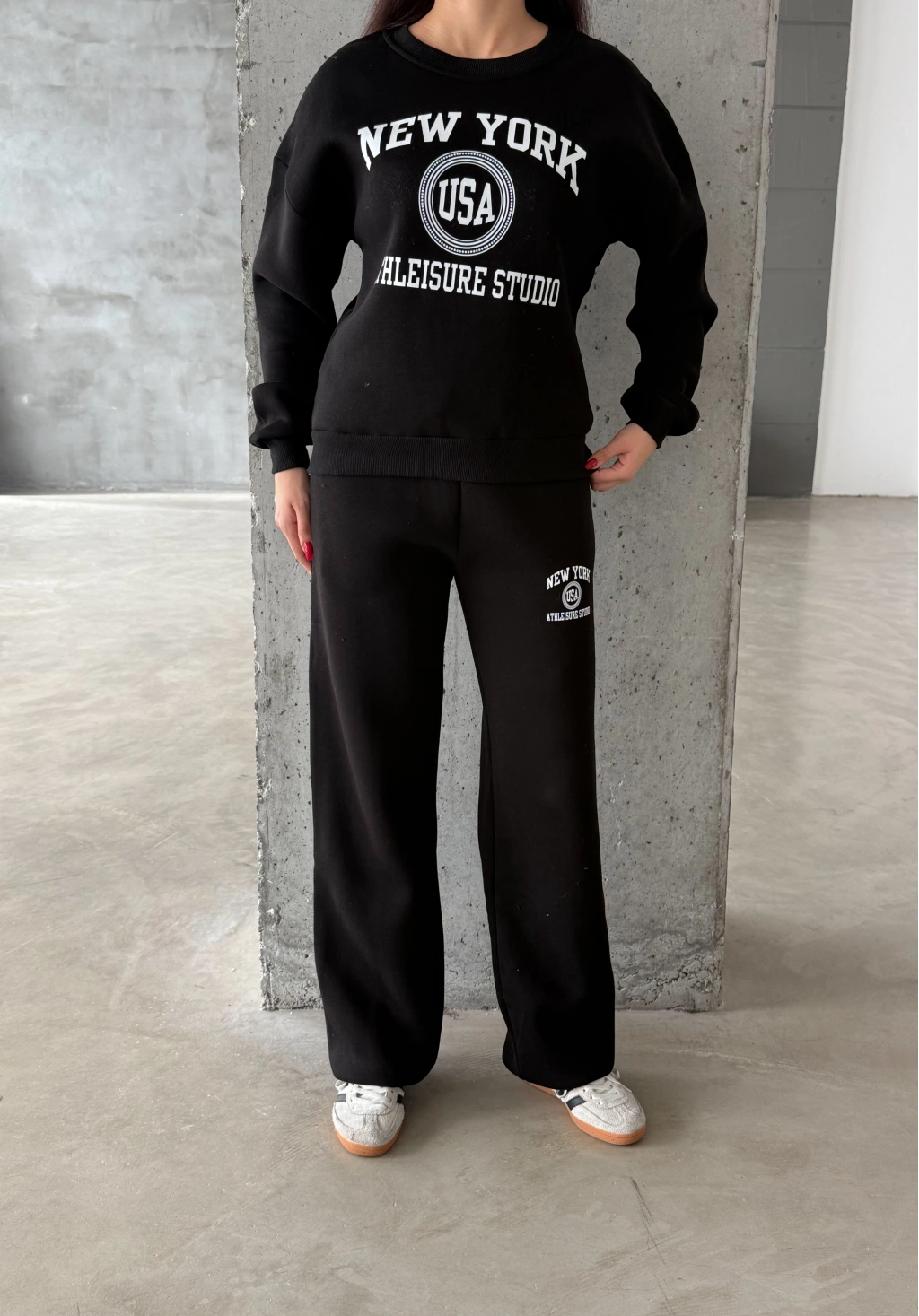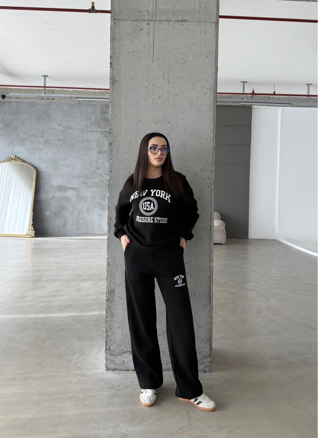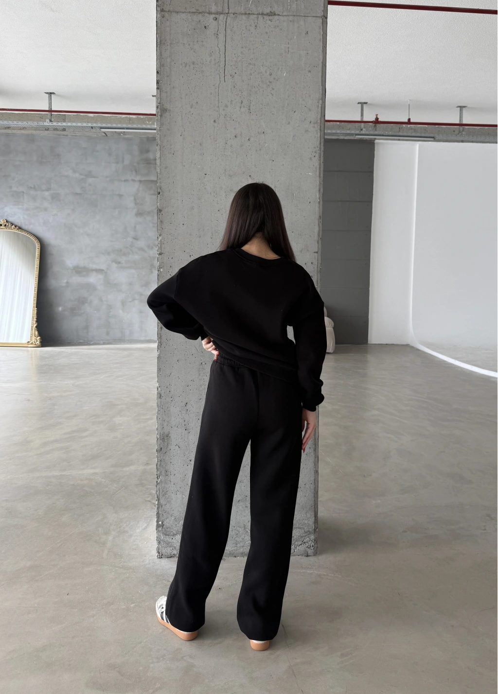 Pullaps Baskılı Şardonlu Üç İplik Takım Siyah