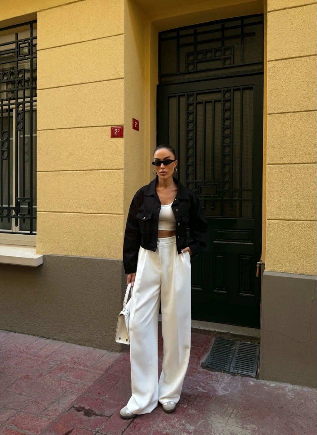 Pullaps Çift Cep Denim Crop Ceket Siyah