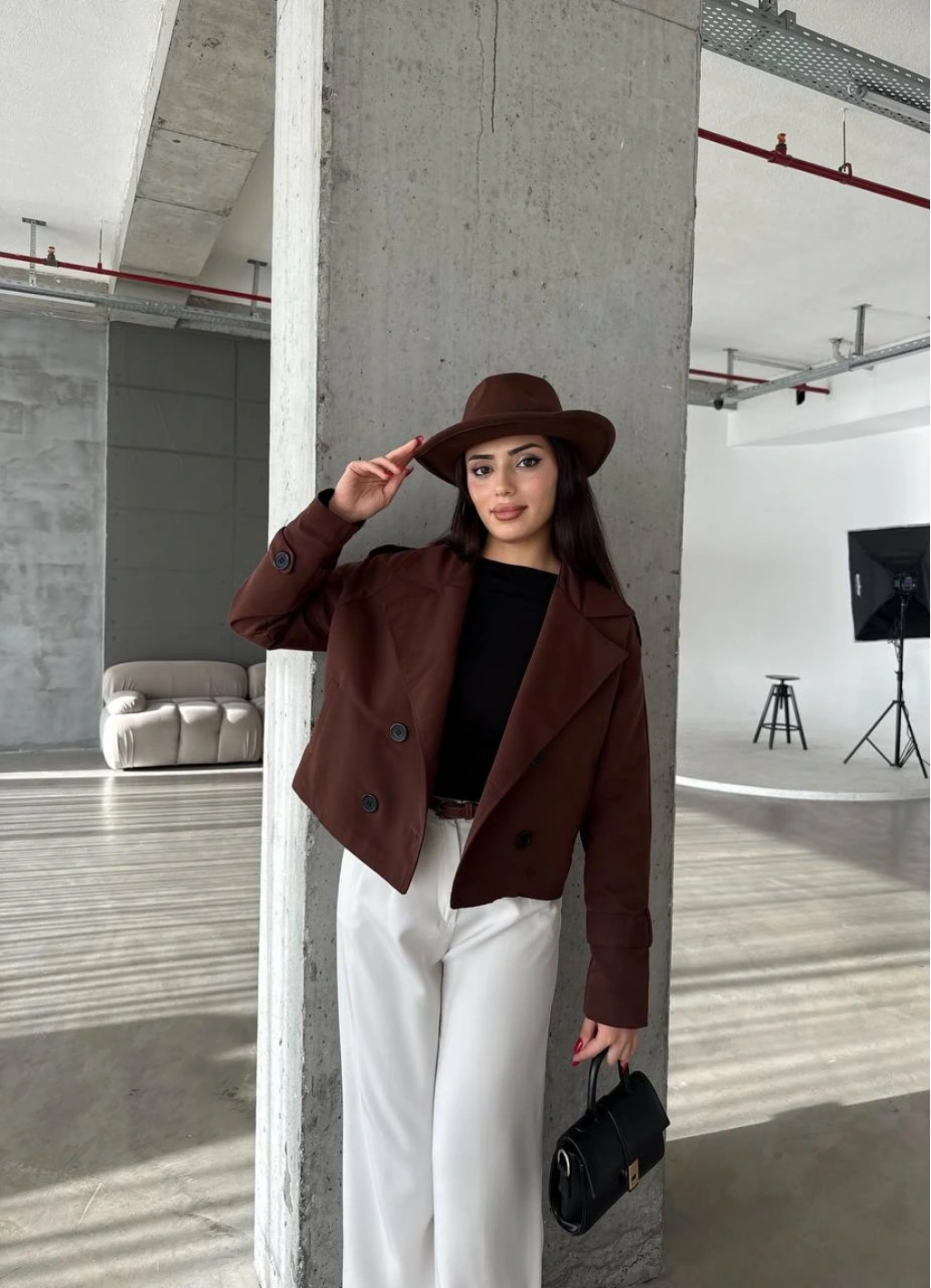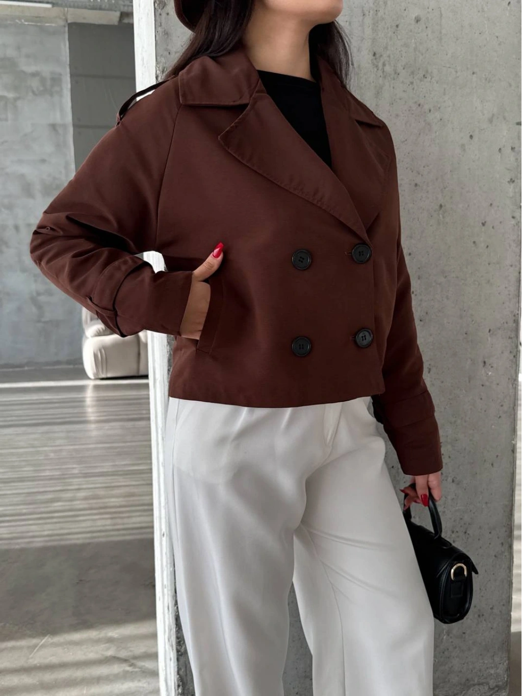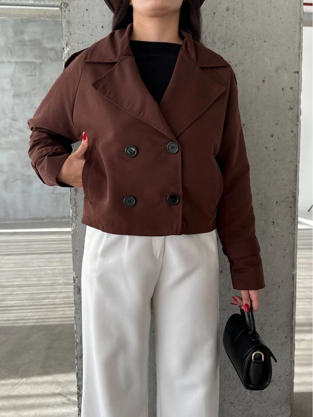 • Modern Kısa Kesim (Crop Trench): Bel hizasında biten yenilikçi kısa kesimi sayesinde özellikle yüksek belli alt giyim parçalarıyla birleşerek bacak boyunuzu uzun gösterir ve dinamik bir silüet yaratır.