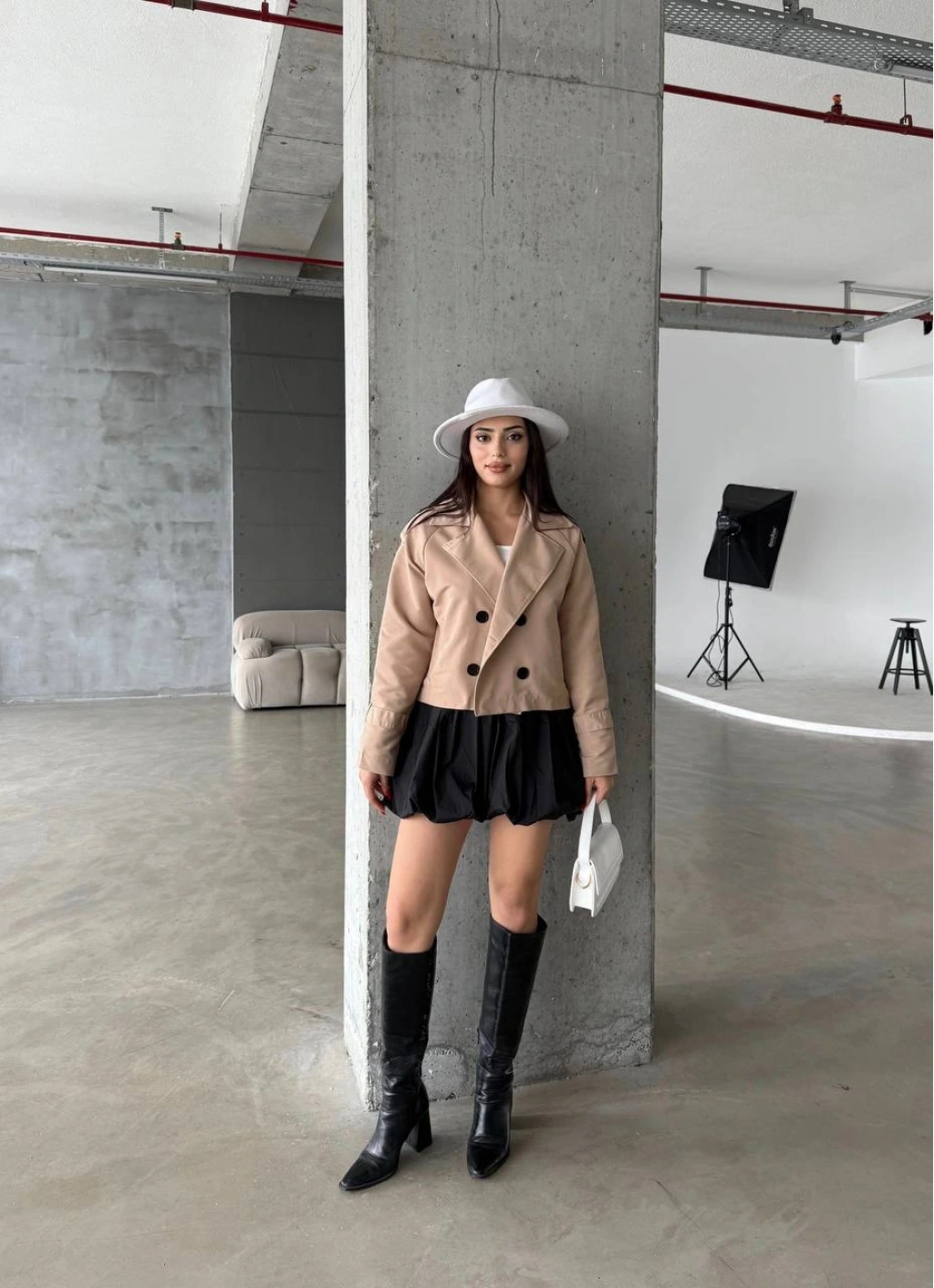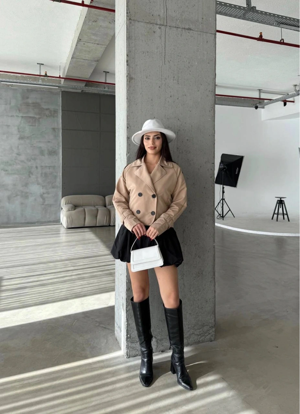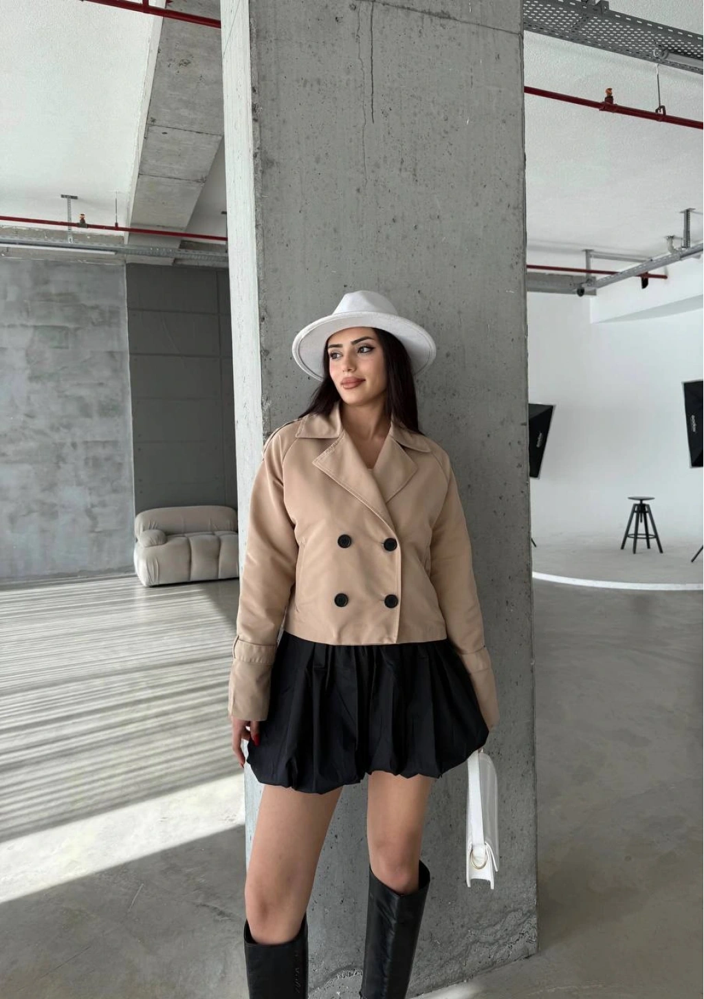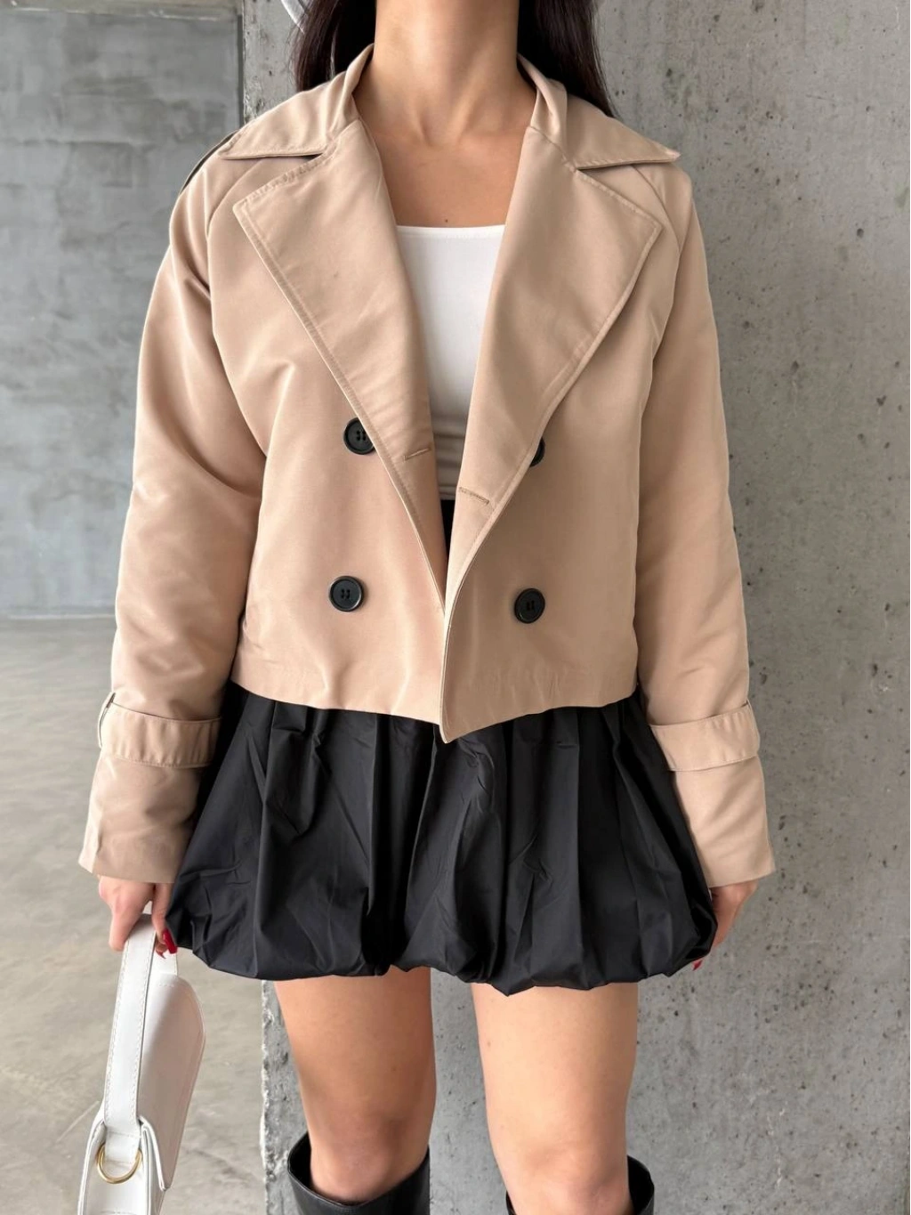 • Modern Kısa Kesim (Crop Trench): Bel hizasında biten yenilikçi kısa kesimi sayesinde özellikle yüksek belli alt giyim parçalarıyla birleşerek bacak boyunuzu uzun gösterir ve dinamik bir silüet yaratır.