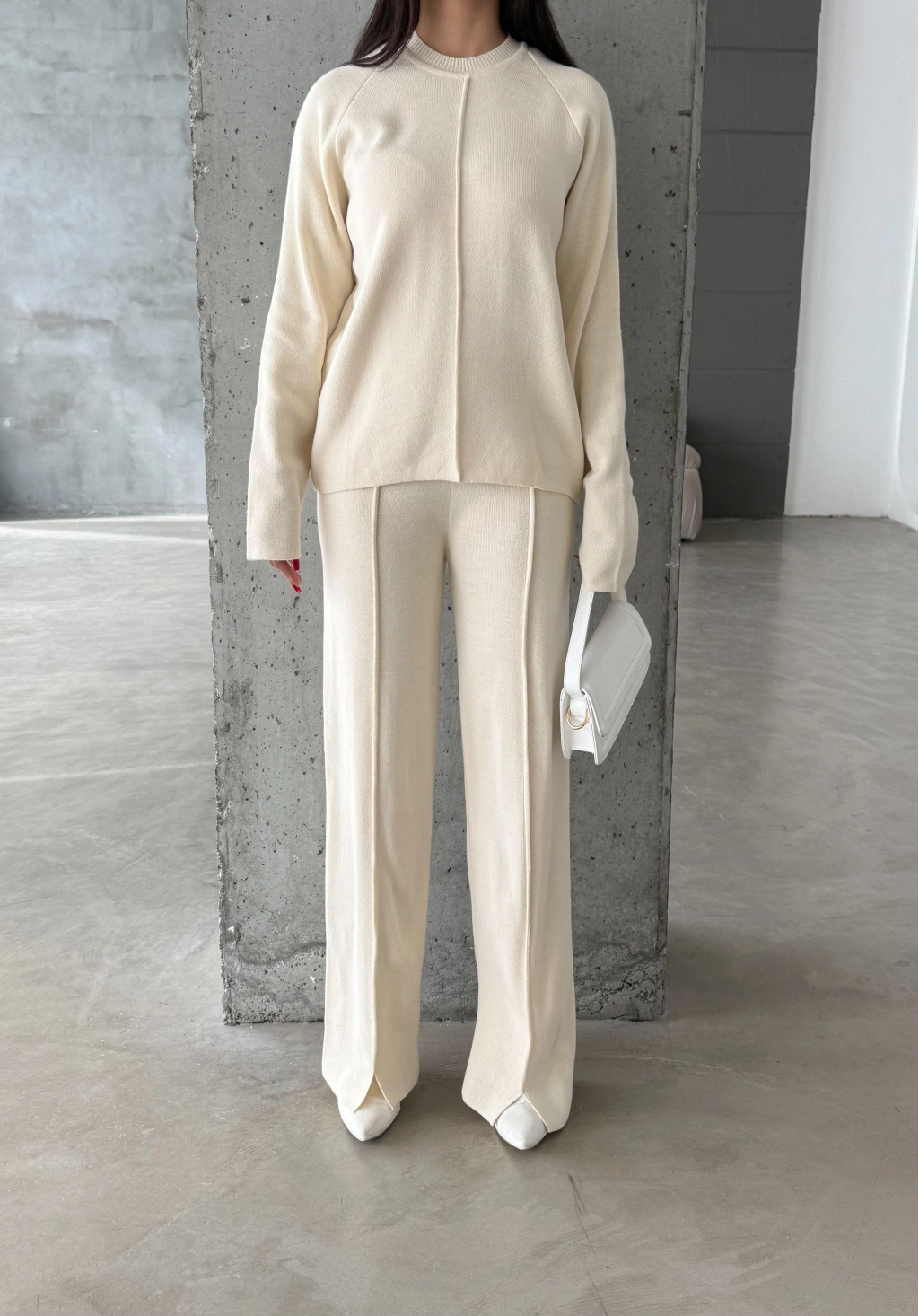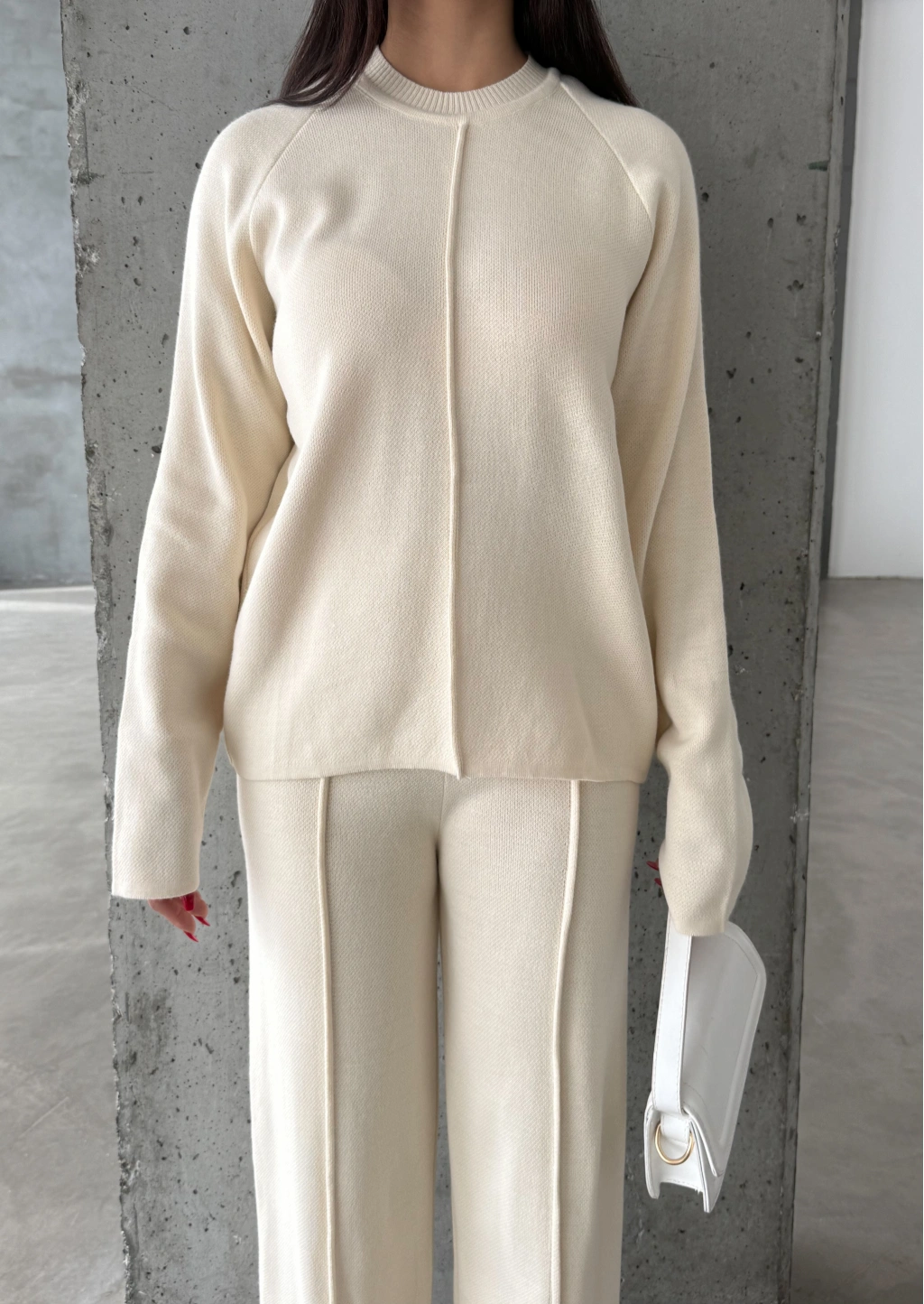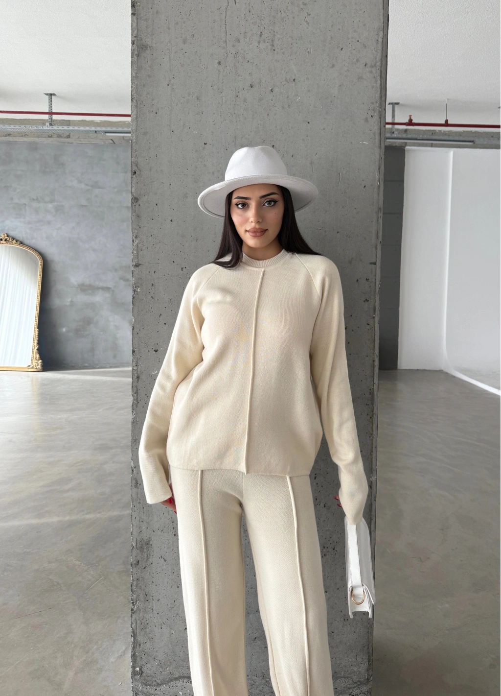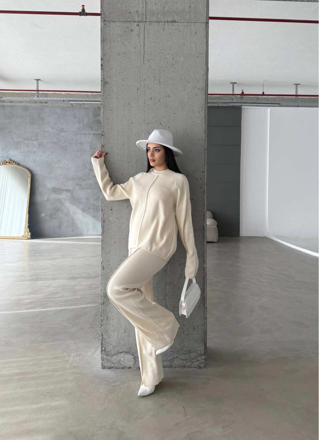 Pullaps Kot Garnili Pantolonlu Triko Takım Krem