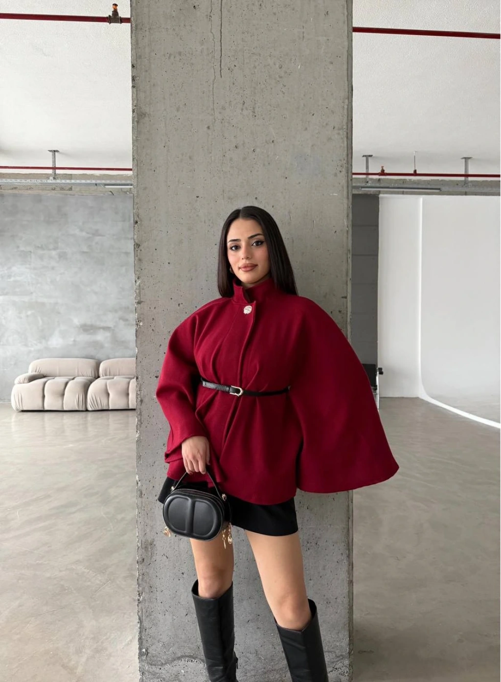 Soğuk kış günlerinde stilinizden ödün vermeden sıcak kalmanın en zarif yolu Kaşe Panço modellerinden geçiyor! Bu sezonun trend parçası olan Düğme Detaylı Kemerli Kaşe Panço, hem konforlu yapısı hem de dikkat çekici tasarımıyla gardırobunuzun yıldızı olmaya aday.