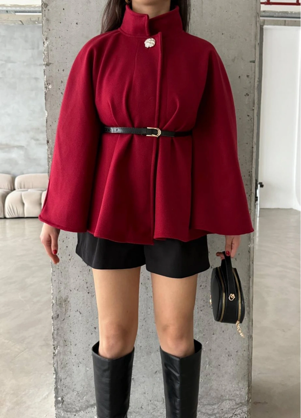 Kış Aylarının Vazgeçilmezi: Düğme Detaylı Kemerli Kaşe Panço