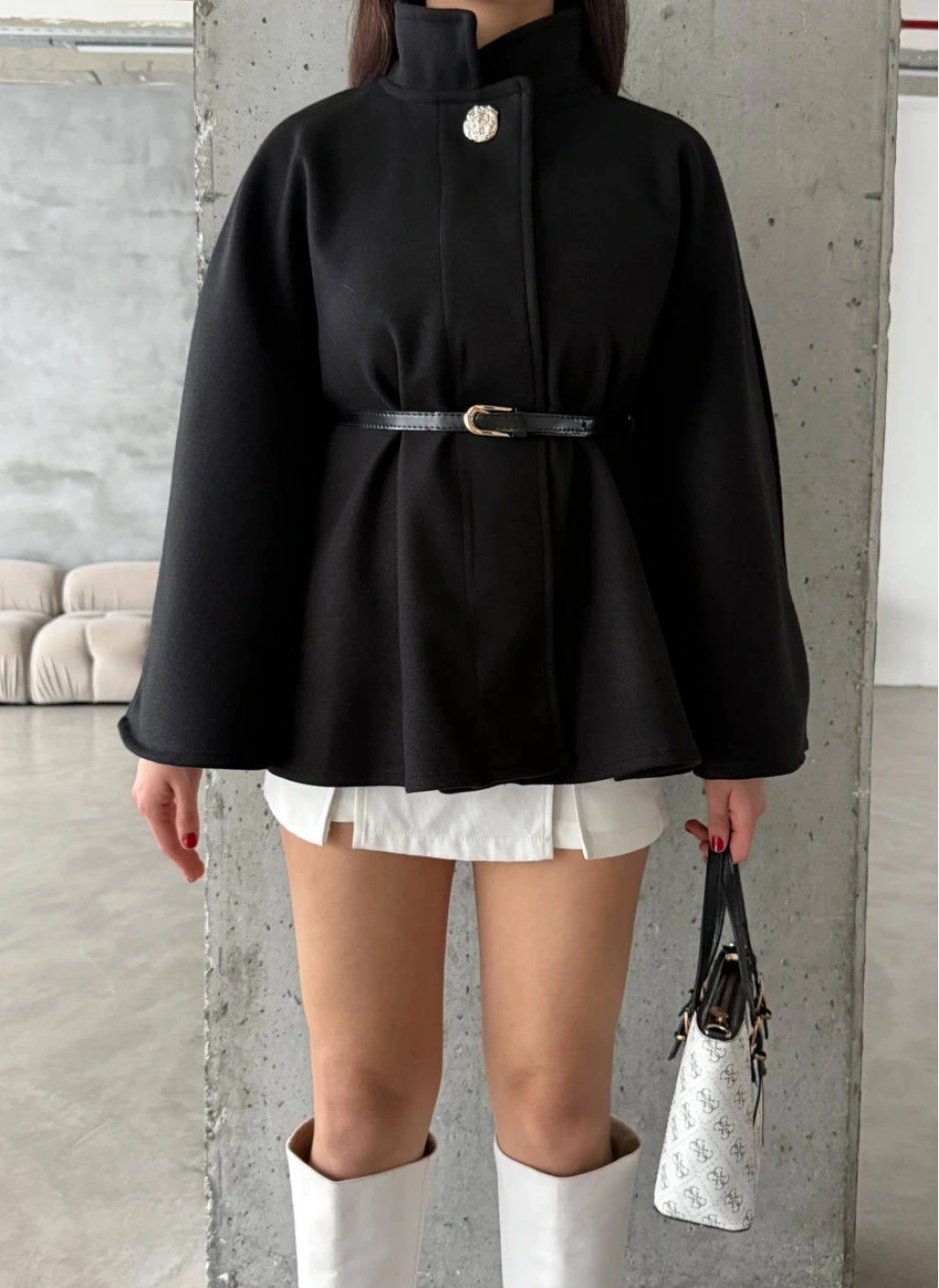 Soğuk kış günlerinde stilinizden ödün vermeden sıcak kalmanın en zarif yolu Kaşe Panço modellerinden geçiyor! Bu sezonun trend parçası olan Düğme Detaylı Kemerli Kaşe Panço, hem konforlu yapısı hem de dikkat çekici tasarımıyla gardırobunuzun yıldızı olmaya aday.