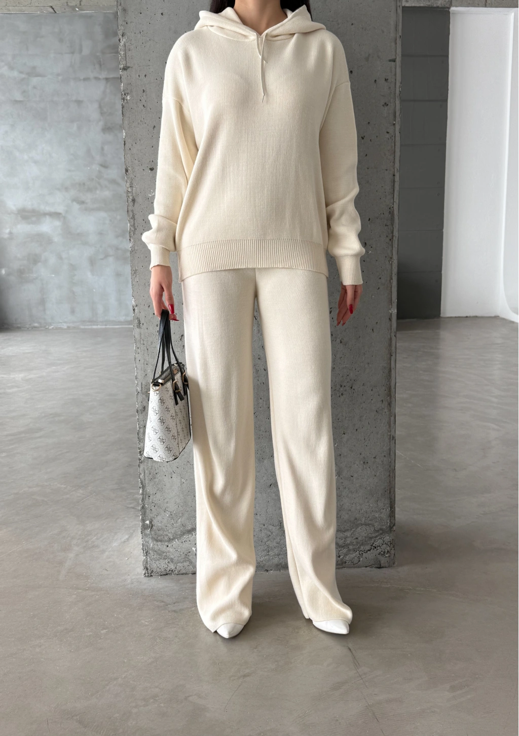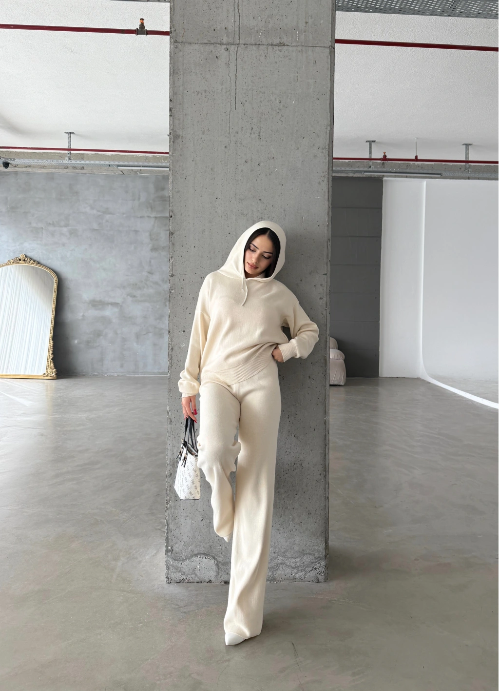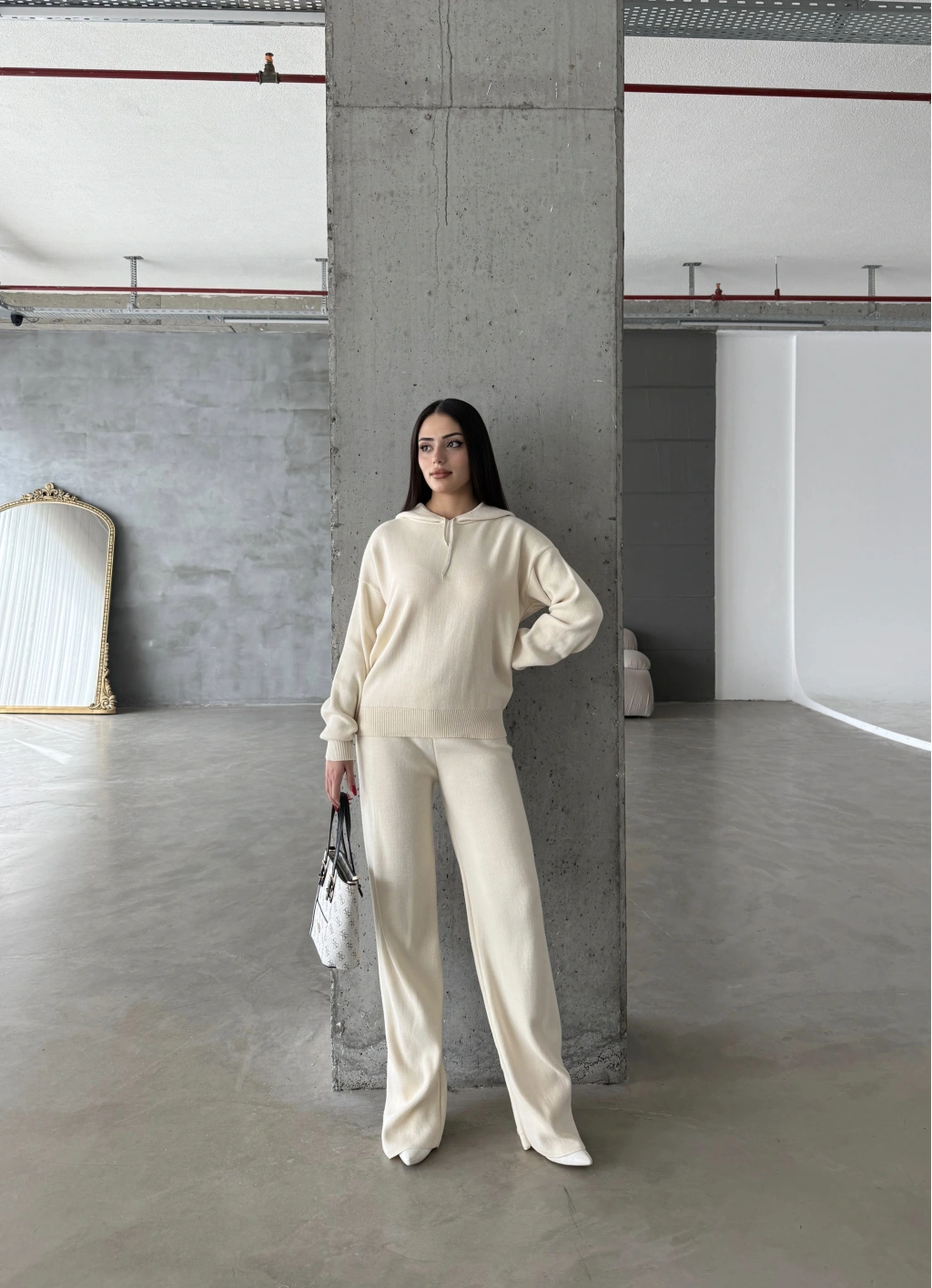 Pullaps Kot Garnili Pantolonlu Triko Takım Krem