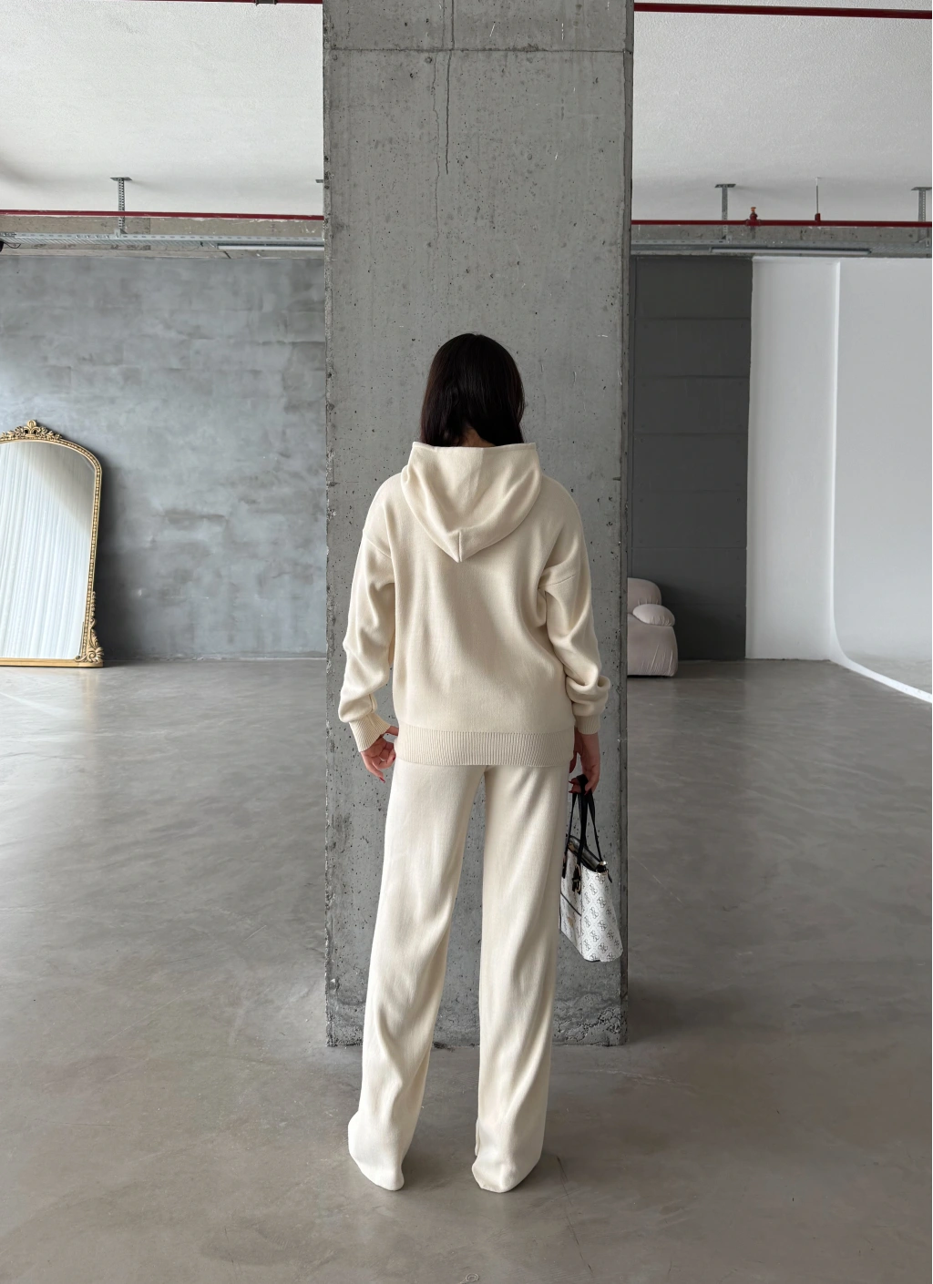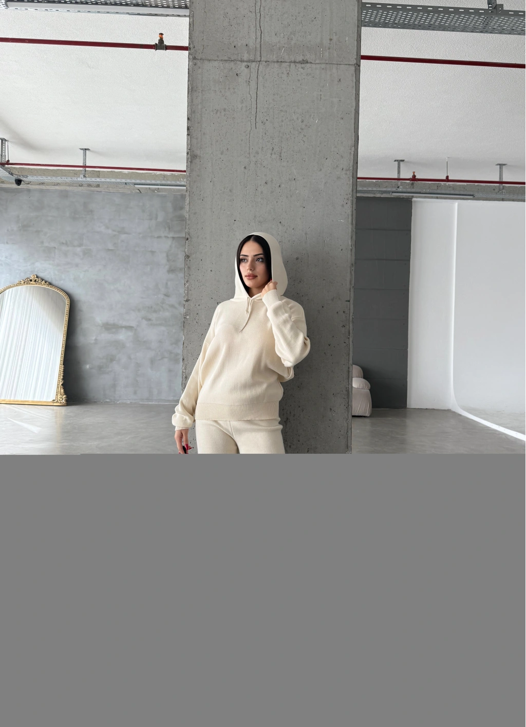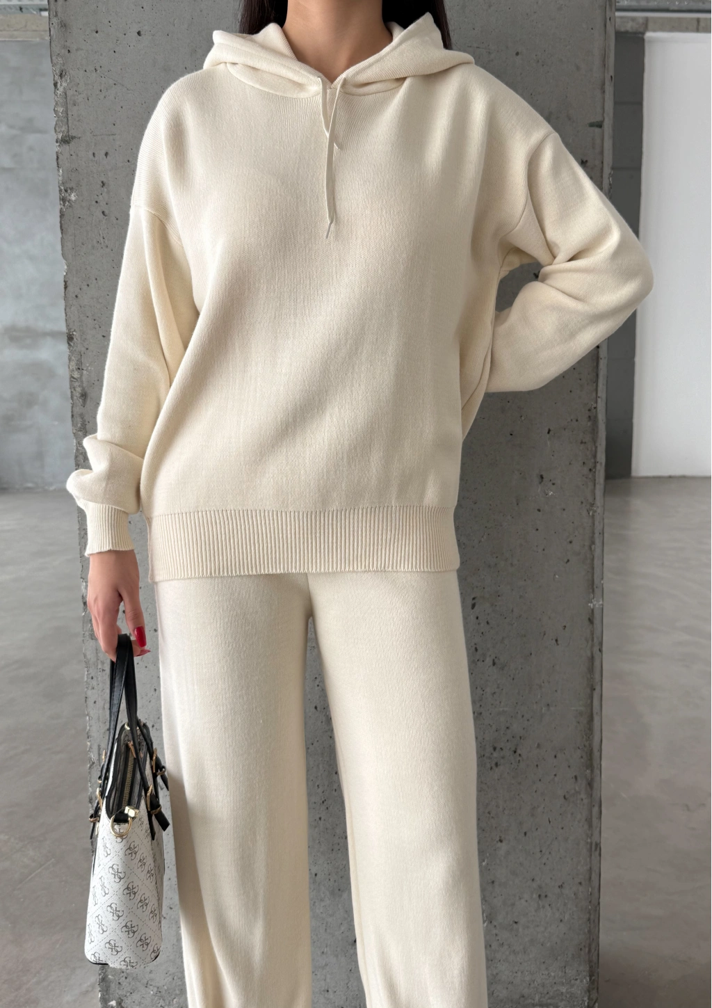 Pullaps Kot Garnili Pantolonlu Triko Takım Krem