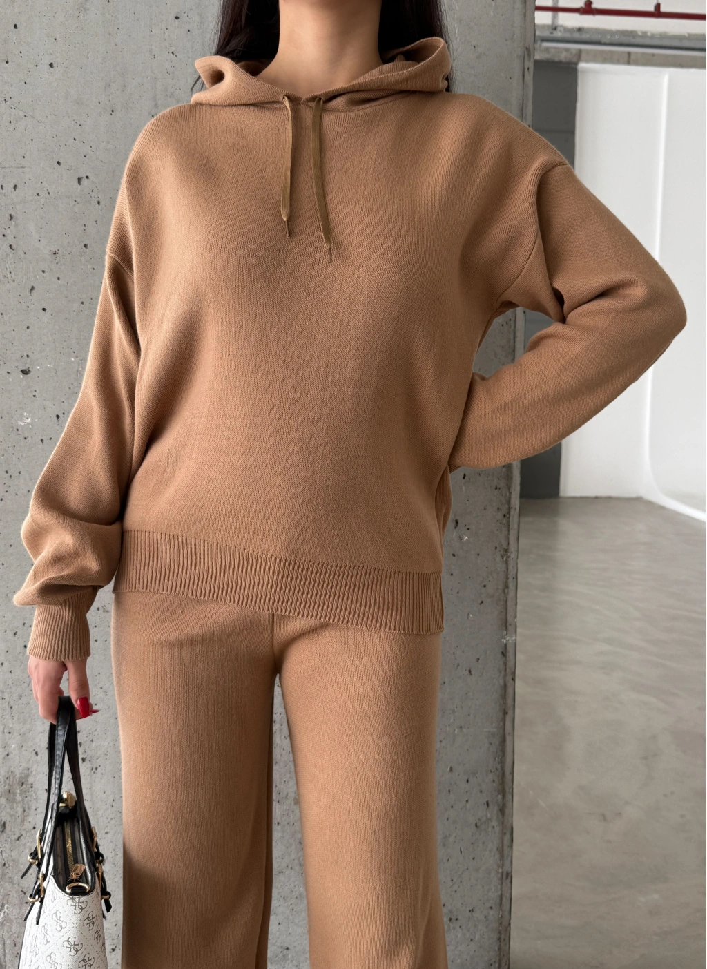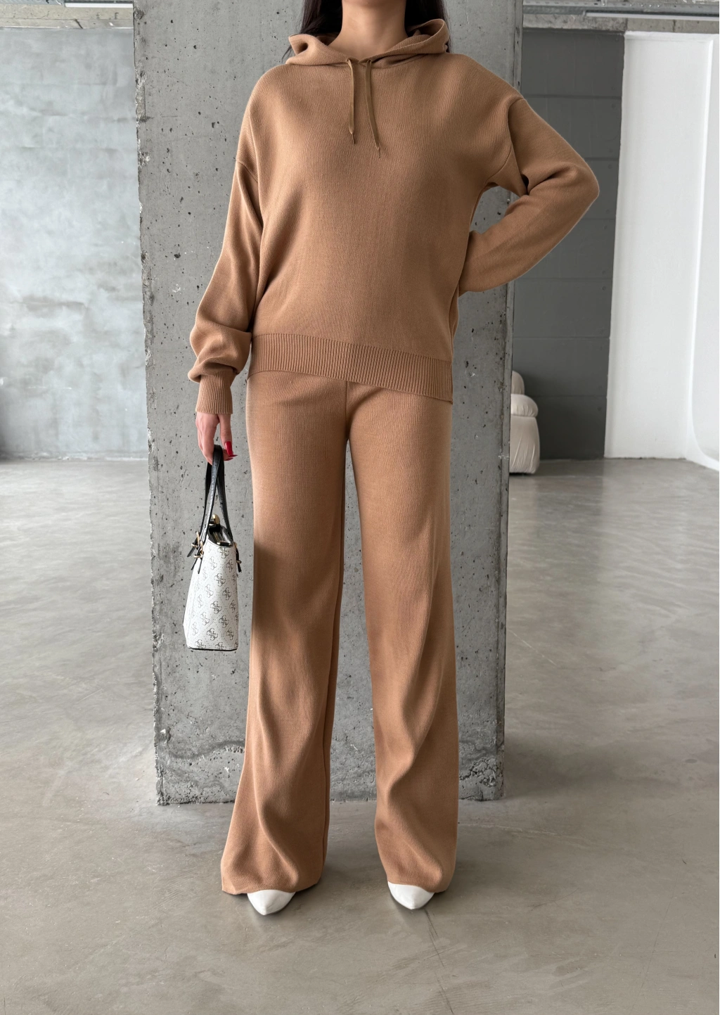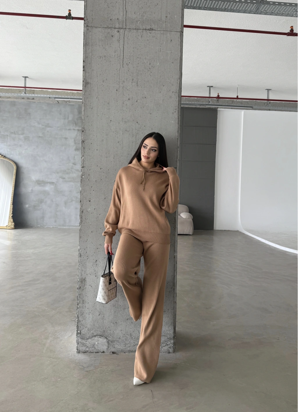 Pullaps Kot Garnili Pantolonlu Triko Takım Kahve