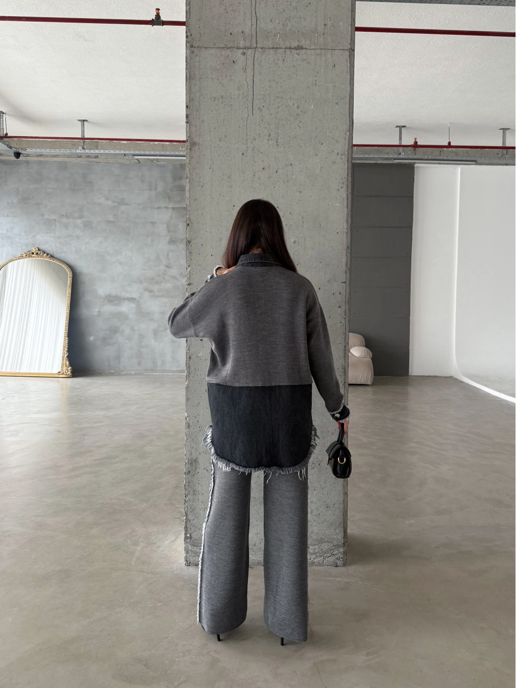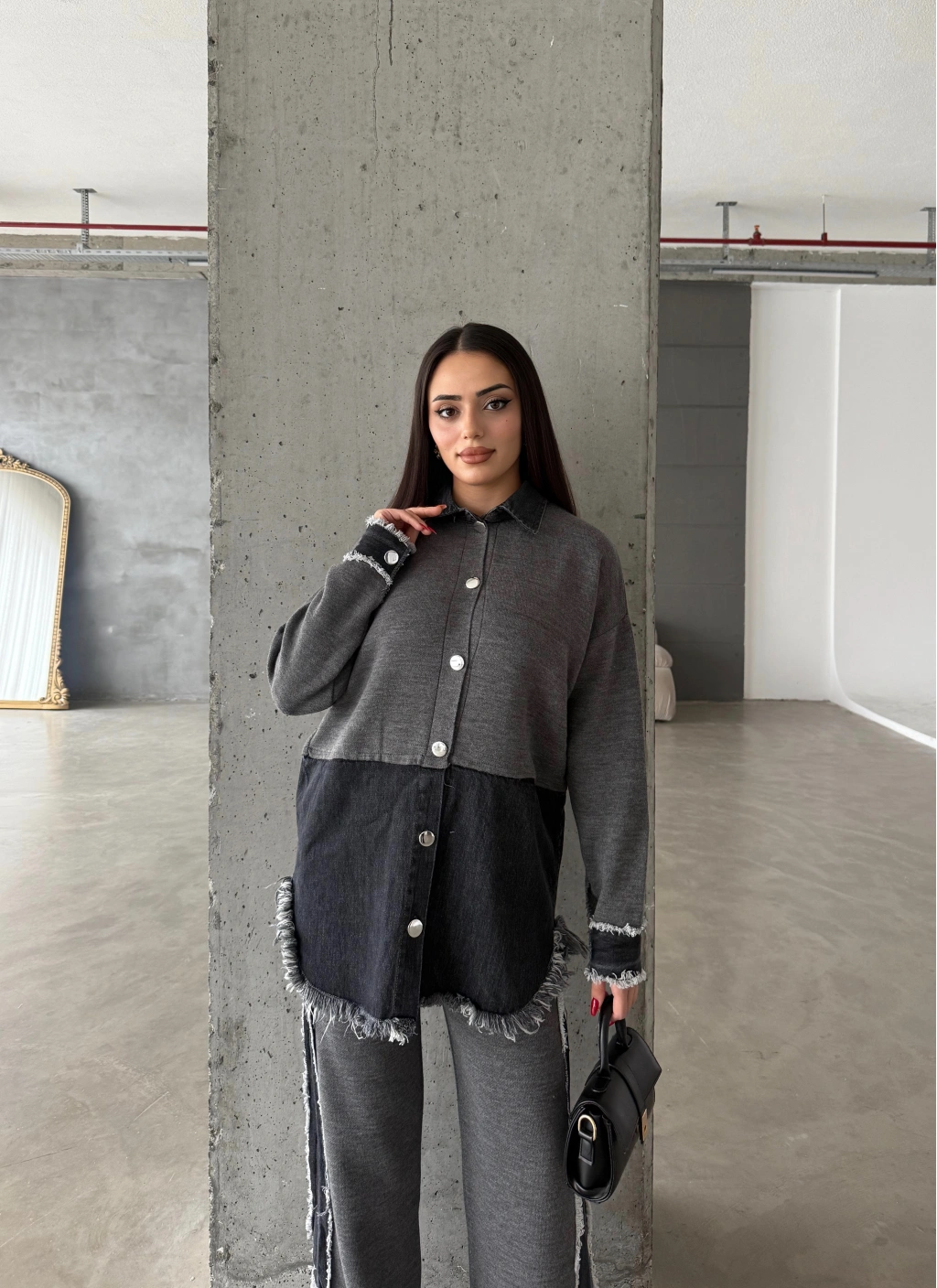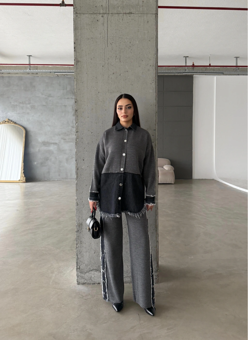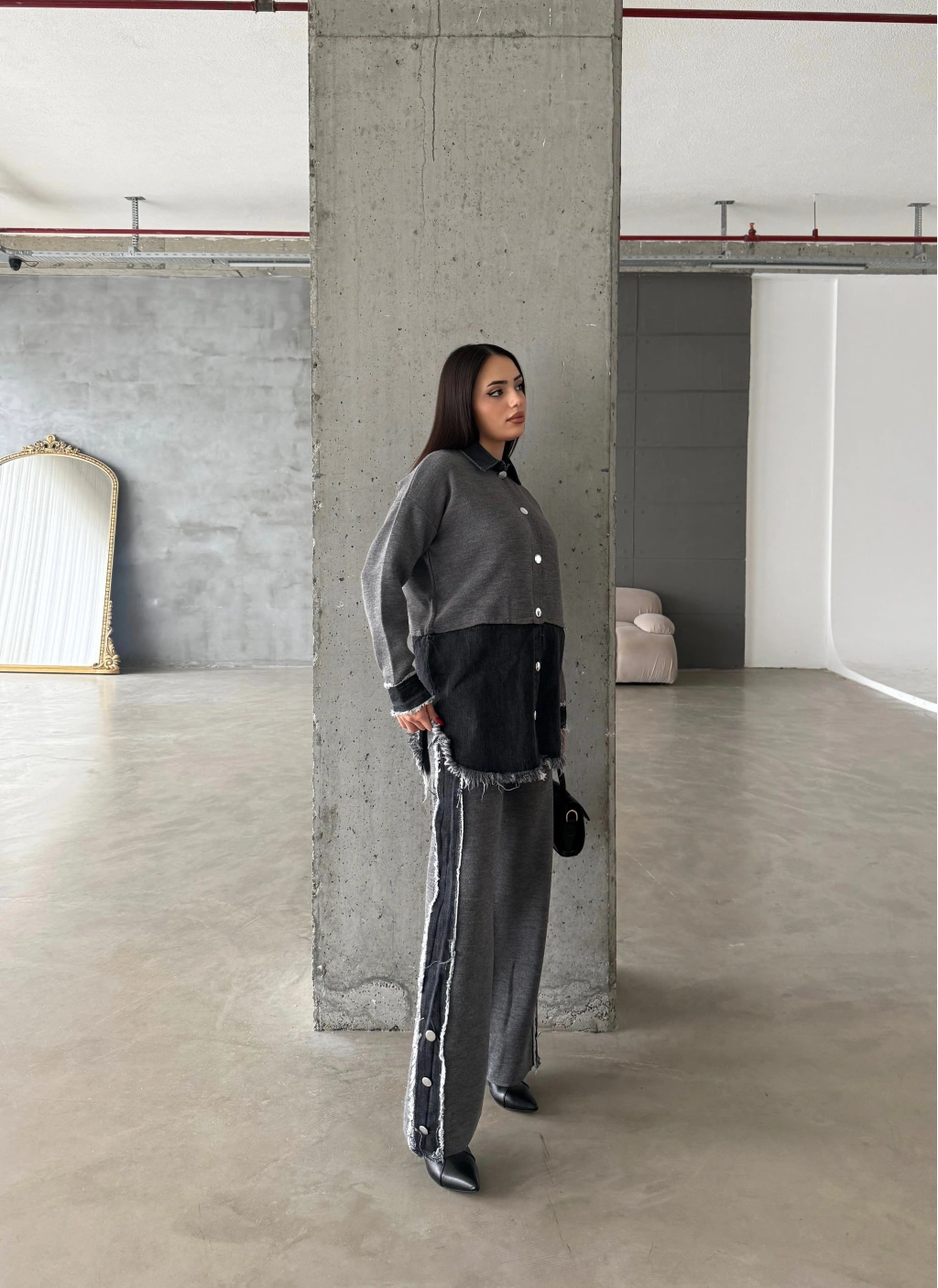 Pullaps Kot Garnili Pantolonlu Triko Takım Antrasit