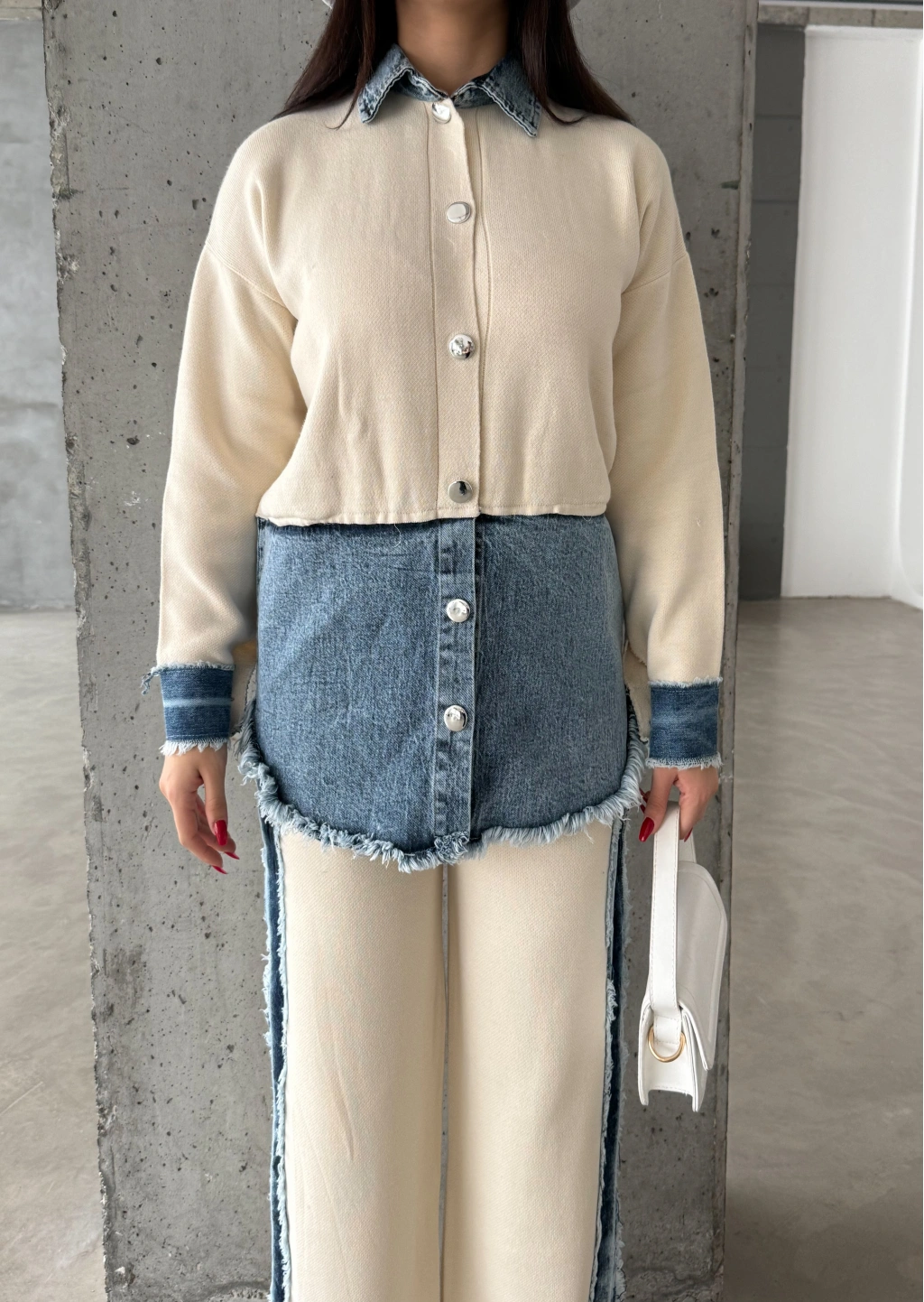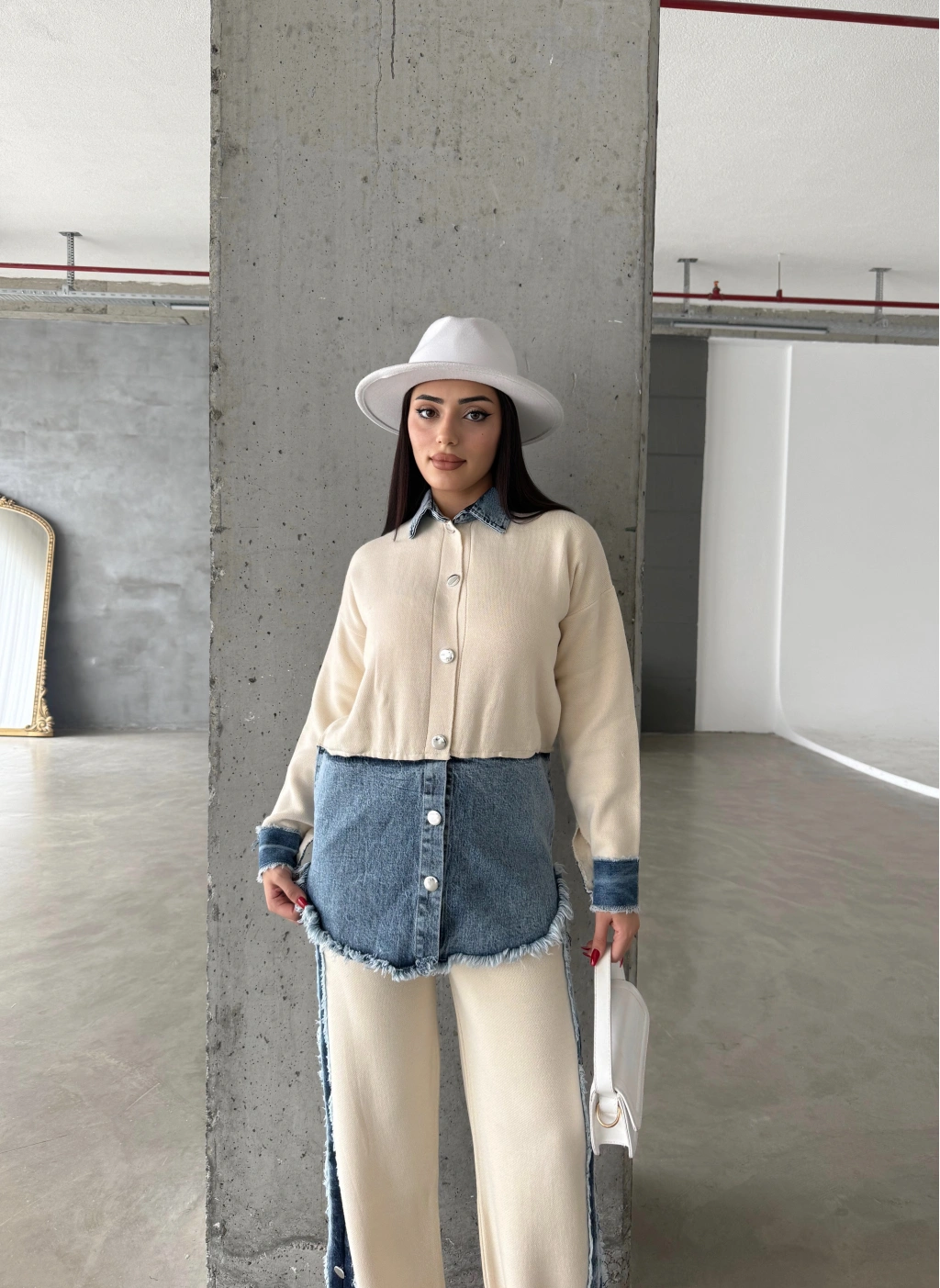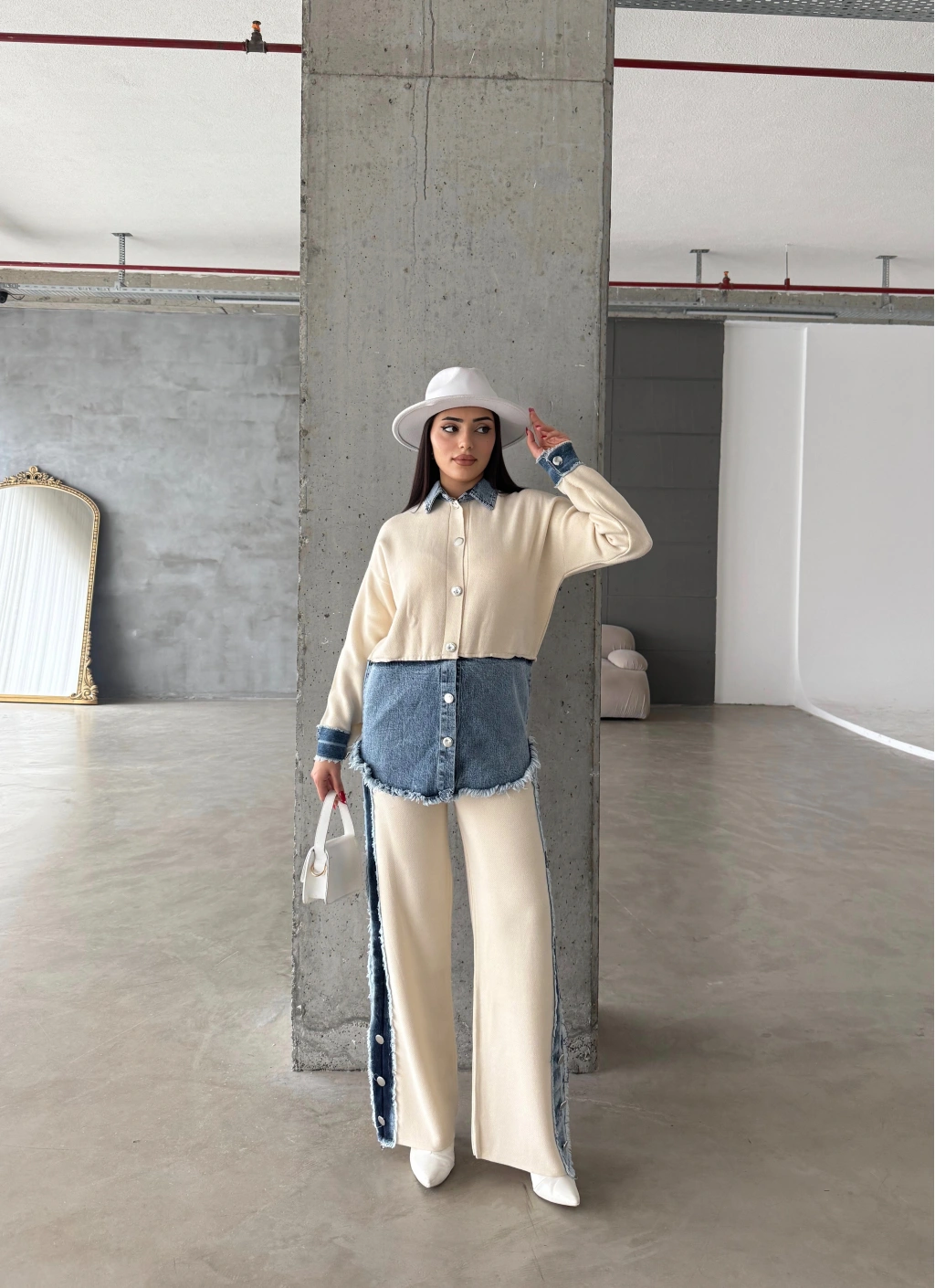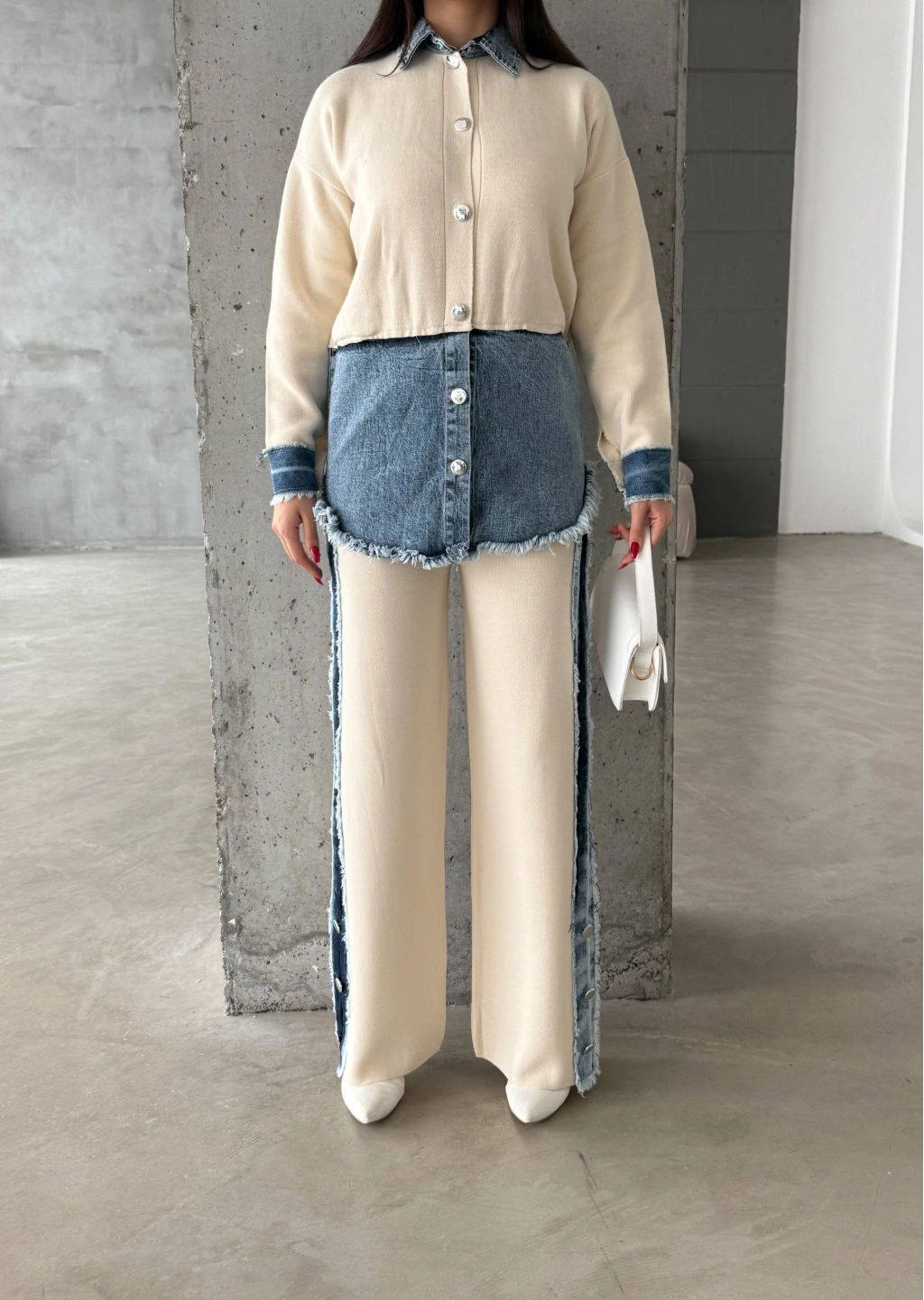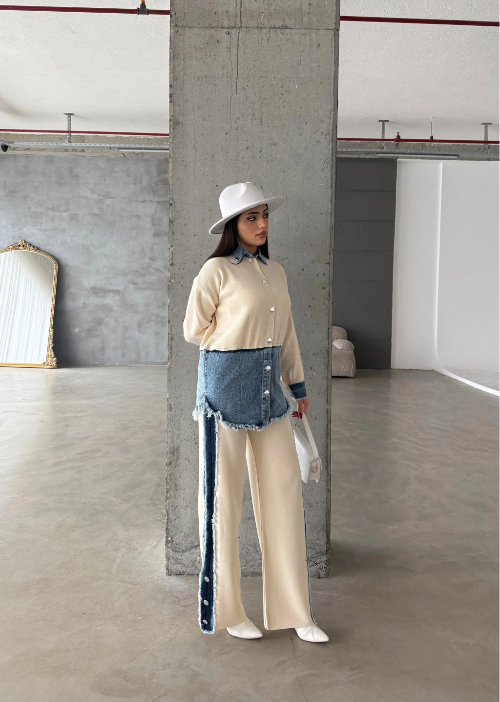 Pullaps Kot Garnili Pantolonlu Triko Takım Krem