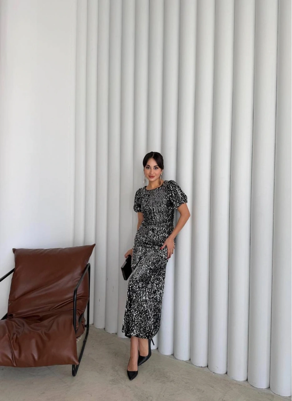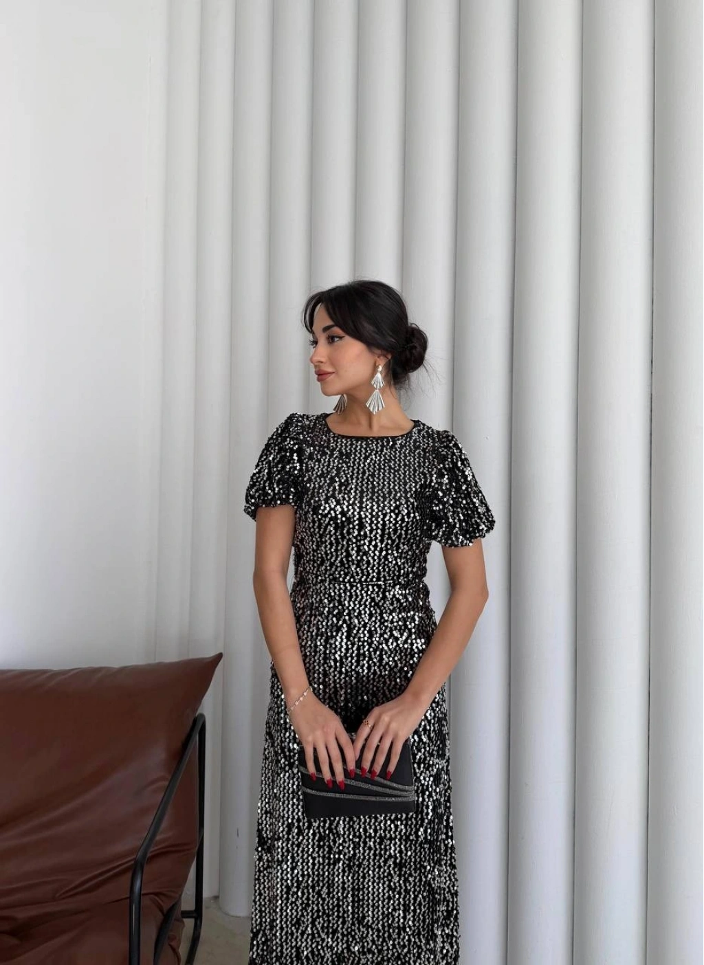 Göz Alıcı Parıltı: Baştan ayağa pul payetlerle işlenmiş kumaşı sayesinde girdiğiniz her ortamda ışıldamanızı sağlar.