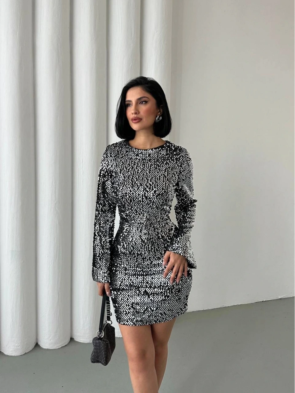 Göz Alıcı Parıltı: Baştan ayağa pul payetlerle işlenmiş kumaşı sayesinde girdiğiniz her ortamda ışıldamanızı sağlar.