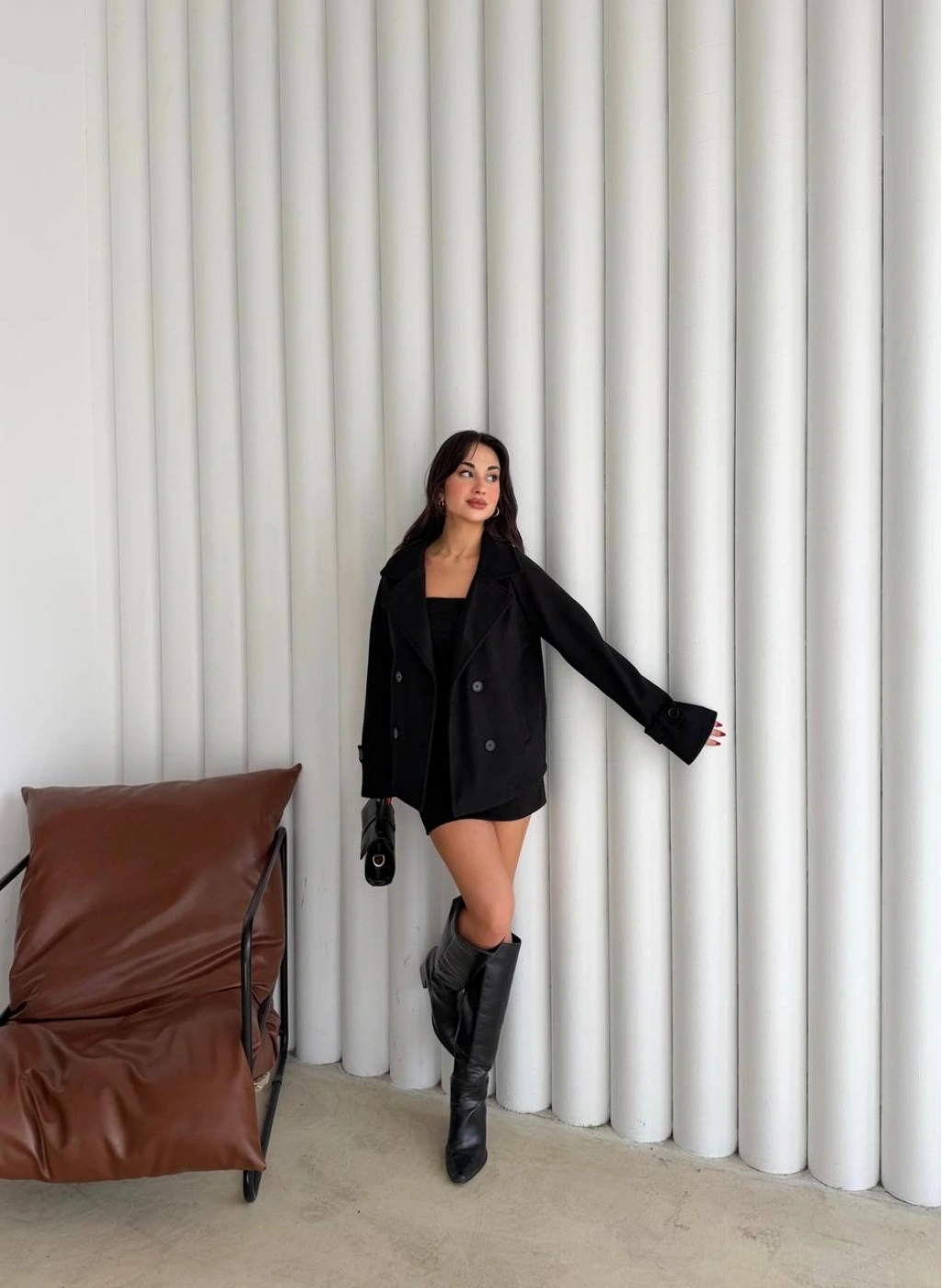 Pullaps Premium Seri Lüx Kaşe Trençkot Siyah