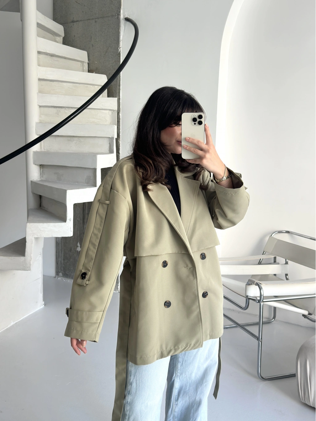 Pullaps Premium Seri Lüx Poliviskon Oversize Trençkot Haki