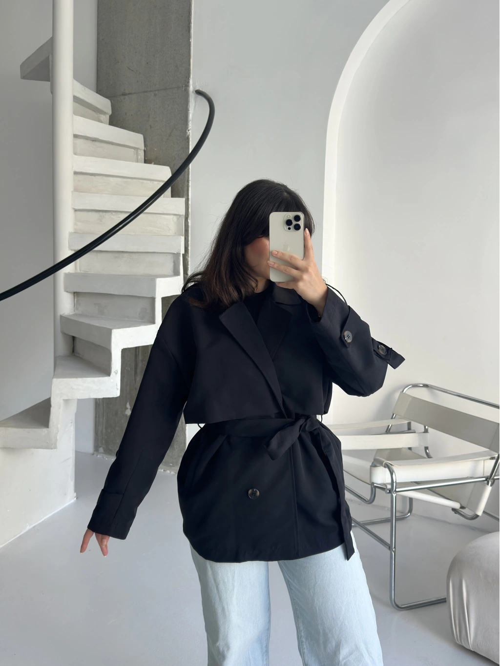 Pullaps Premium Seri Lüx Poliviskon Oversize Trençkot Siyah