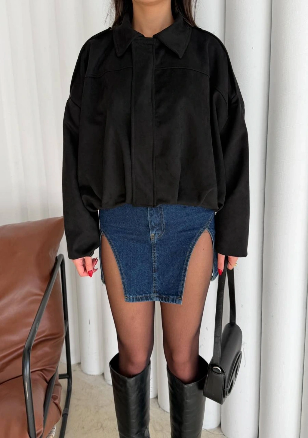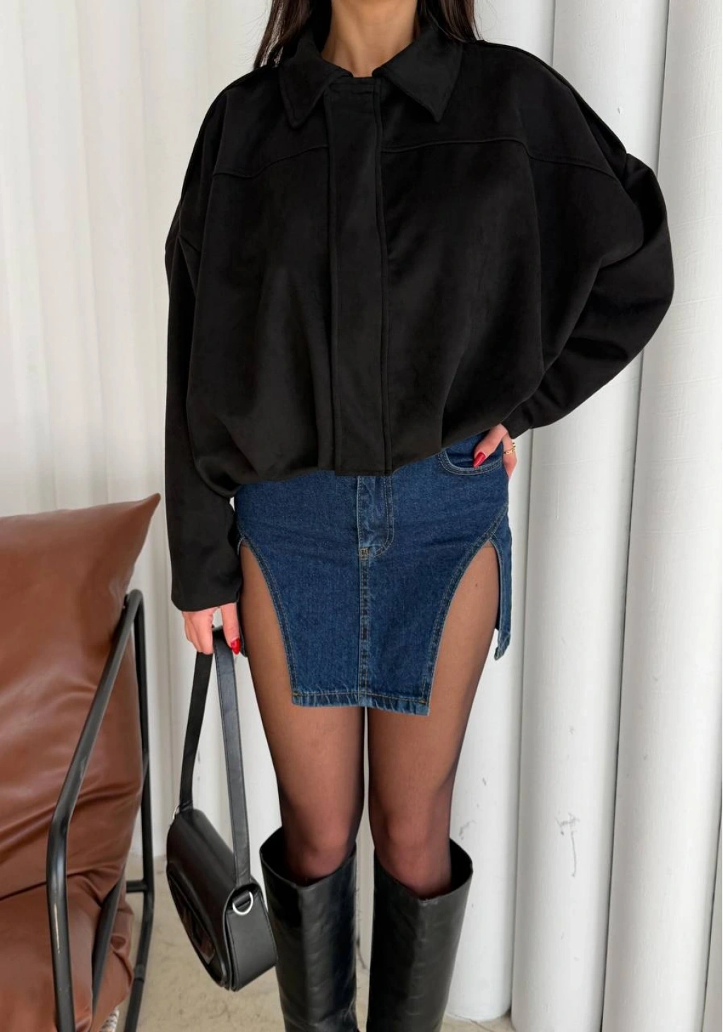 • Süet Bomber Ceket, gardırobunuzun en şık ve çok yönlü parçası olmaya aday. Klasik bomber kalıbının lüks süet dokusuyla buluşması, sıradan görünümünüzü anında bir üst seviyeye taşır. İster hafta sonu casual kombinlerinizde, ister akıllı-spor (smart-casual) görünümlerinizde tercih edin, bu ceket her zaman doğru seçimdir.