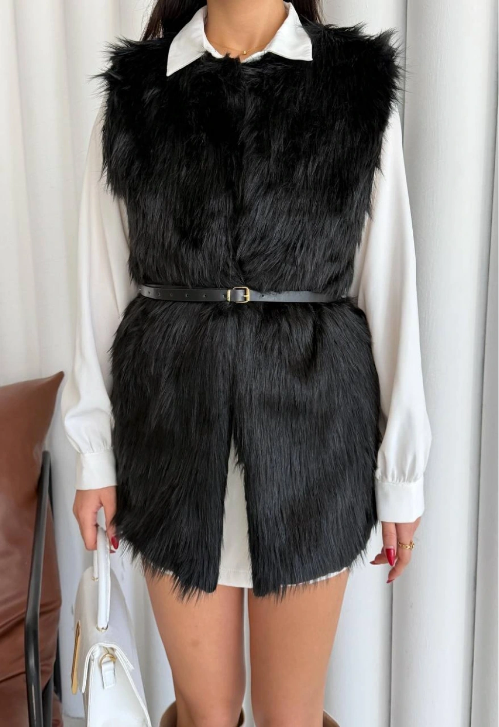 Pullaps Suni Kürk Yelek Siyah
