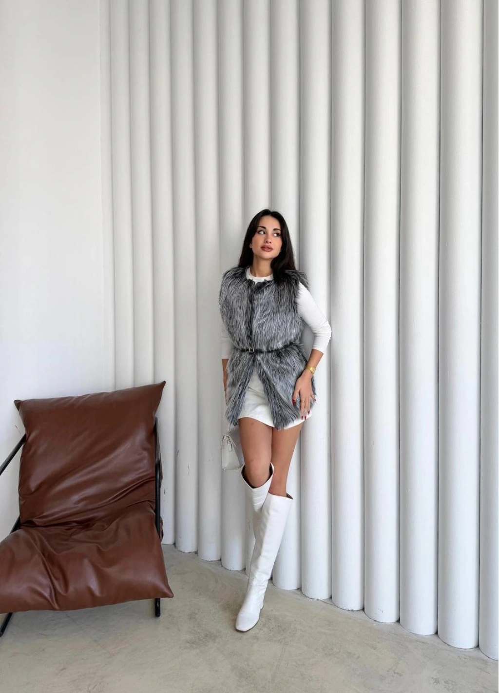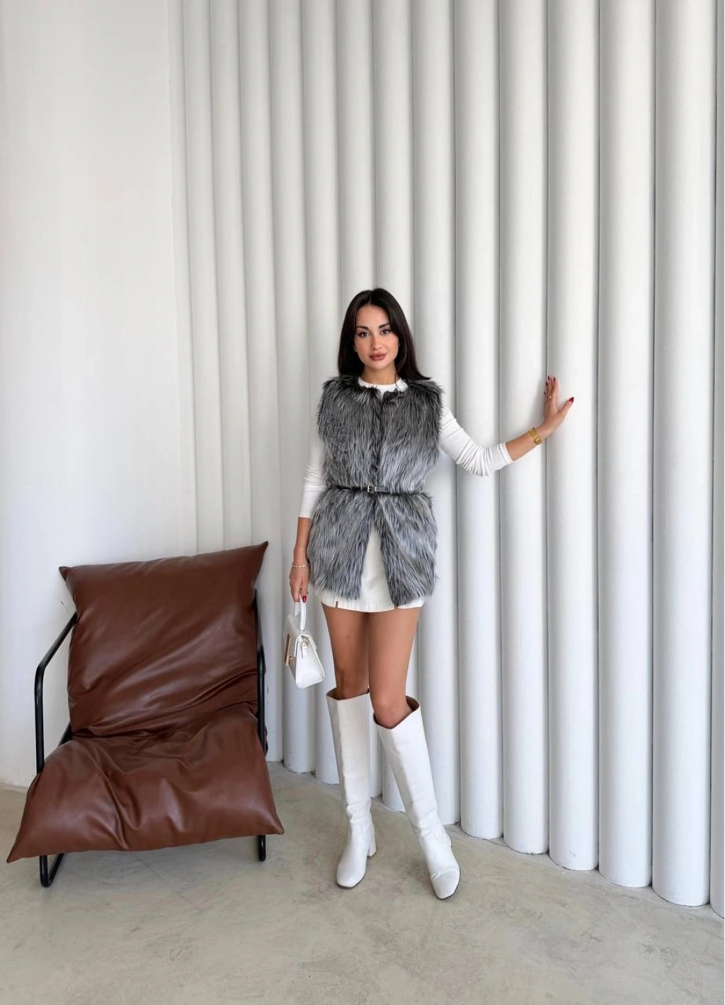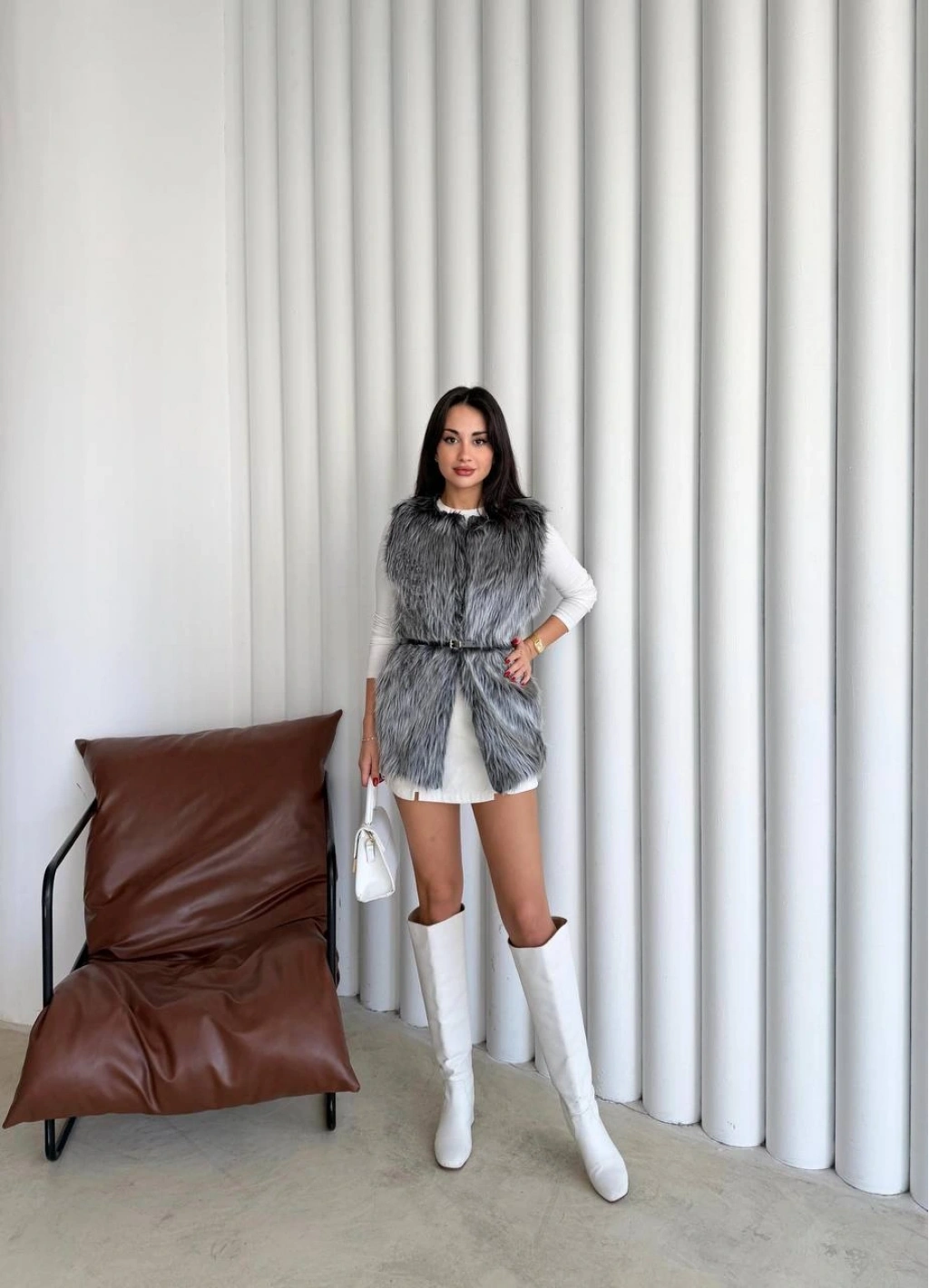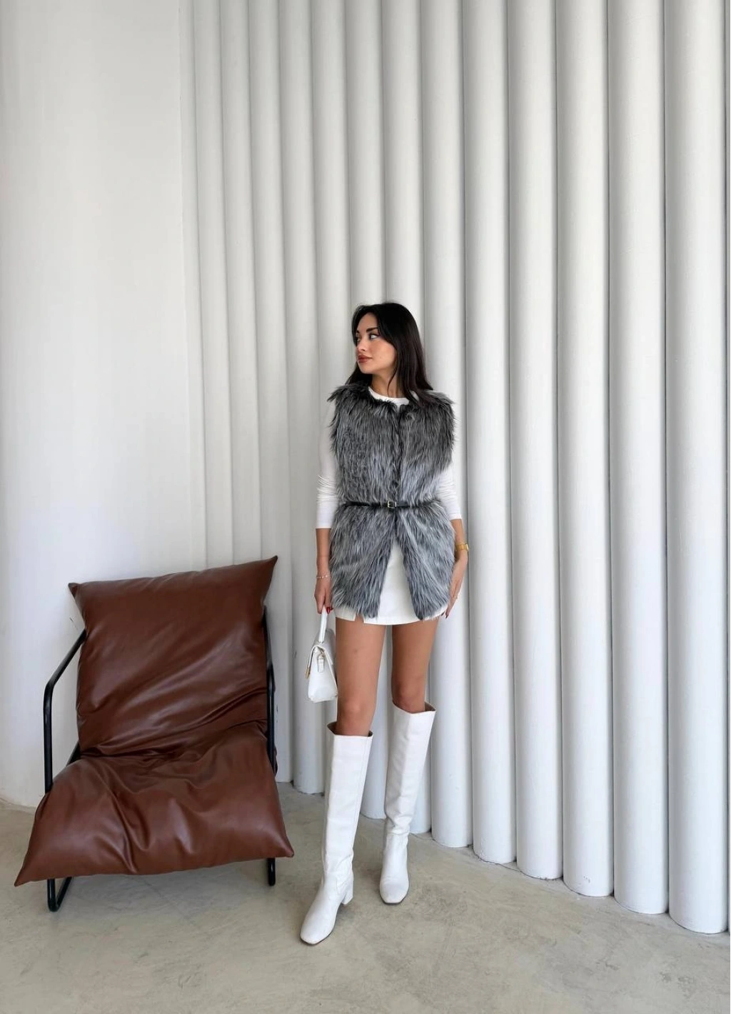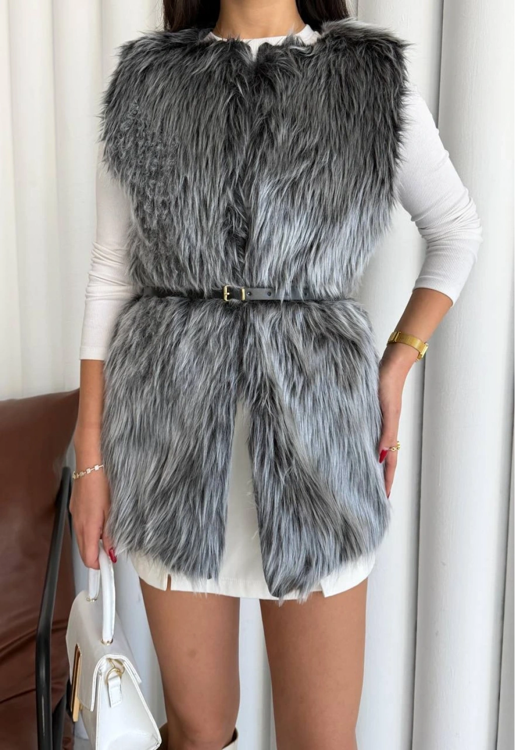 Pullaps Suni Kürk Yelek Gri