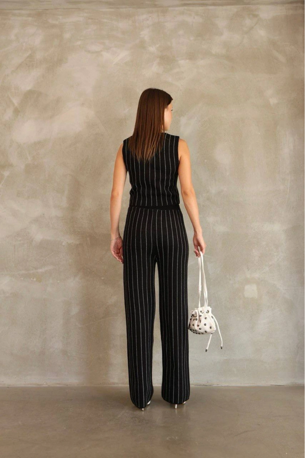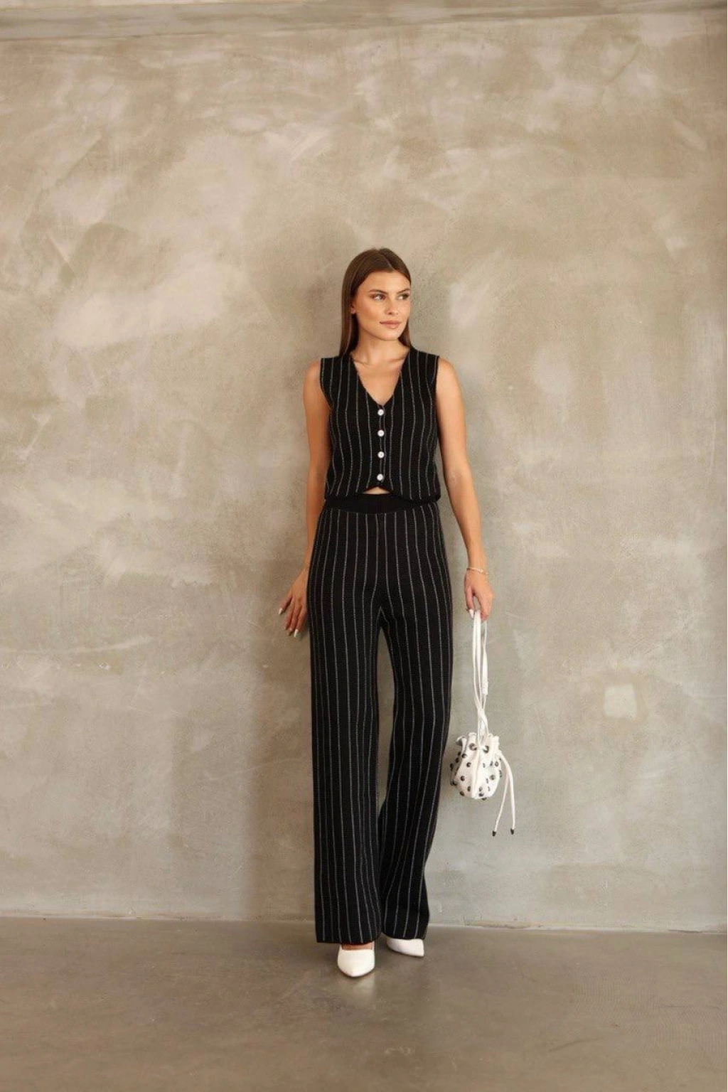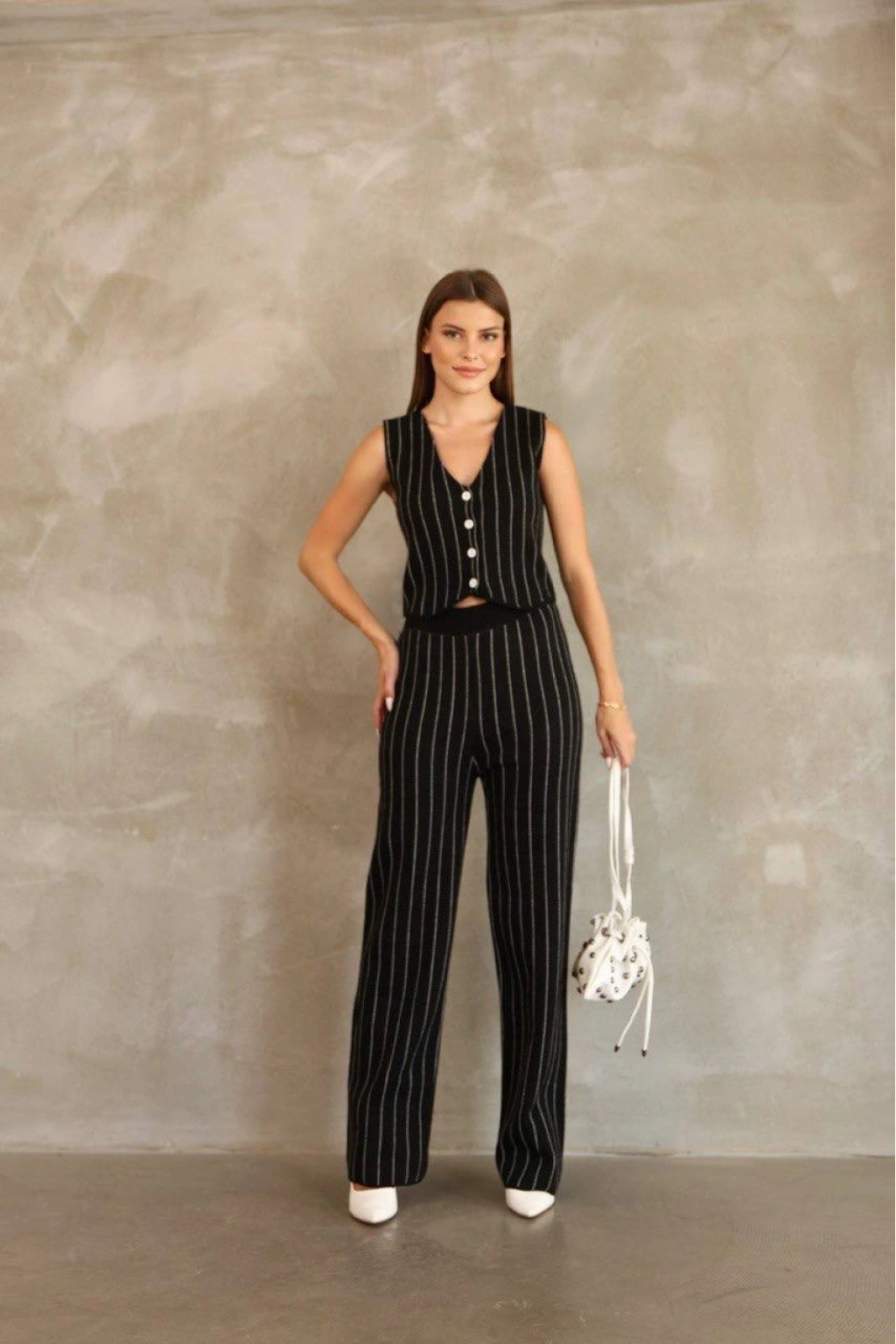 Pullaps Yelekli Çizgili Triko Takım Siyah