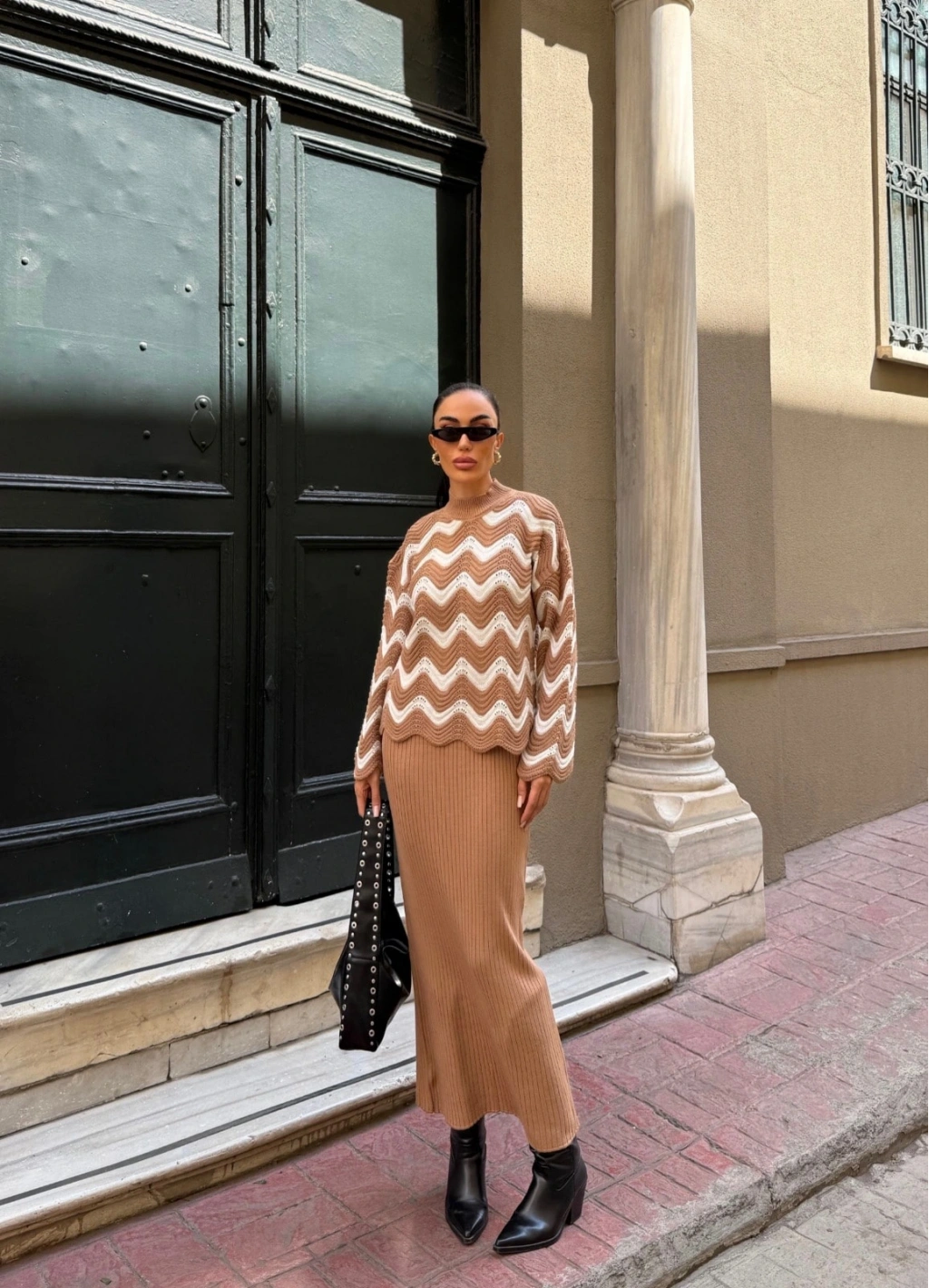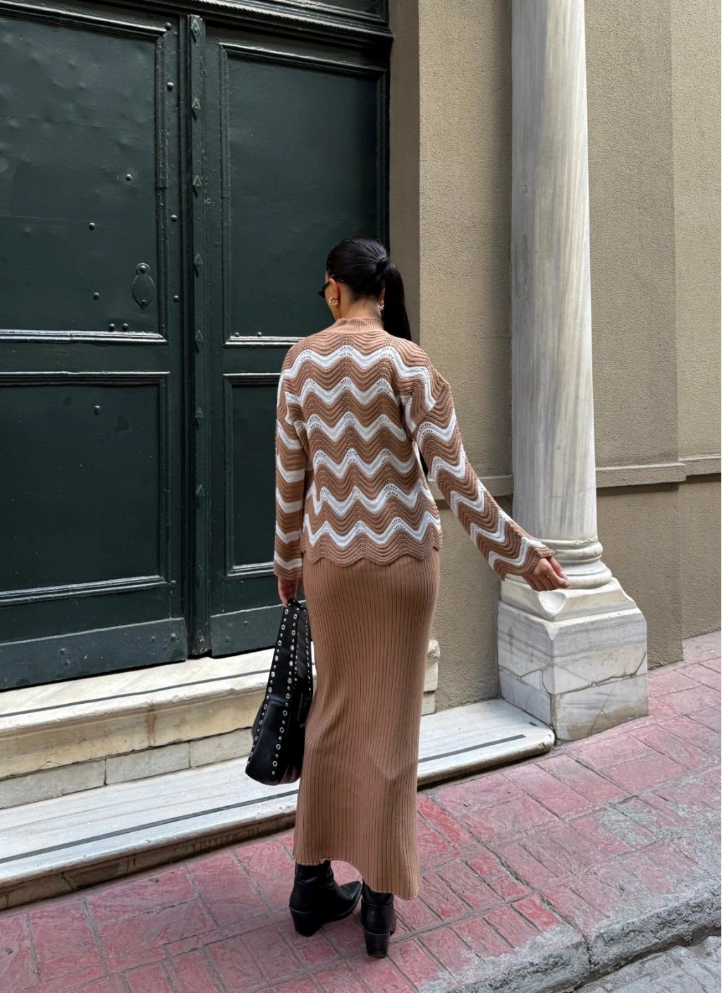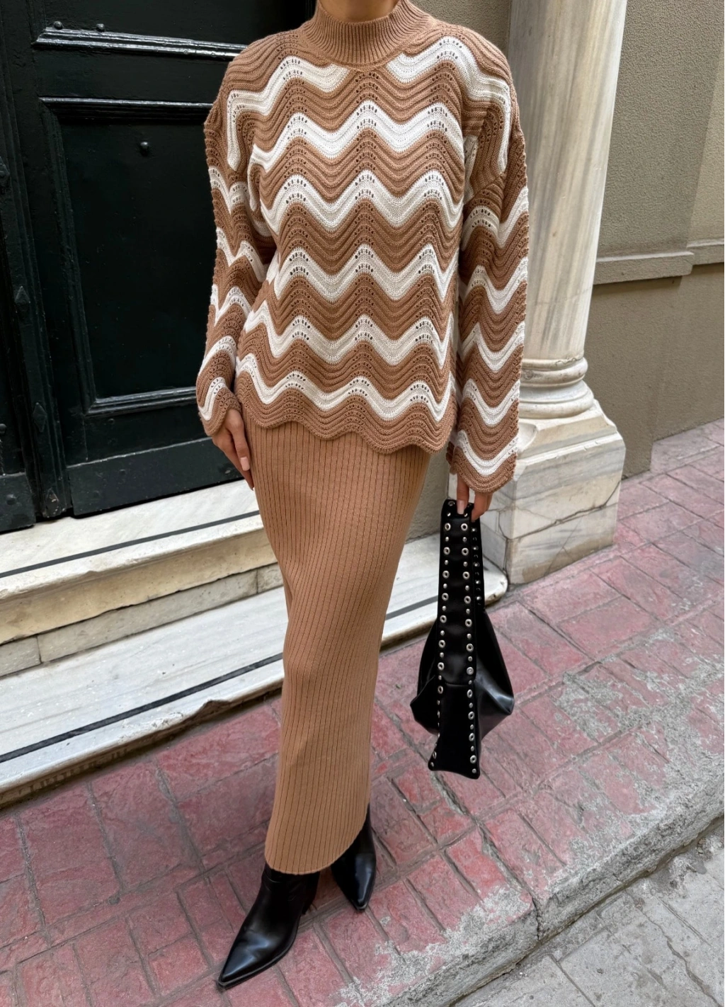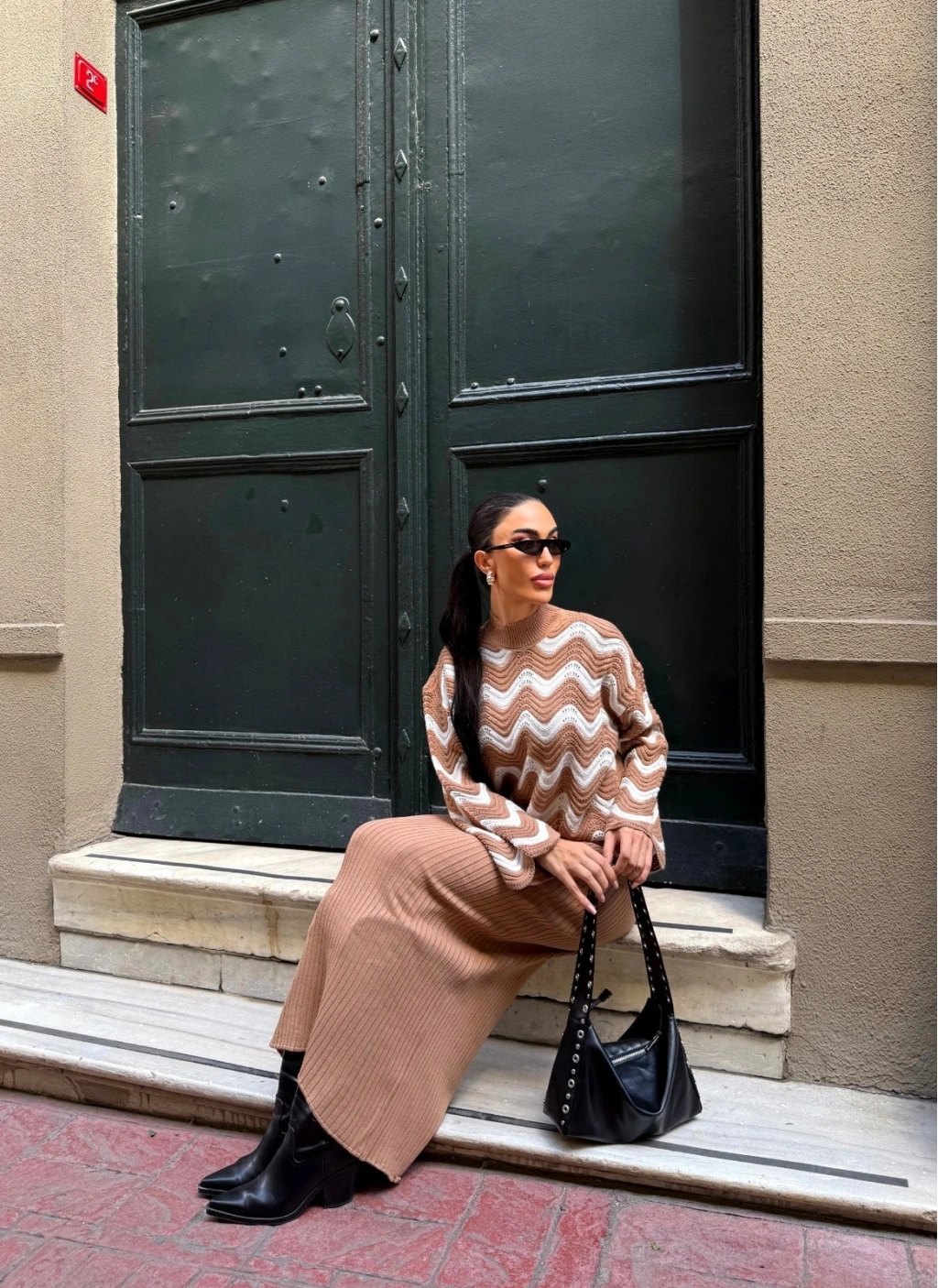 Zigzag Desenli Kazak Ve Elbise Triko Takım