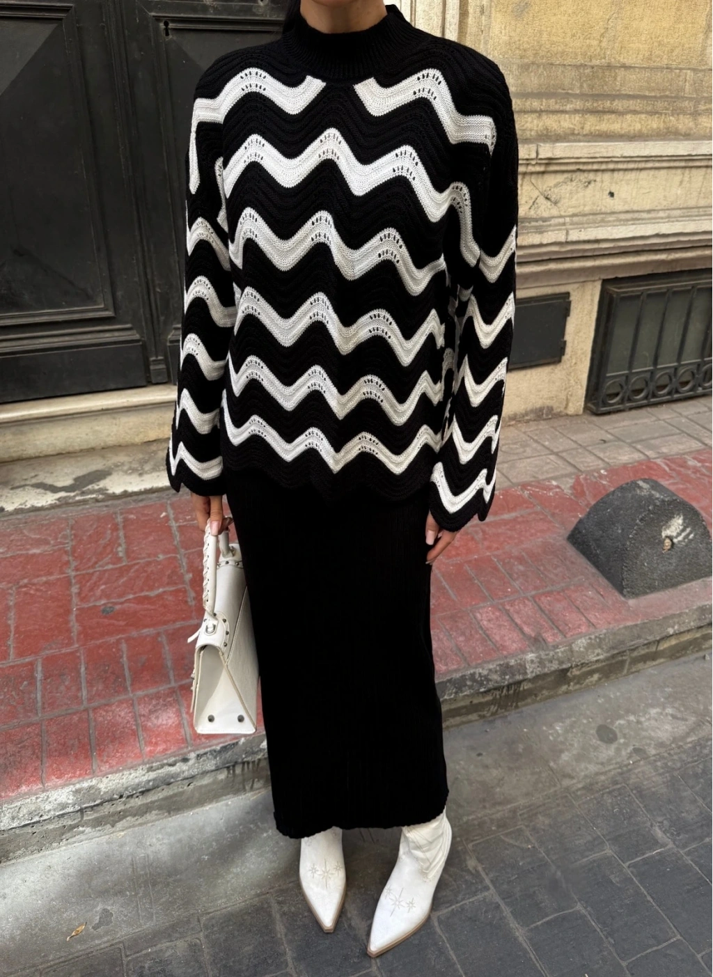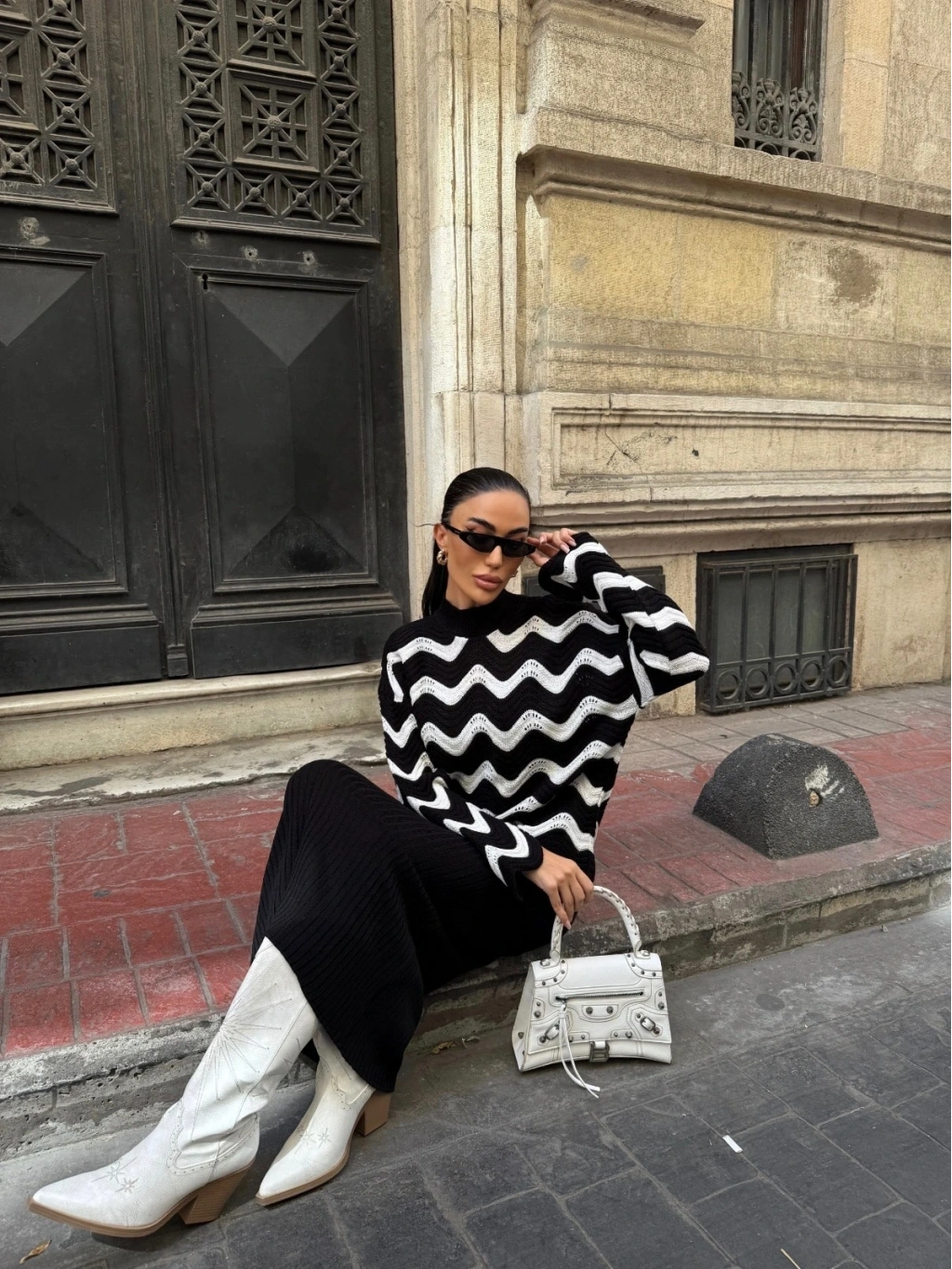 Konfor ve şıklığı bir araya getiren Zigzak Desenli Kazak ve Elbise Triko Takım ile tanışın. Gardırobunuzun en kullanışlı parçası olmaya aday bu ikili triko set, hem takım olarak hem de ayrı ayrı kombinlenebilir yapısıyla stilinize dinamizm katacak. Soğuk ve serin mevsimlerin en trend ve rahat seçeneği!