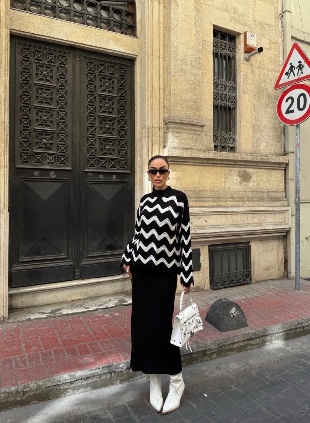 Zigzag Desenli Kazak Ve Elbise Triko Takım
