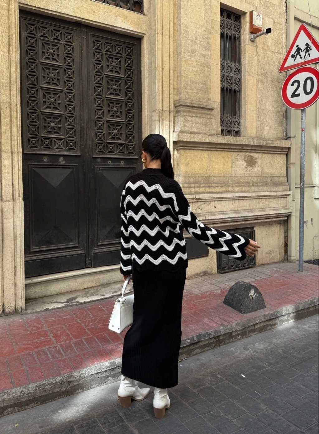 Göz Alıcı Zigzak Desen: Canlı ve modern zigzak desen (ya da ekose desen) ile sade triko takımların önüne geçin. Bu desen, stilinize anında enerjik bir dokunuş katar.